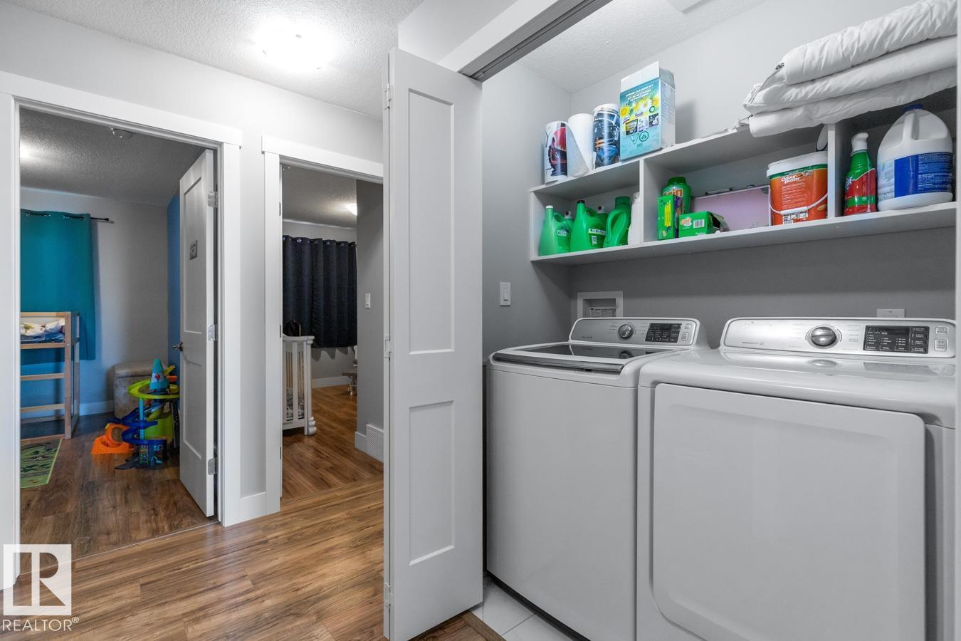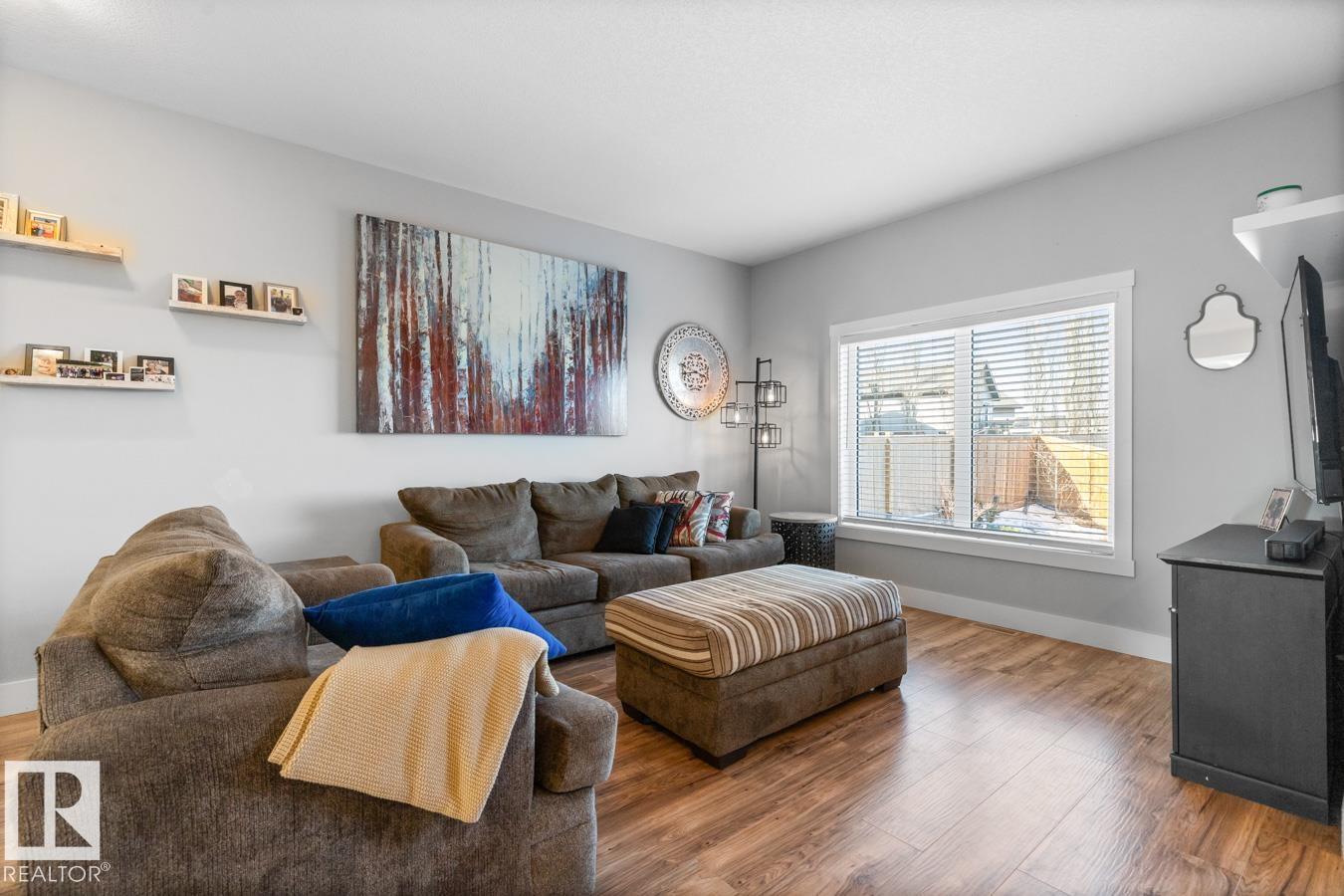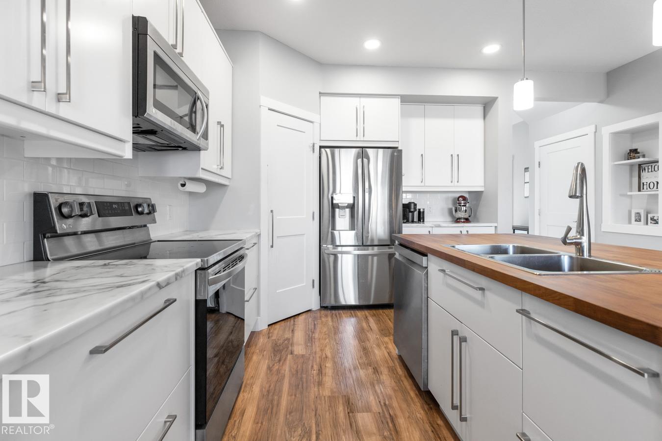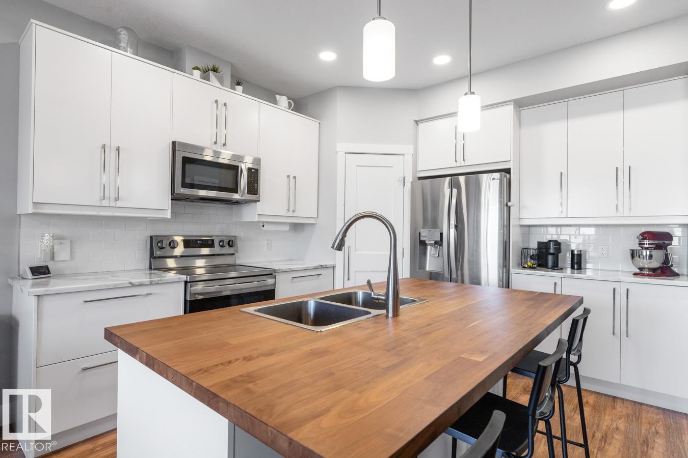 Welcome to this beautifully designed end-unit townhouse, built in 2019 & offering modern comfort across 2 spacious storeys. This home features 3 bedrooms and 3 bathrooms, including a bright primary suite w/3 feature windows, a generous walk-in closet & a 5-pce ensuite w/ dual sinks and not forgetting the convenience of an upper flr. laundry closet! Main flr. boasts a large contemporary kitchen with a stunning island featuring a butcher's block countertop and complete w/ stainless steel appliances, flowing seamlessly into the living space. Ceramic tile accents the entry hall and bathrooms, while the main & upper flr. laid w/ laminate & plush carpet on stairs. Upstairs, enjoy the convenience of a laundry closet w/ washer & dryer. The partly finished basement includes completed walls & ceilings, ready for your finishing touches. Step outside to a private deck w/privacy screen, fully enclosed by a 6-ft wooden fence. Complete with a single attached garage, this home blends style, function, and privacy.