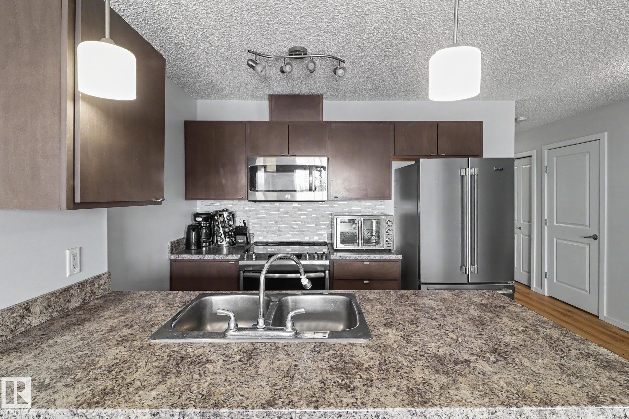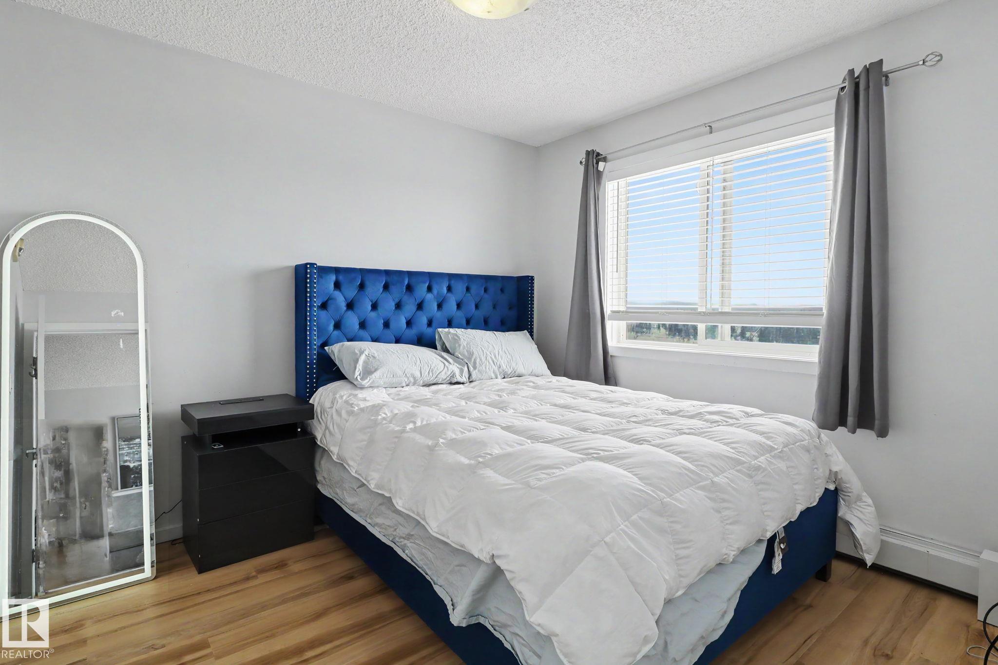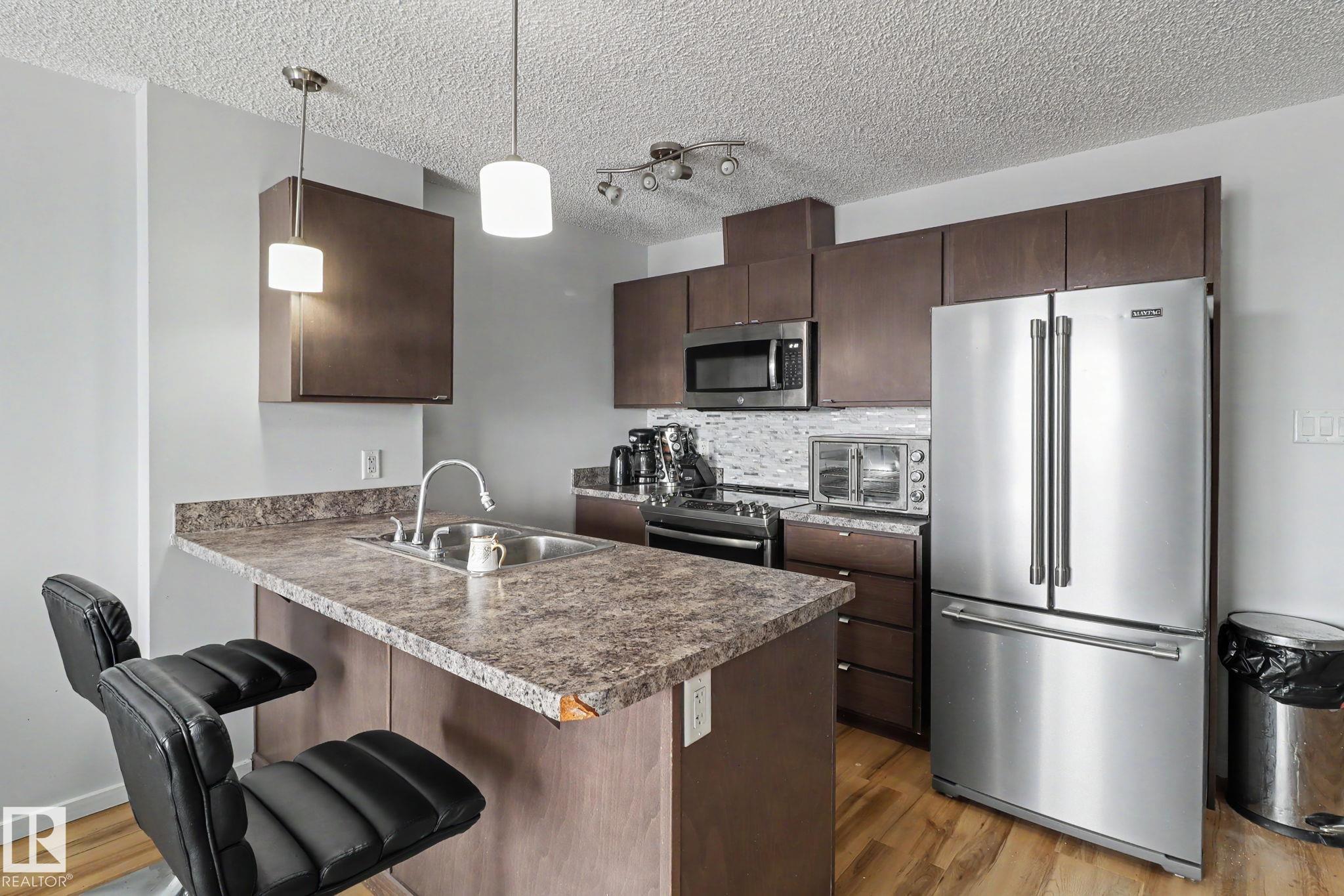 Step into this breathtaking top-floor, 2-bedroom, 2-bathroom condo, where every detail offers comfort and elegance. Enjoy sweeping panoramic views of the river and lush greenery from your sun-drenched, open-concept living space. The modern kitchen flows seamlessly into the expansive living area, perfect for both relaxation and entertaining. Recent upgrades include elegant new vinyl flooring throughout, a gleaming stainless steel fridge, and two brand-new modern toilets installed. Plus, enjoy the convenience of ensuite laundry right in the unit. Step outside onto the generous balcony, ideal for savoring sunsets or morning coffee. Both titled parking spaces?secure underground and surface?offer ultimate convenience, and you?re just minutes from Yellowhead and Anthony Henday, making commuting a breeze.