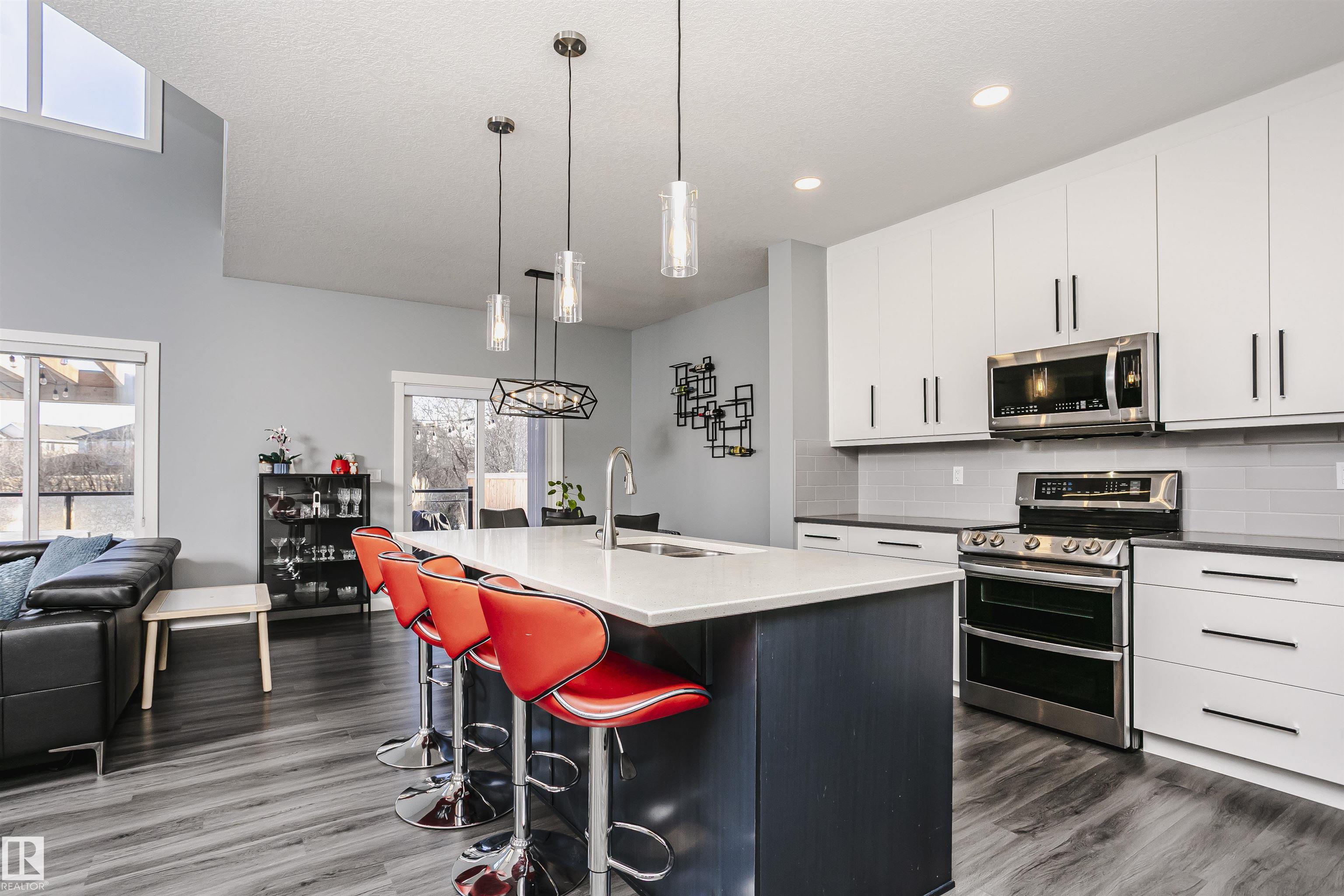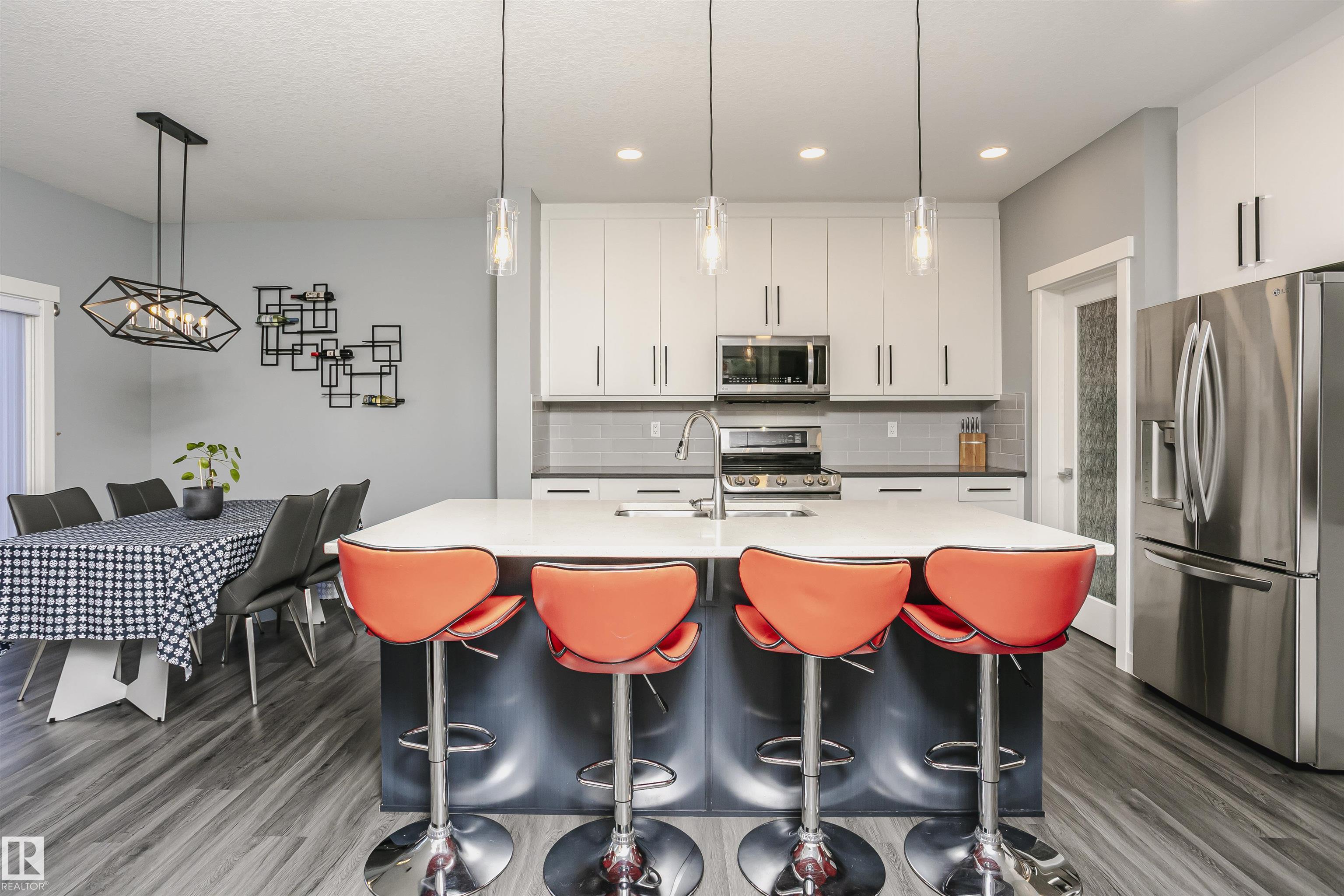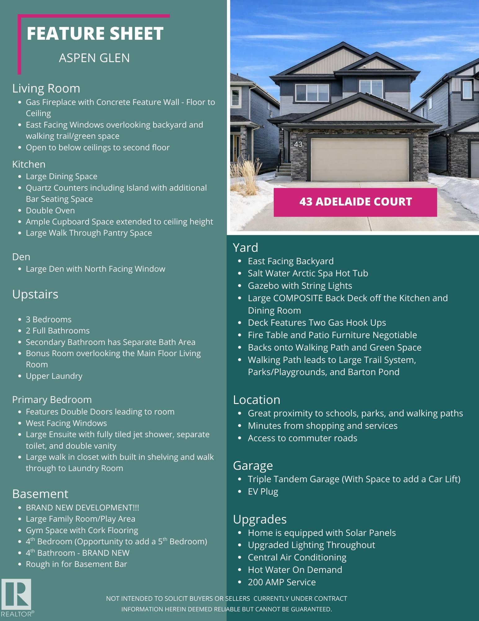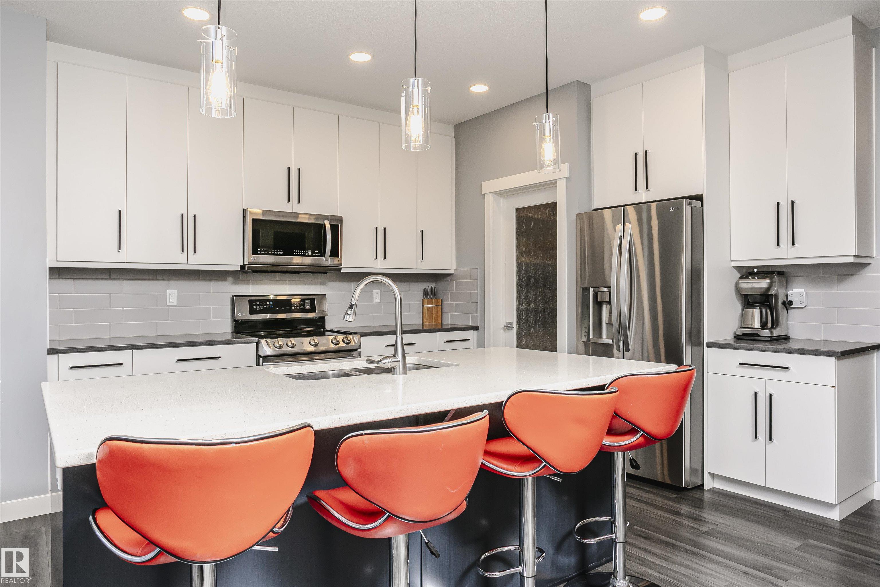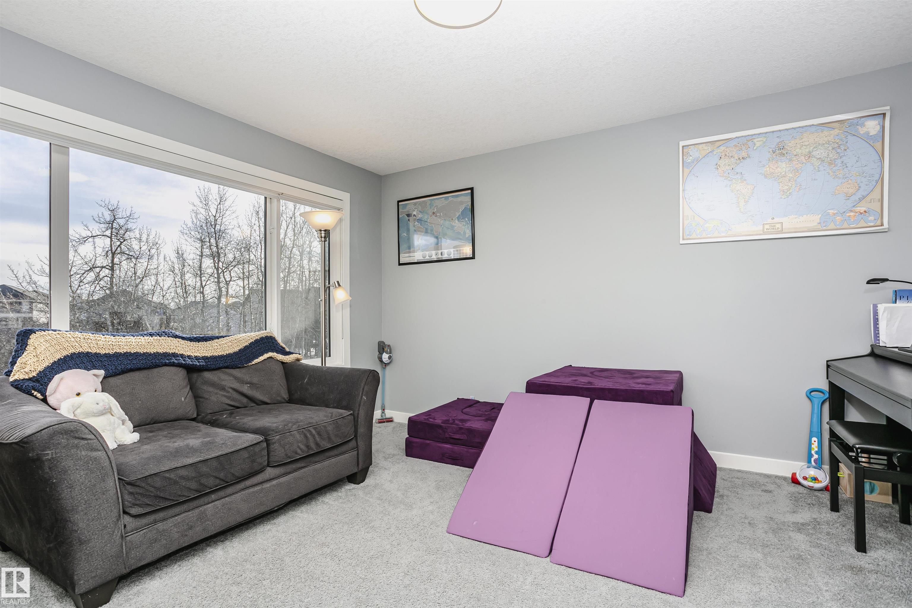Seeking a family friendly area, mins from Jesperdale Playground? Maybe something only a few yrs old, over 2300 sq ft & packed w upgrades? Welcome home! This 2 storey offers a rare triple tandem garage w EV PLUG HOOK-UP! Inside features a spacious foyer connecting to a bright airy staircase, MAIN FLOOR OFFICE with a WINDOW, updated lighting & an open concept kitchen w extended height cabinets, walk-through pantry, quartz counters & breakfast bar island. The living room peeks up to the bonus room above w backyard views + cozy FP. Upstairs features a bonus room, a unique main bath w sep tub & vanity zones & a LUXE PRIMARY SUITE connected to laundry w spa-like ensuite & lg WIC. The NEWLY FIN BSMNT offers a lg bed, full bath w custom tile, roughed-in bar area. Outside enjoy the deck w trellis, patio lights, 2 gas lines + salt water Arctic Spa hot tub. Backing onto a forested green space & stream w walking trails. Extras include central AC, solar panel system, on-demand HWT, HVAC system & 200 amp service.