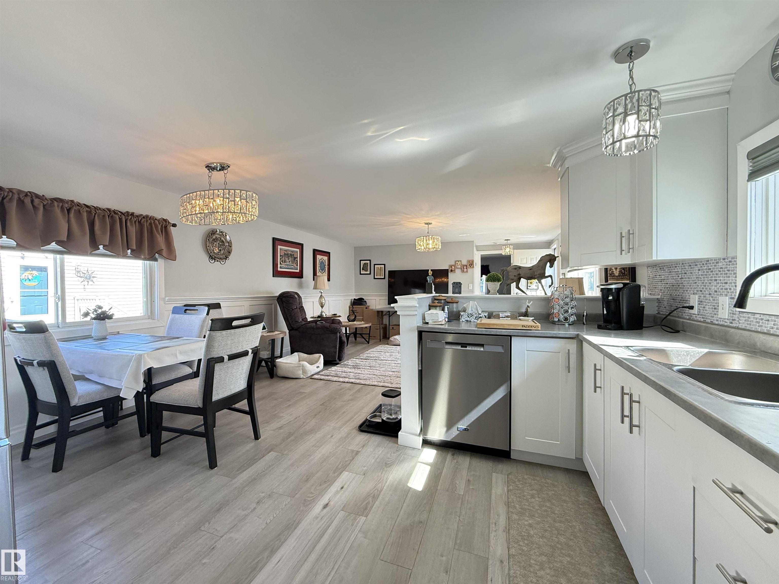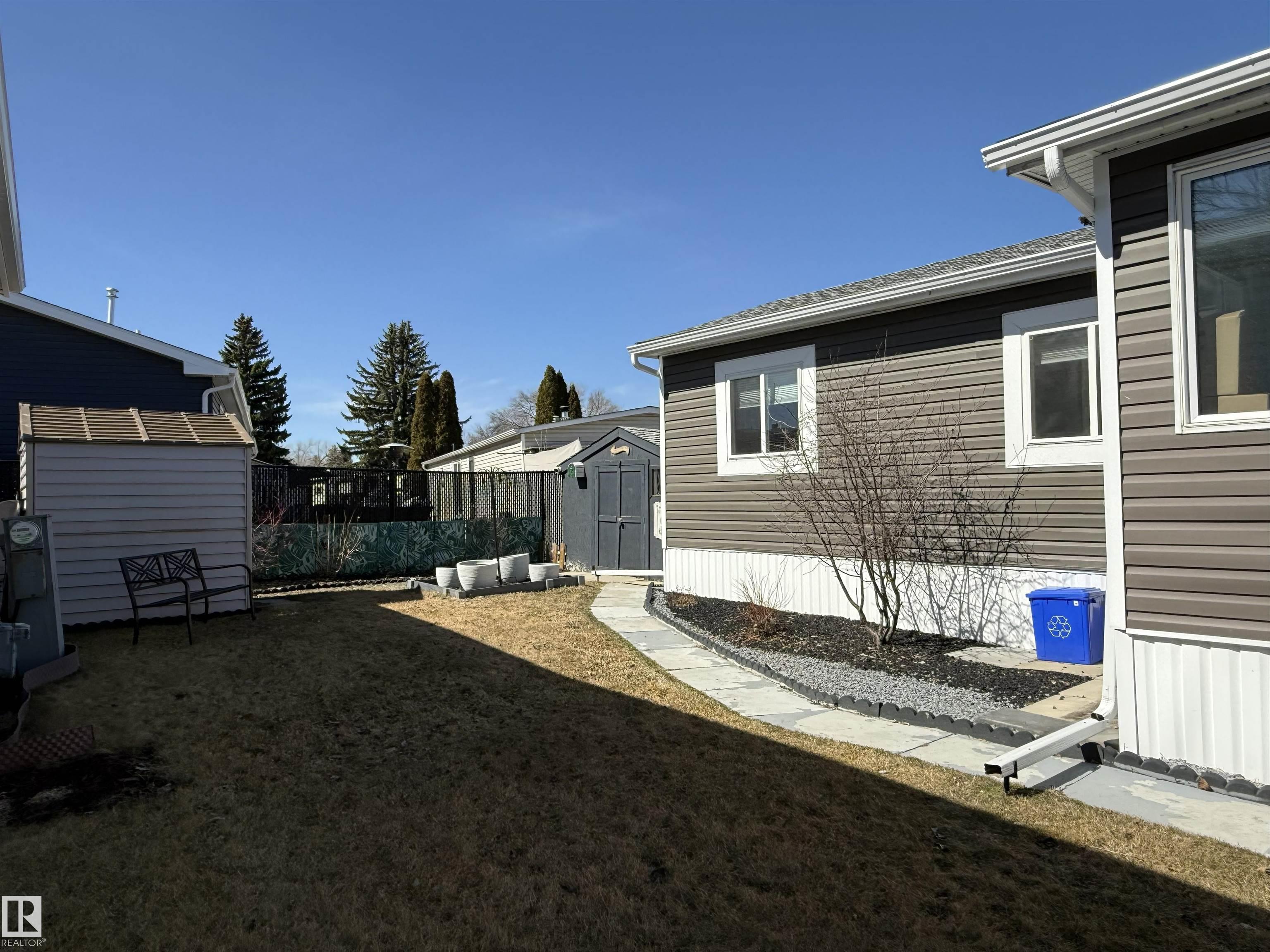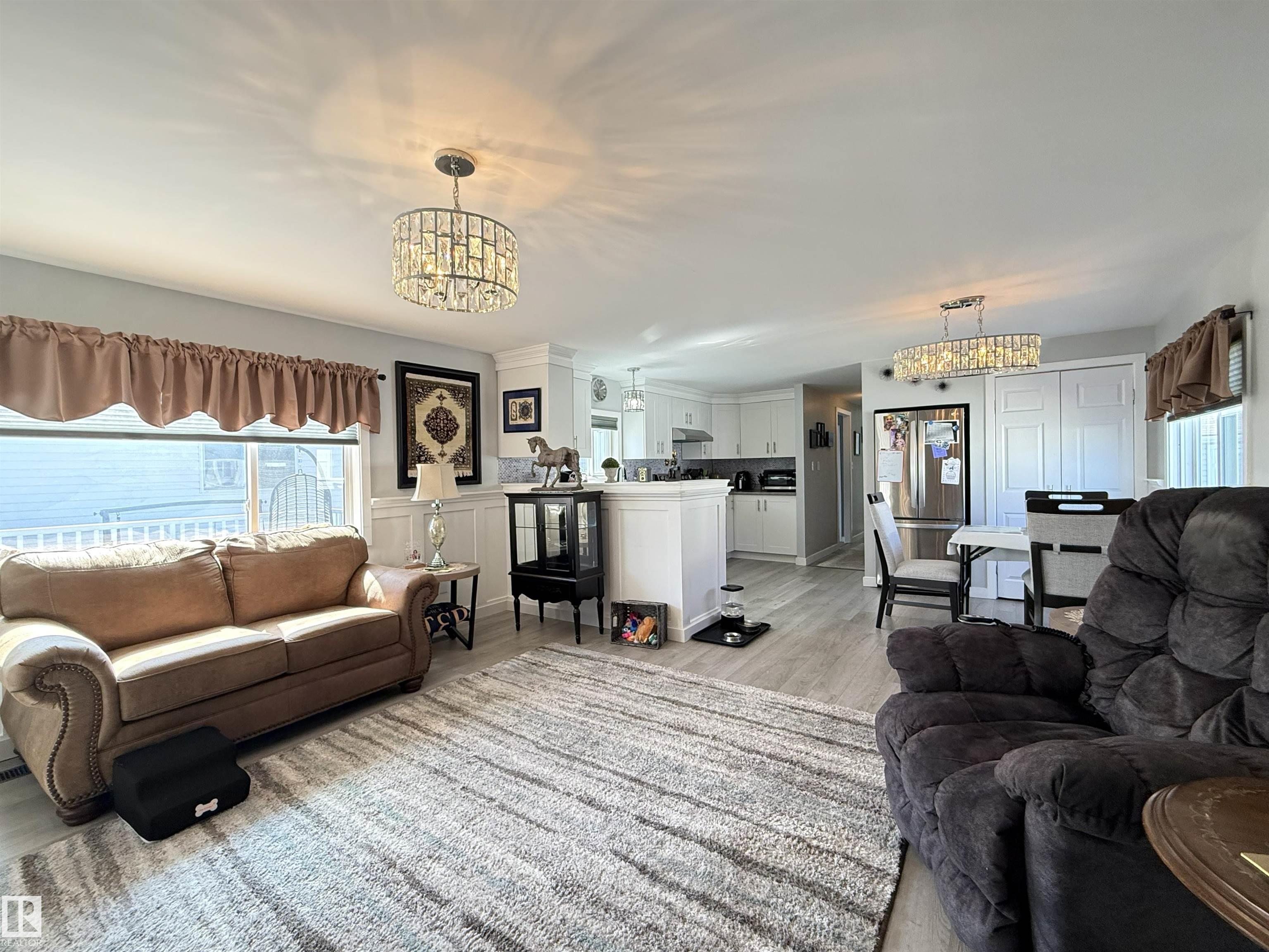 Completely renovated! Beautiful 2 bedroom, 2 bathroom plus office and bonus room! Both bedrooms are large enough for king sized beds, one with a 3 piece en suite, the other has double windows and a walk in closet. Spacious and open kitchen/dining/living room with newer kitchen. Heated sunroom addition! The office room adds extra storage or add a window for a nursery! Property is fully fenced, has a large deck, includes 2 storage sheds and paved parking pad. Other upgrades include windows, insulated exterior walls, vinyl siding, DRYWALL, paint, furnace, hot water tank and new shingles, gutters and deck. MOVE IN READY! Close to parks, school, shopping. Lot fee currently $679/month.