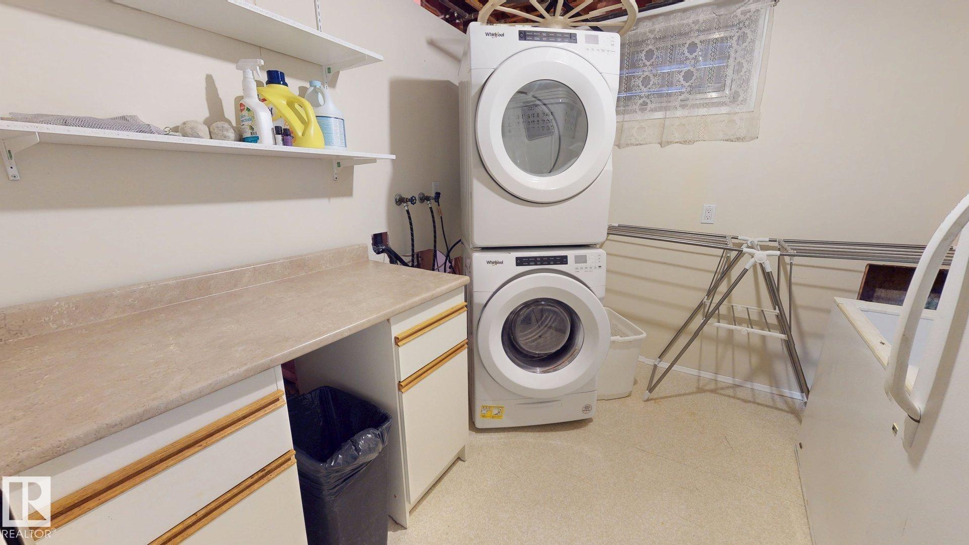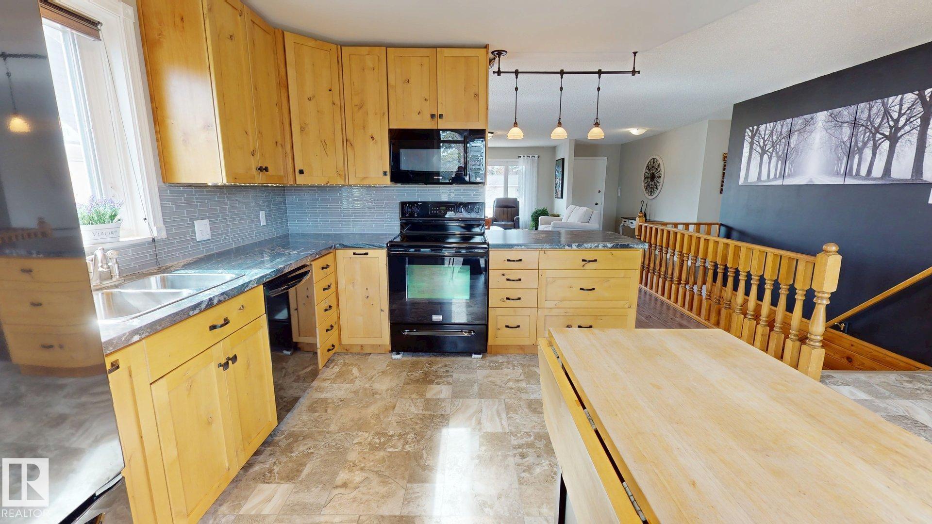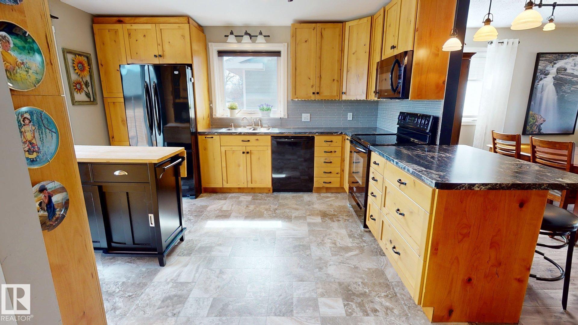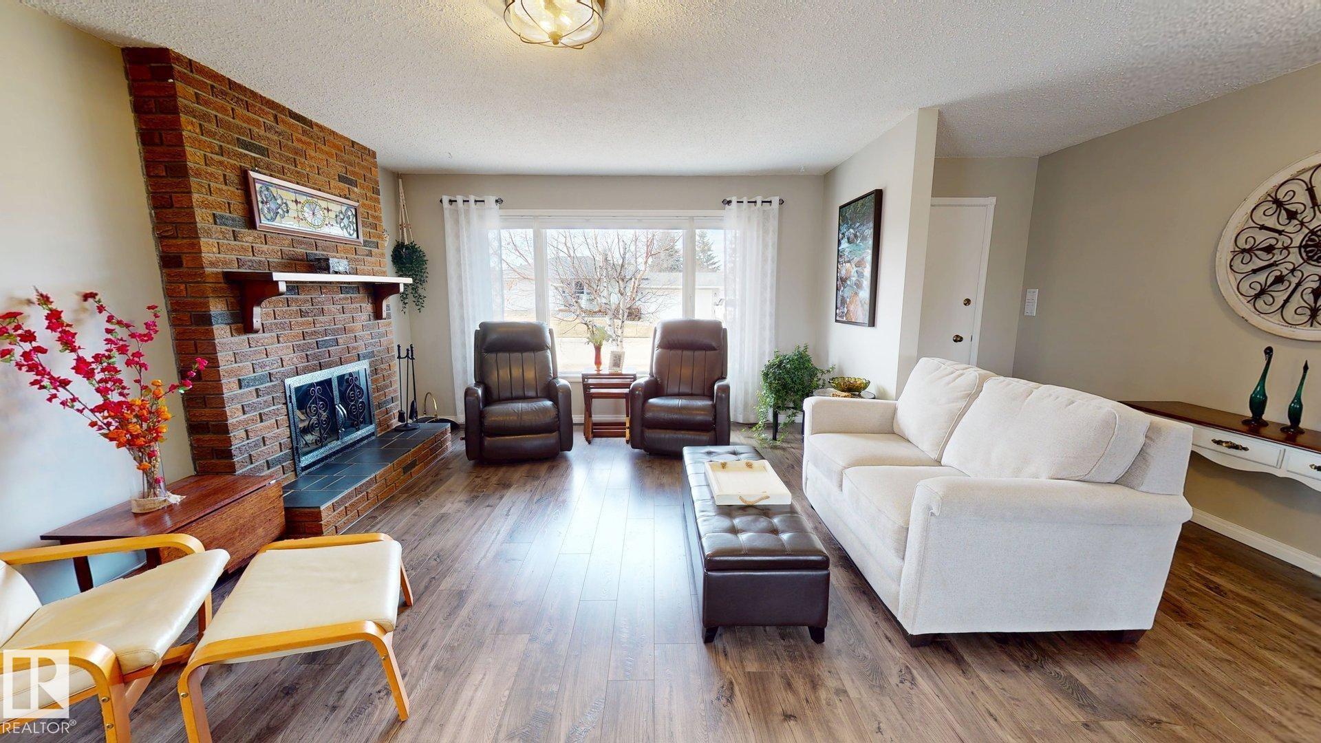 This charming 3-bd, 2-bath bungalow offers 1,316 sq. ft. of comfortable living space in the welcoming community of Millet. This west-facing home backs directly onto Pipestone Creek, creating a private backyard great for relaxing or enjoying nature. Inside, you?ll find a bright and functional layout with three spacious bedrooms and a beautifully updated kitchen featuring ample cabinetry and brand-new flooring throughout. The inviting living room is highlighted by a cozy wood-burning fireplace, while central air conditioning ensures comfort during warm summer months. All appliances are included for added convenience. The partially finished basement is ideal for entertaining, with a large recreation room featuring a TV area, and included pool table, foosball table, and additional fridge. The laundry room is well-equipped with a new washer and dryer, cabinetry, a freezer, and space for a drying rack. A heated, oversized detached garage provides excellent space for vehicles, storage, and a functional workshop.