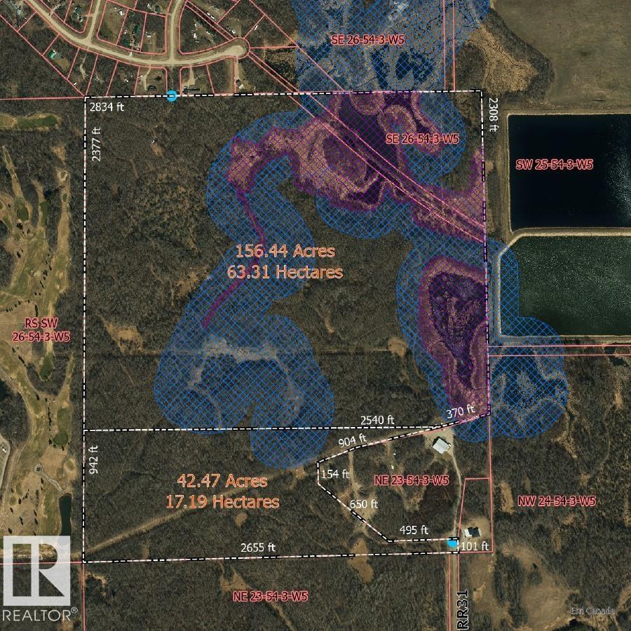 SECLUDED, FULLY TREED 42 ACRES DIRECTLY ADJACENT TO ALBERTA BEACH GOLF COURSE. Perfect for an estate home, RV park or campground. Huge upside for a developer with vision. Less than two miles to the public beach and facilities in the thriving recreational community of Alberta Beach. 30 minutes from west Edmonton, all except one mile on asphalt. Park your RV while you plan for the future over a cocktail.