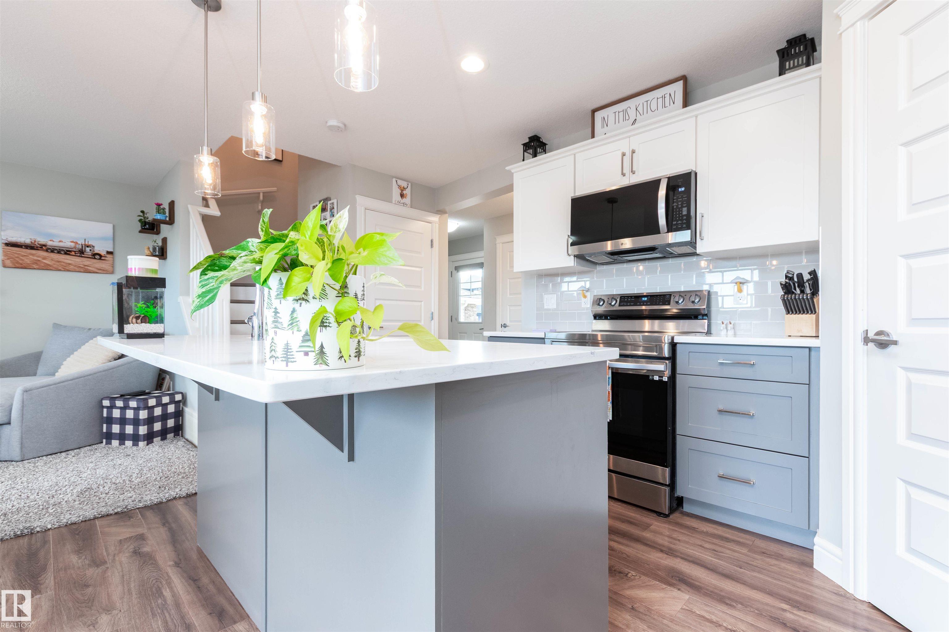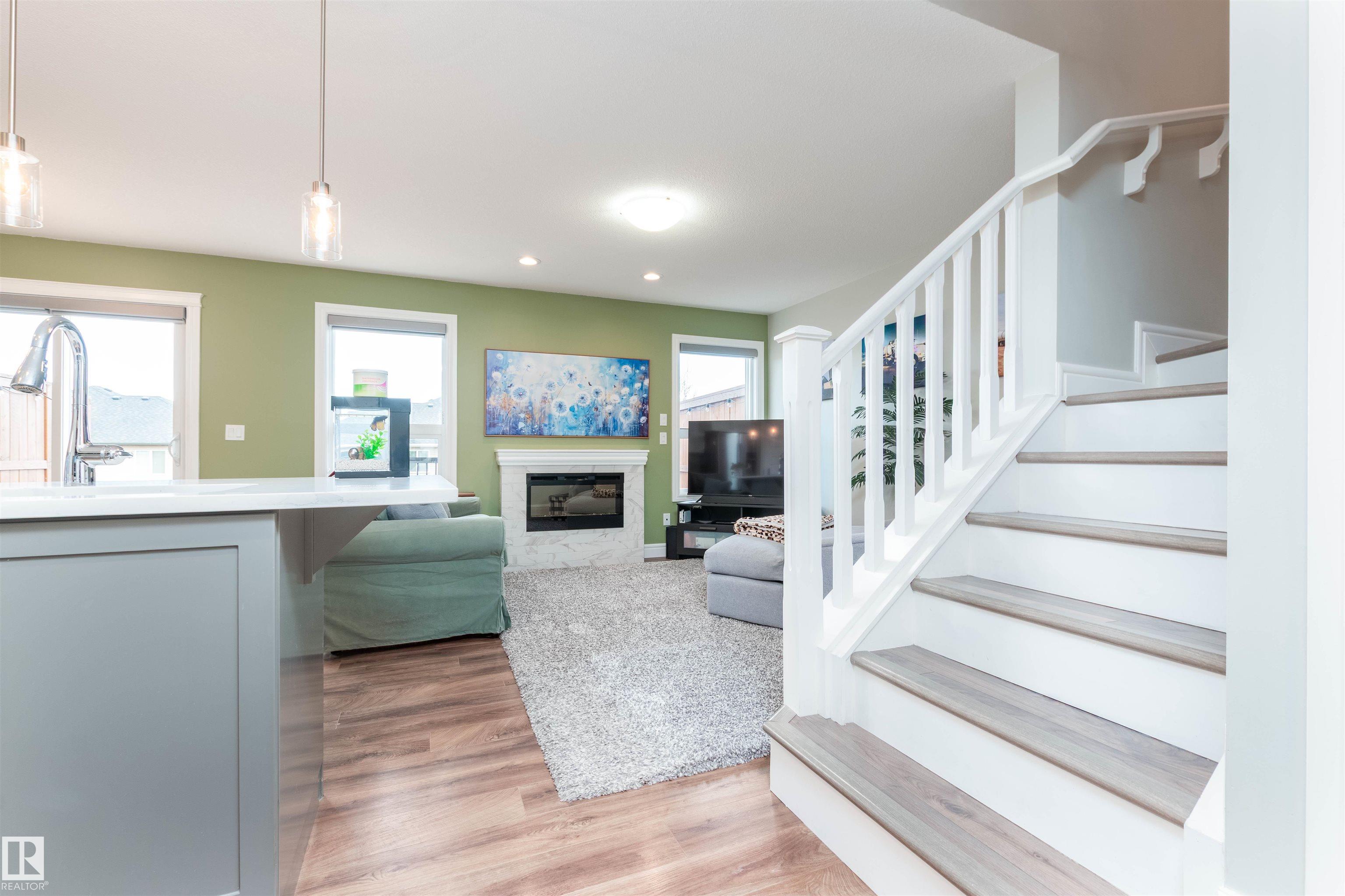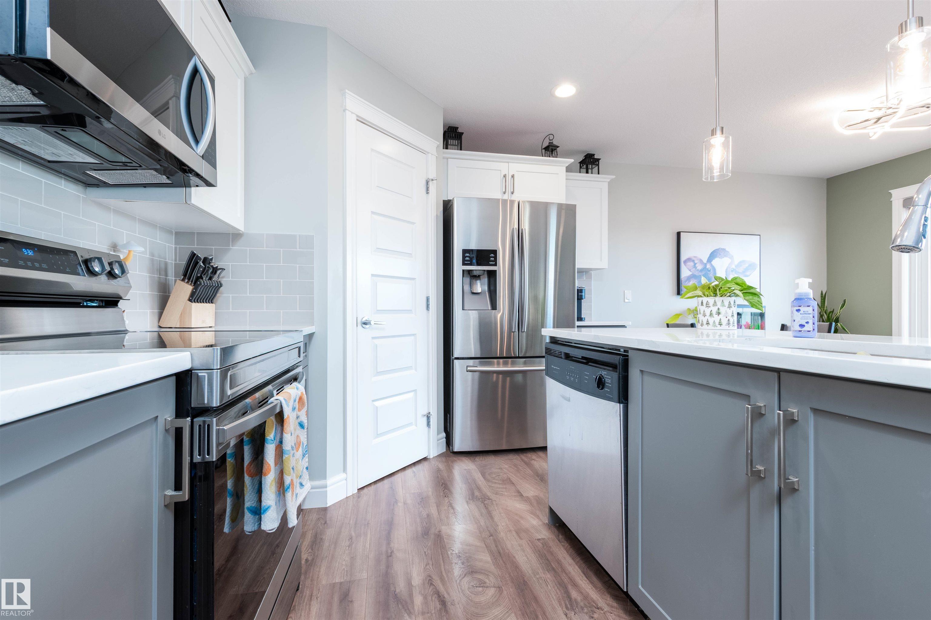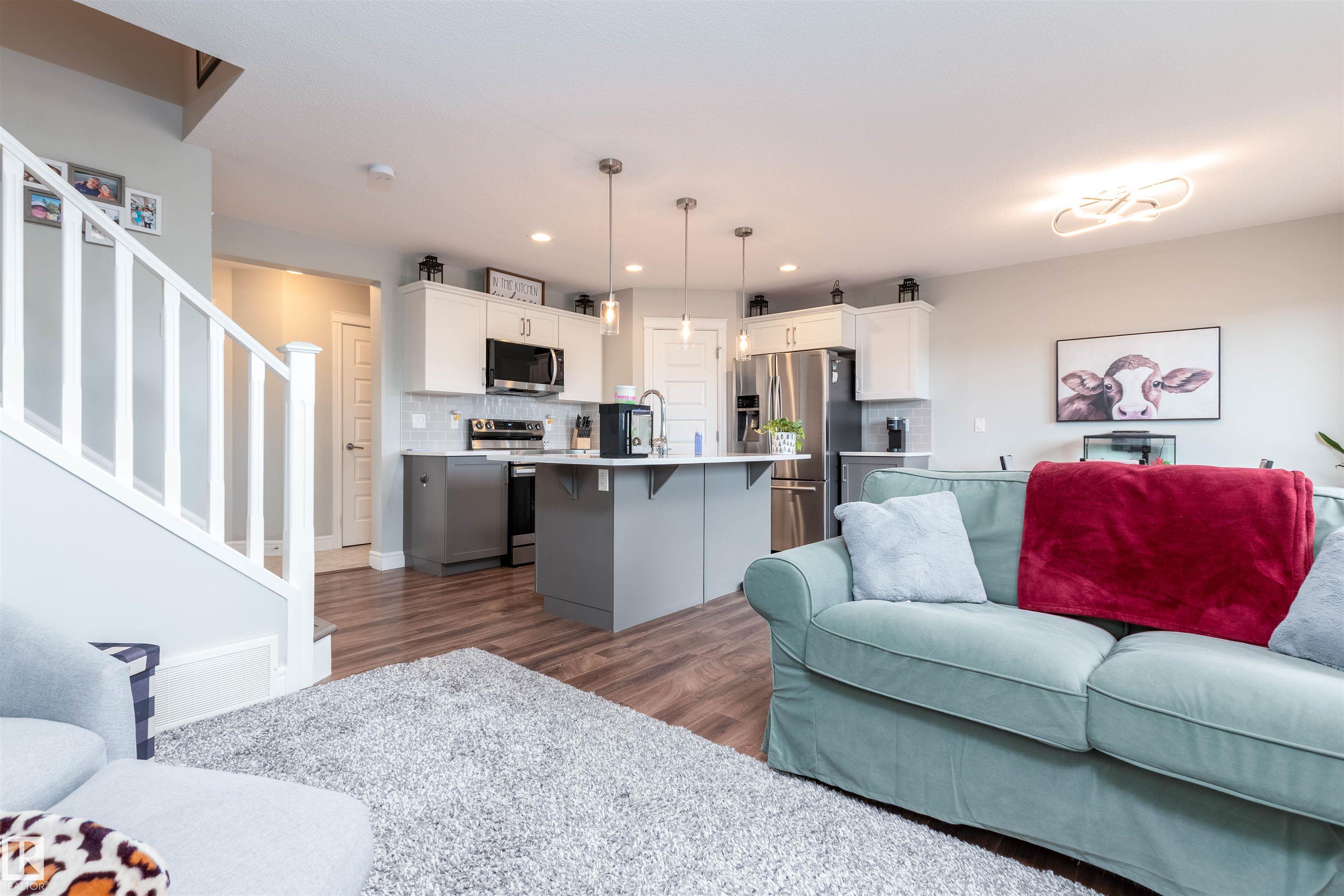 BEAUTIFUL HALF DUPLEX! Warm and inviting with 1551 square feet and double attached garage. NO condo fees here! Featuring a gorgeous kitchen with Quartz countertops, island, walk-through pantry and stainless steel appliances. Open dining area, laminate flooring, and a spacious living room with attractive electric fireplace. Main floor powder room. Upstairs are 3 bedrooms, bonus room area/flex space, laundry, and a 4-piece bathroom. The Primary Bedroom features its own beautiful 4-piece ensuite and walk-in closet. Lovely backyard with planters, deck with privacy wall and lighting that goes around the perimeter of the yard, plus a hot-tub to enjoy! Great curb appeal and a fabulous location. Close to great amenities, parks, trails, various restaurants and major shopping! See this beauty today! Visit REALTOR® website for more information.