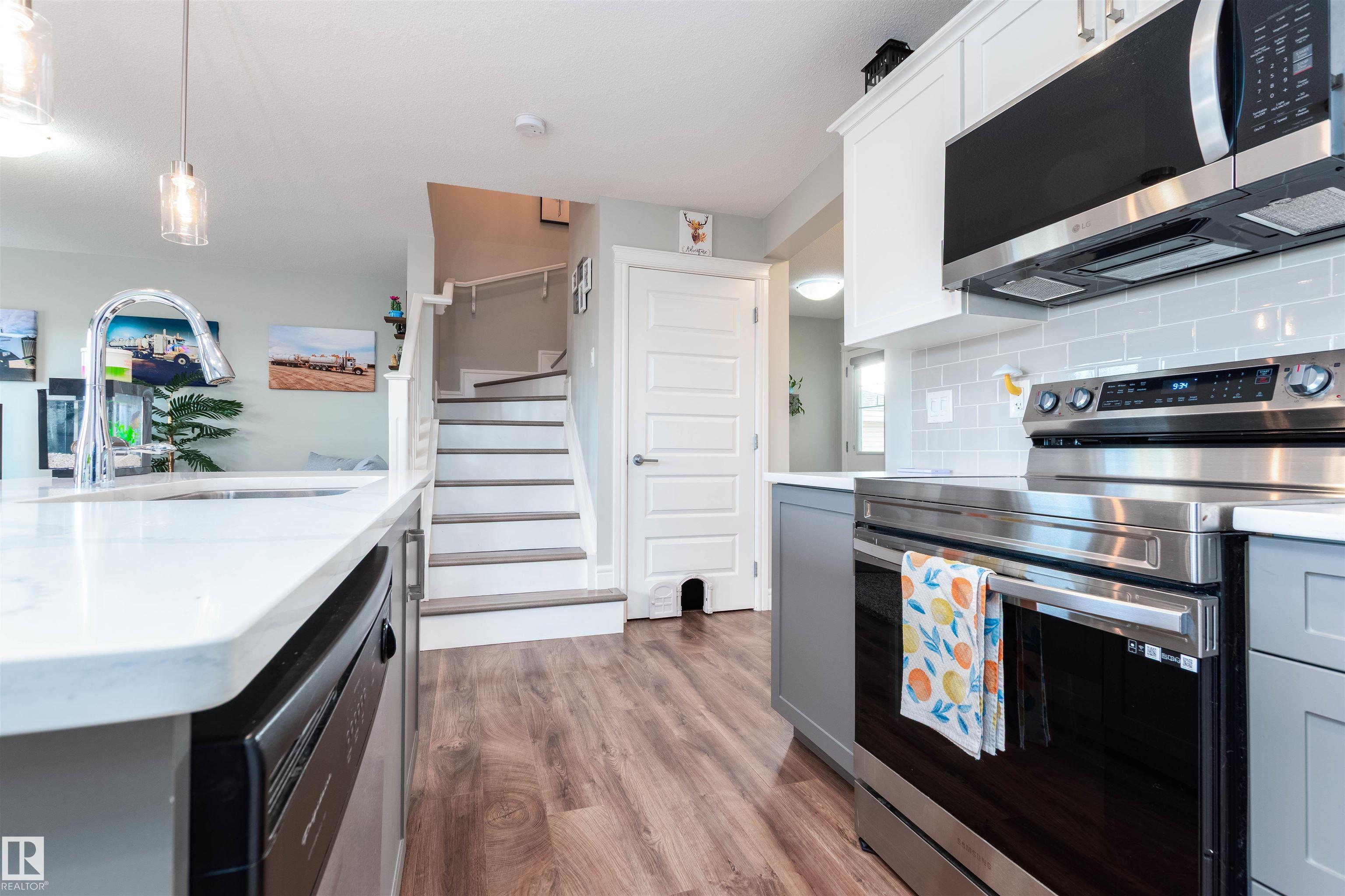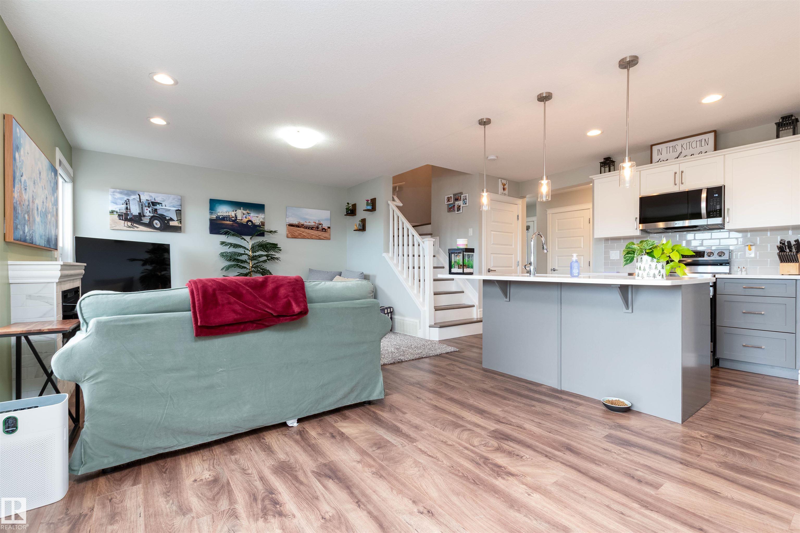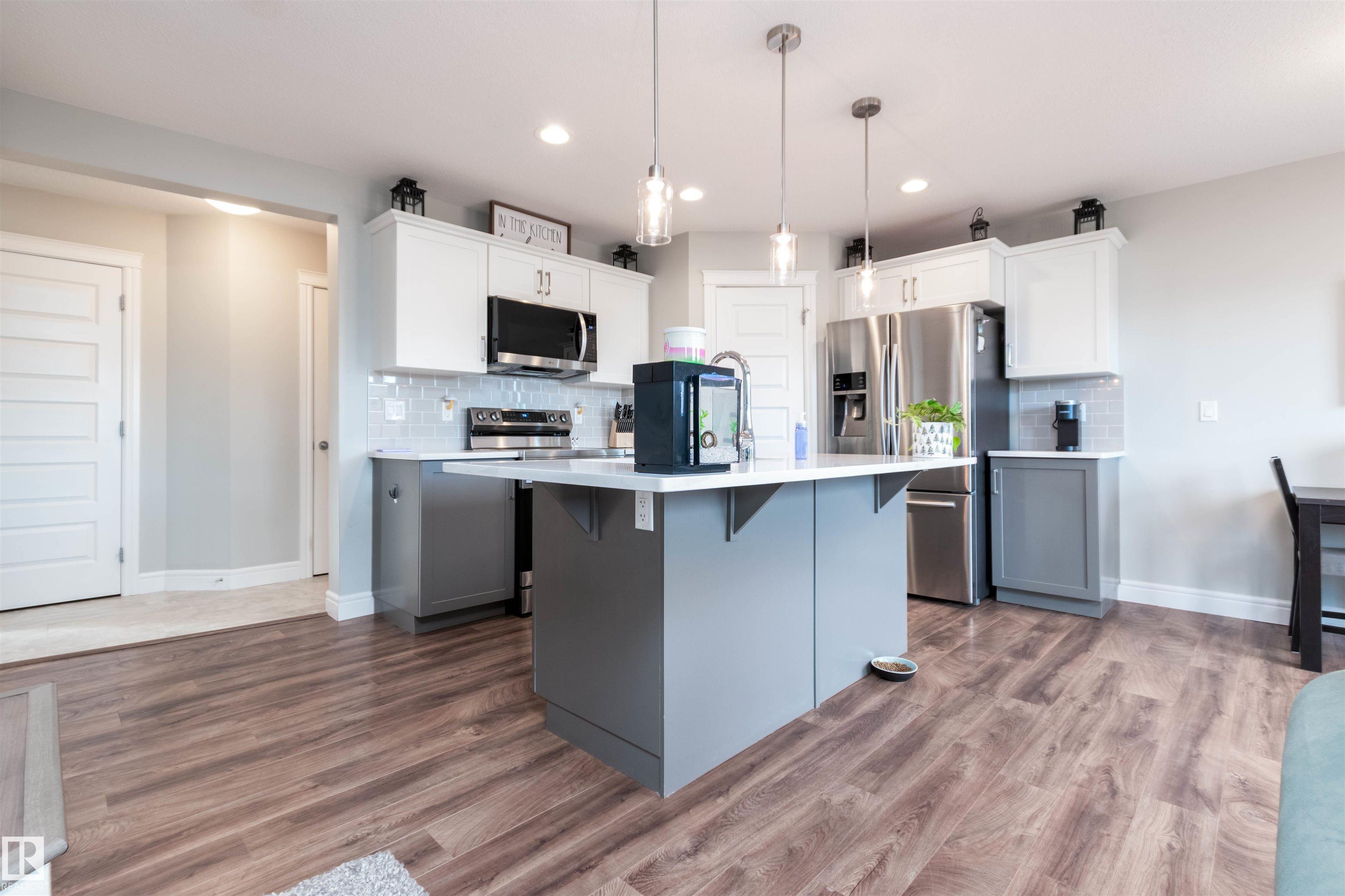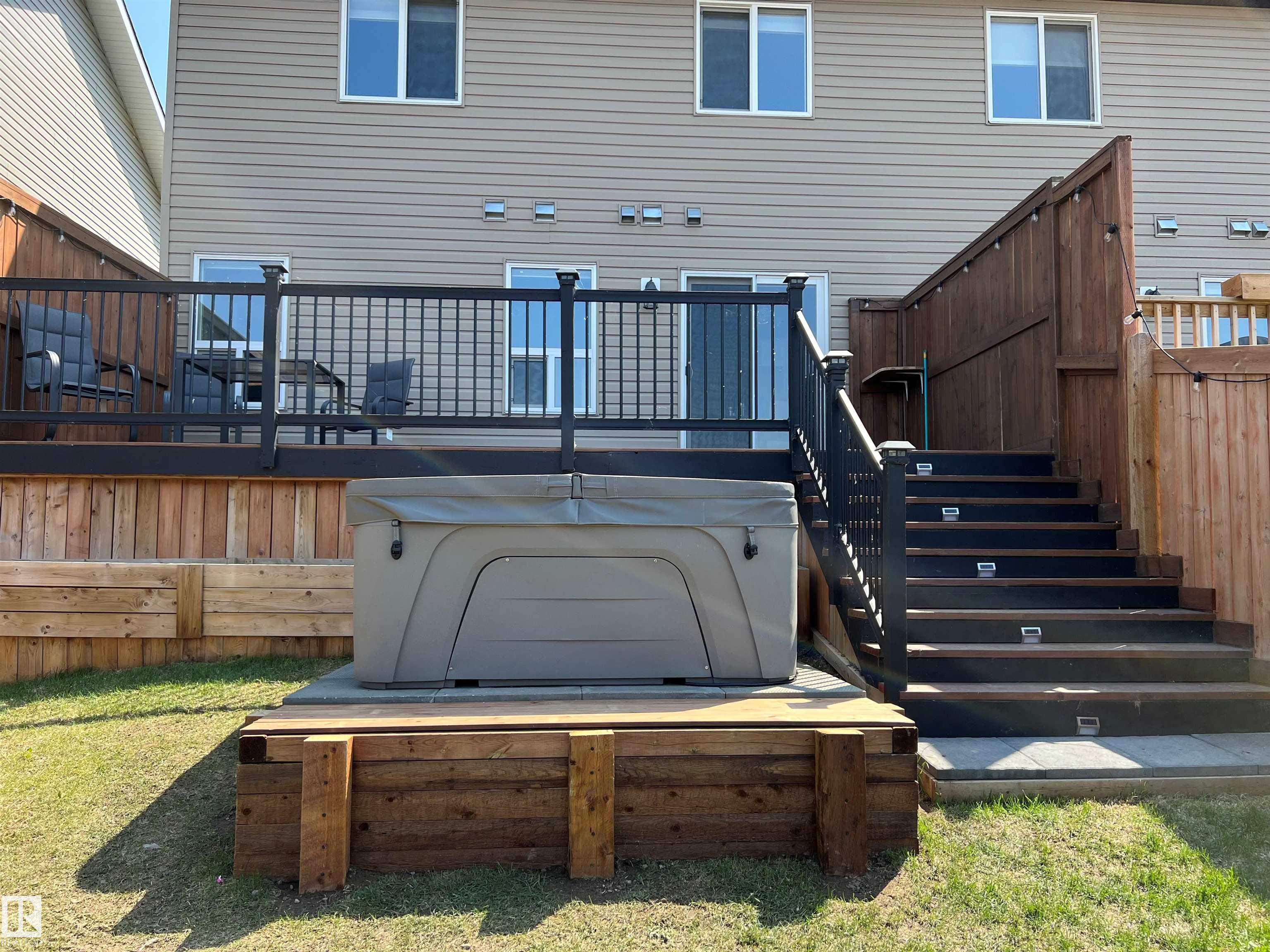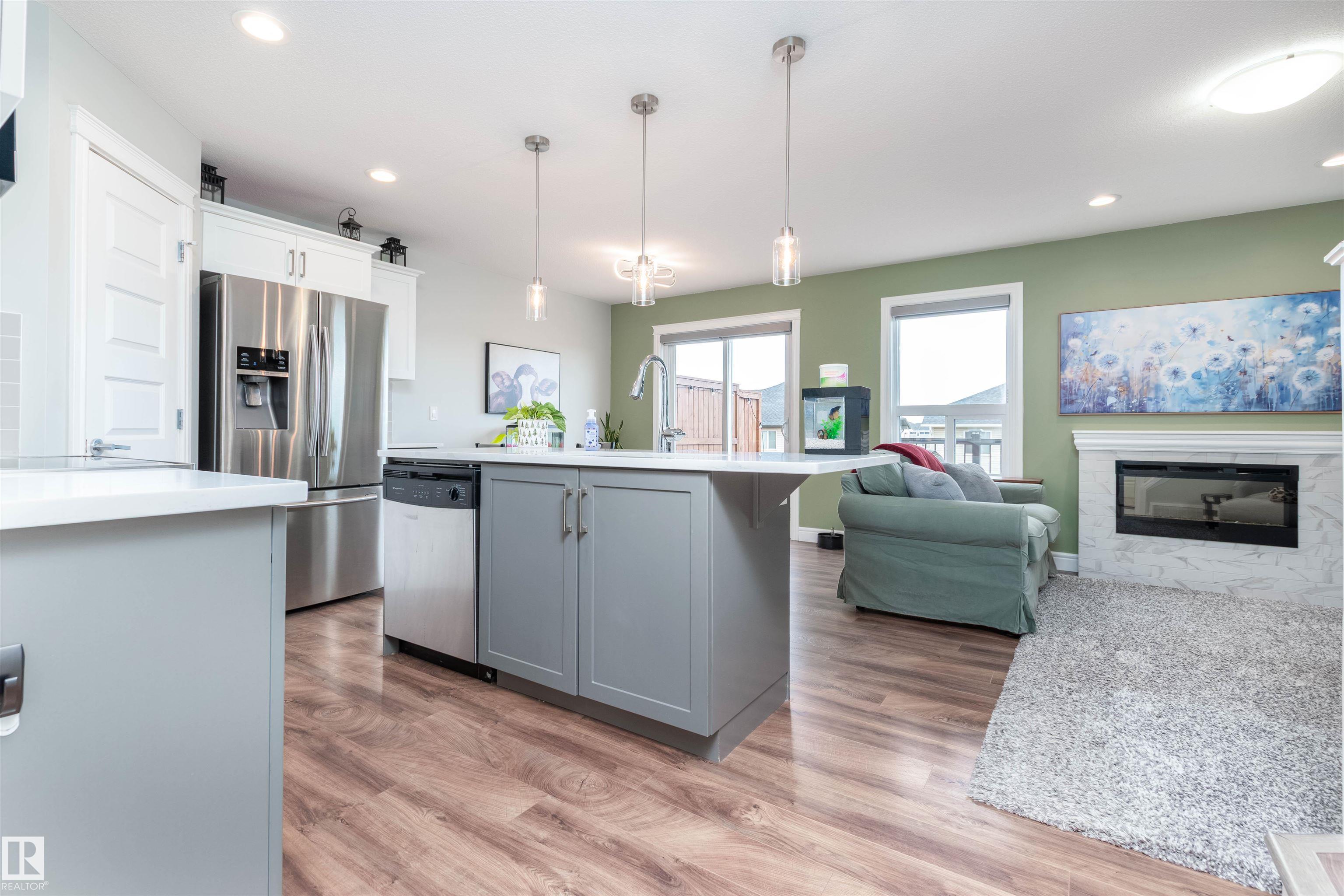 BEAUTIFUL HALF DUPLEX! Warm and inviting with 1551 square feet and double attached garage. NO condo fees here! Featuring a gorgeous kitchen with Quartz countertops, island, walk-through pantry and stainless steel appliances. Open dining area, laminate flooring, and a spacious living room with attractive electric fireplace. Main floor powder room. Upstairs are 3 bedrooms, bonus room area/flex space, laundry, and a 4-piece bathroom. The Primary Bedroom features its own beautiful 4-piece ensuite and walk-in closet. Lovely backyard with planters, deck with privacy wall and lighting that goes around the perimeter of the yard, plus a hot-tub to enjoy! Great curb appeal and a fabulous location. Close to great amenities, parks, trails, various restaurants and major shopping! See this beauty today! Visit REALTOR® website for more information.