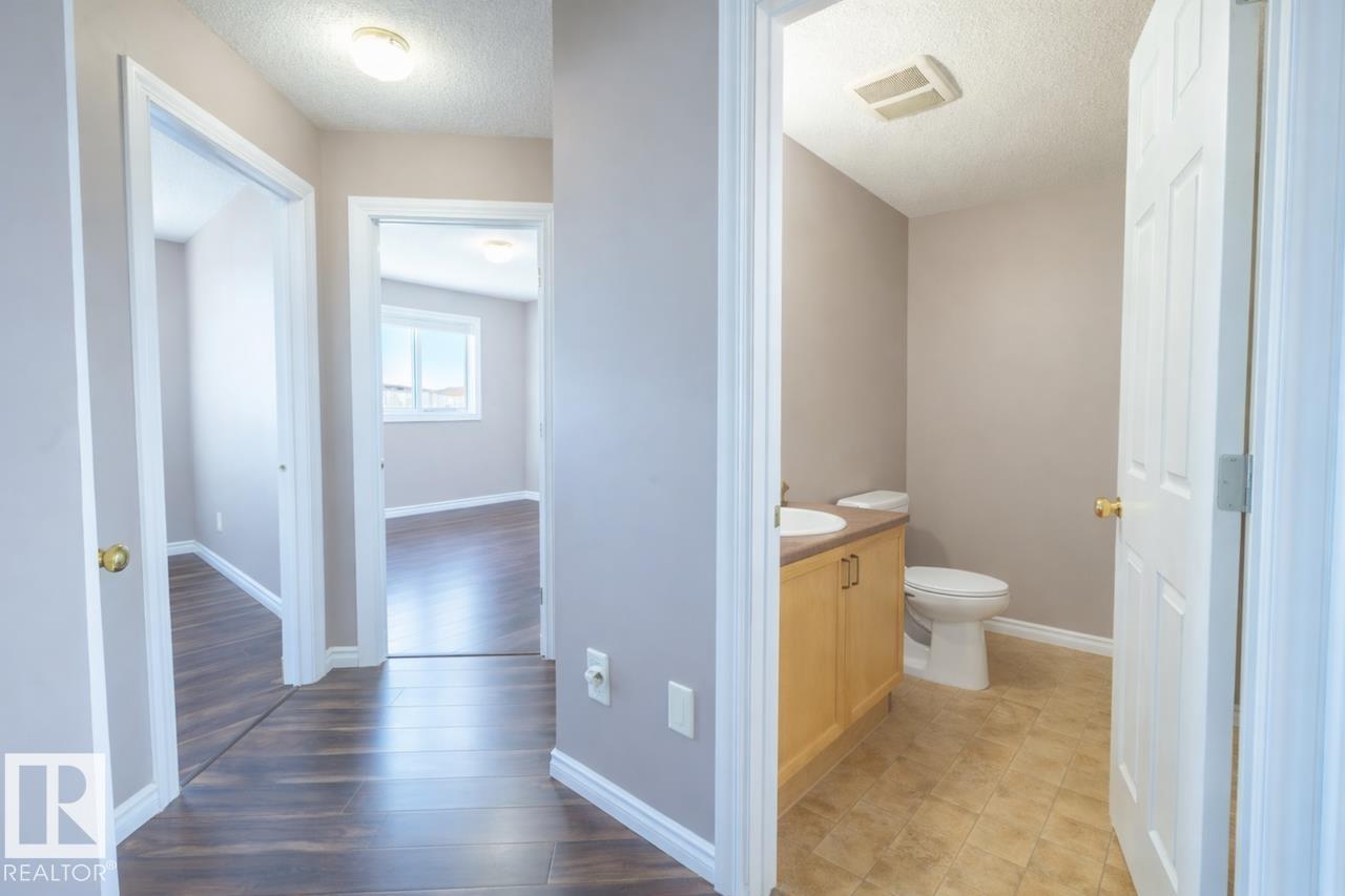 Welcome Home! This beautifully kept half-duplex with over 1,675 sqft of fully finished living space in Silver Berry, Edmonton. This home offers 3 bedrooms, 1 full bathroom and 2 half bathrooms, and a bright, functional layout with plenty of room to spread out. The main floor opens up into a spacious living area with a modern fireplace, large picture windows, and access off the dining area to the oversized backyard and deck. The kitchen is both stylish and practical, featuring an island and lots of storage. Upstairs you'll find 3 generous bedrooms and a full 4pc bathroom. The fully finished basement gives you even more usable space with a large rec room that could be used as a family room, gym, or flex area, along with an additional 2pc bathroom. Newer laminate flooring throughout adds to the fresh feel, and the location is hard to beat with schools, shopping, transit, parks, and playgrounds nearby. The Meadows Recreation Centre is literally just steps from your backyard.