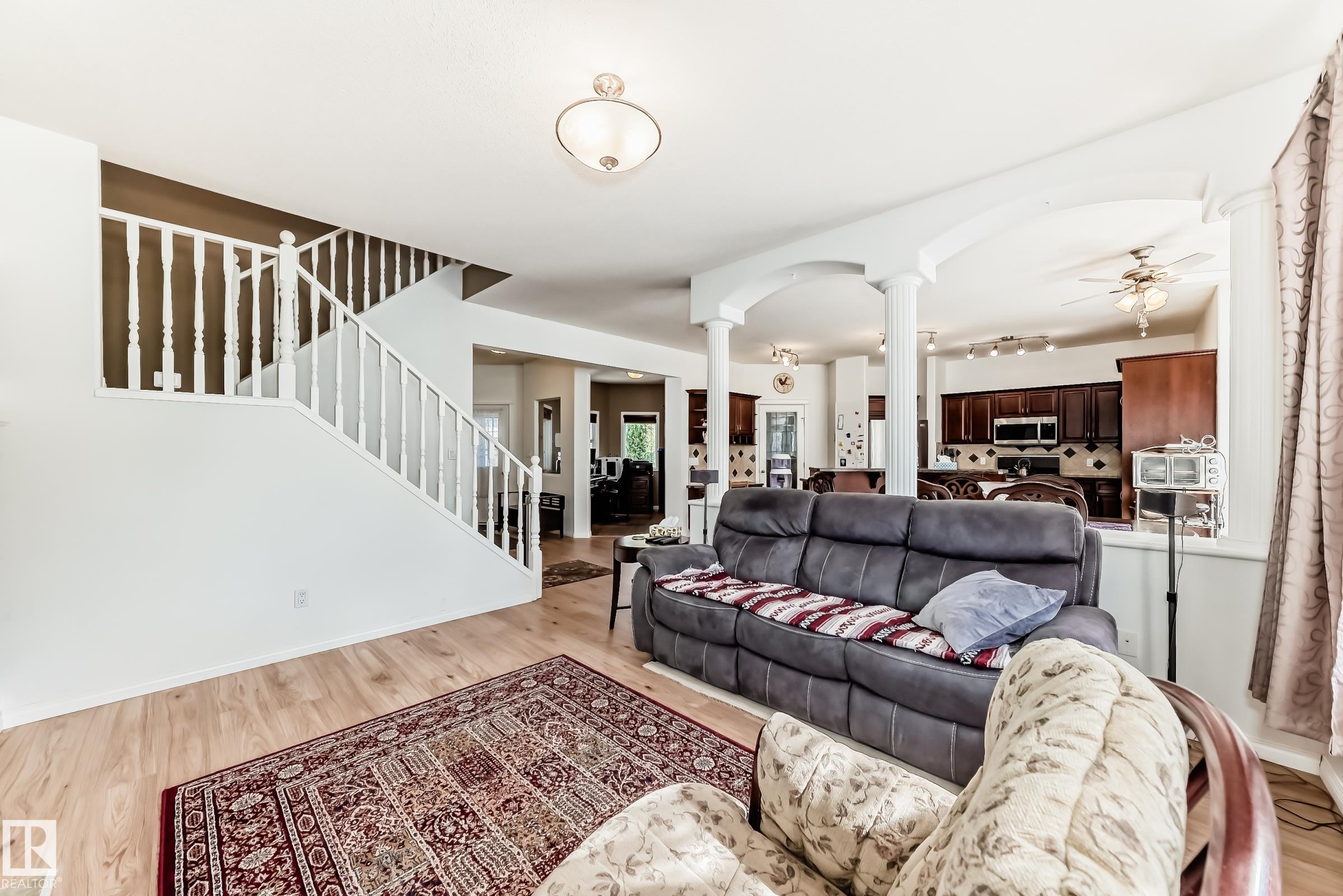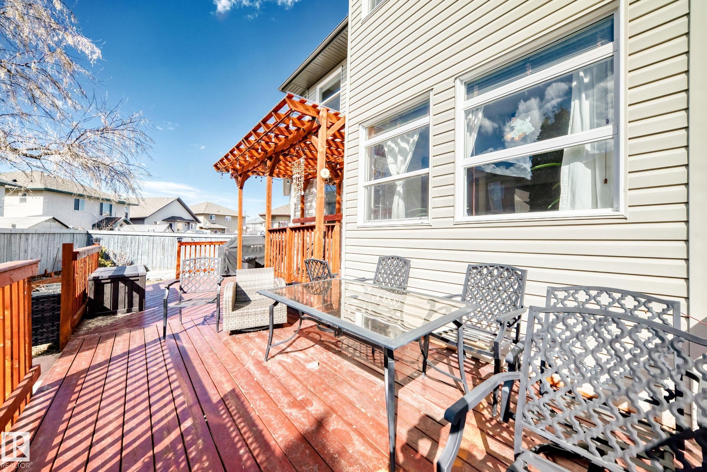 STUNNING CUSTOM-BUILT 2-STOREY IN CHAMBERY - FULLY FINISHED Welcome to this beautiful maintained custom-built 2-storey home located in a quiet cul-de-sac on a pie-shaped lot in desirable Chambery. Featuring 6 bedrooms and 4 full bathrooms, this home offers exceptional space for families. The main floor boasts a grand entrance with soaring ceilings, a spacious living room, formal dining area, large kitchen with island and seating, plus a versatile den ideal for an office or second family room. Convenient main floor laundry adds to the functionality. Upstairs offers 4 generous bedrooms, including a massive primary suite with space for a sitting area and a luxurious 5-piece ensuite. The fully finished basement includes 2 large bedrooms, a full bathroom, and a comfortable family room -perfect for extended family or guests. Enjoy the heated oversized double attached garage, central A/C, and beautifully landscaped yard with a large deck and pergola. A perfect family home in a prime location! Close to the EIA