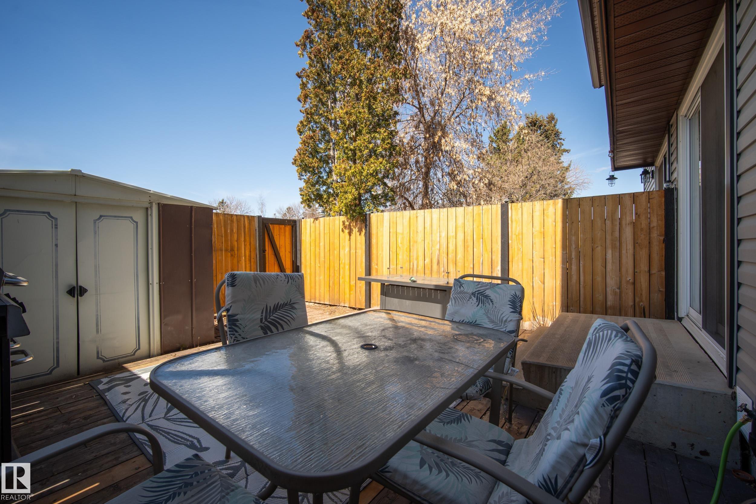 Welcome to the well kept condo complex of Bannerman Village. The moment you enter this 2 storey townhouse you will feel the care of ownership! The main floor has an eating area within the kitchen, and then there's a large living room which opens up to the back yard. The back yard is fully fenced and has a small shed, and no direct neighbours overlooking into your space, so it feels nice and peaceful year round. Upstairs you'll find 3 bedrooms total with a full 4 piece washroom. Downstairs is the perfect spot to relax and watch the Oilers win the Staley Cup! With another 3 piece washroom, you'll be able to watch the game all night long! Bannerman Village is incredibly close to major roadways, transit, schools and shopping.