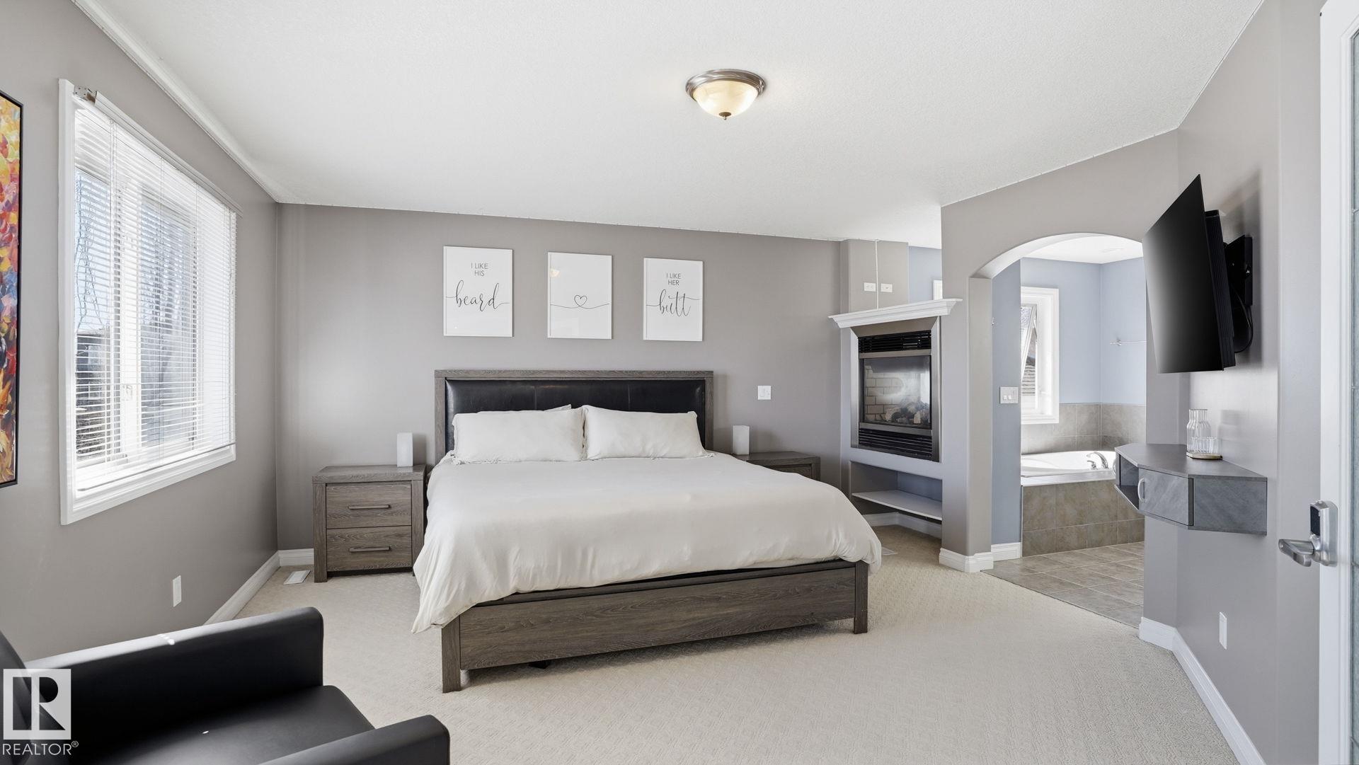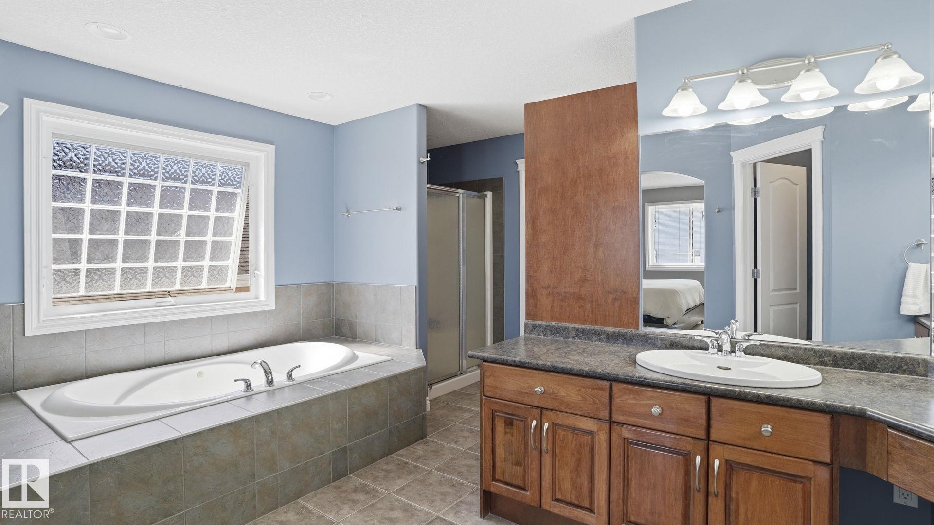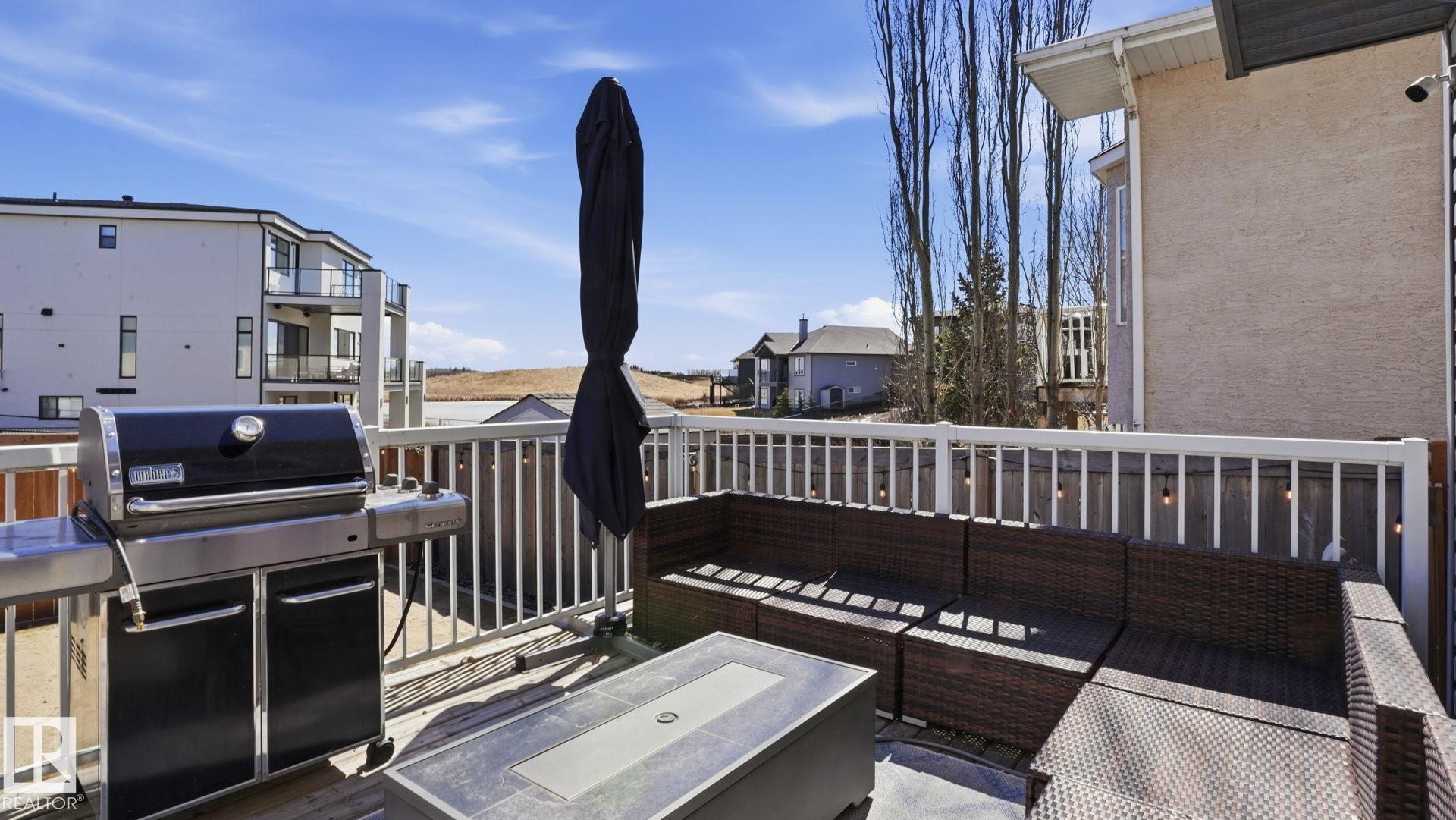 Located in Beaumont Lakes a 1st. class subdivision with-in walking distance to Schools, Parks and Shopping. 2727sq.ft of Great Family Space. Covered front Verandah greets you! Main floor Den Plus a separate Laundry room w/sink and Formal Dining room(or a second Den) with arched entrance. Chefs Kitchen is loaded with cabinets and Granite Counter tops + Pantry w/garden door to back deck. Gas fireplace in the Living room + Picture window overlooking the fenced back yard. Upper level w/3 Bedrooms, Primary Bedroom has access onto the upper deck. This Spacious Bedroom w/3 sided gas fireplace is a private Oasis with a lovely Ensuite complete with jacuzzi tub, oversized shower, double sinks, built in dresser, water closet and a walk-in closet. 2nd and 3rd Bedroom are also a good size. Roomy Bonus Room has access to the Upper deck with glorious Lake views! Basement is full and open. Back yard has tamped area for above ground pool. Garage is 22'W X 24'D Shingles new in 2025