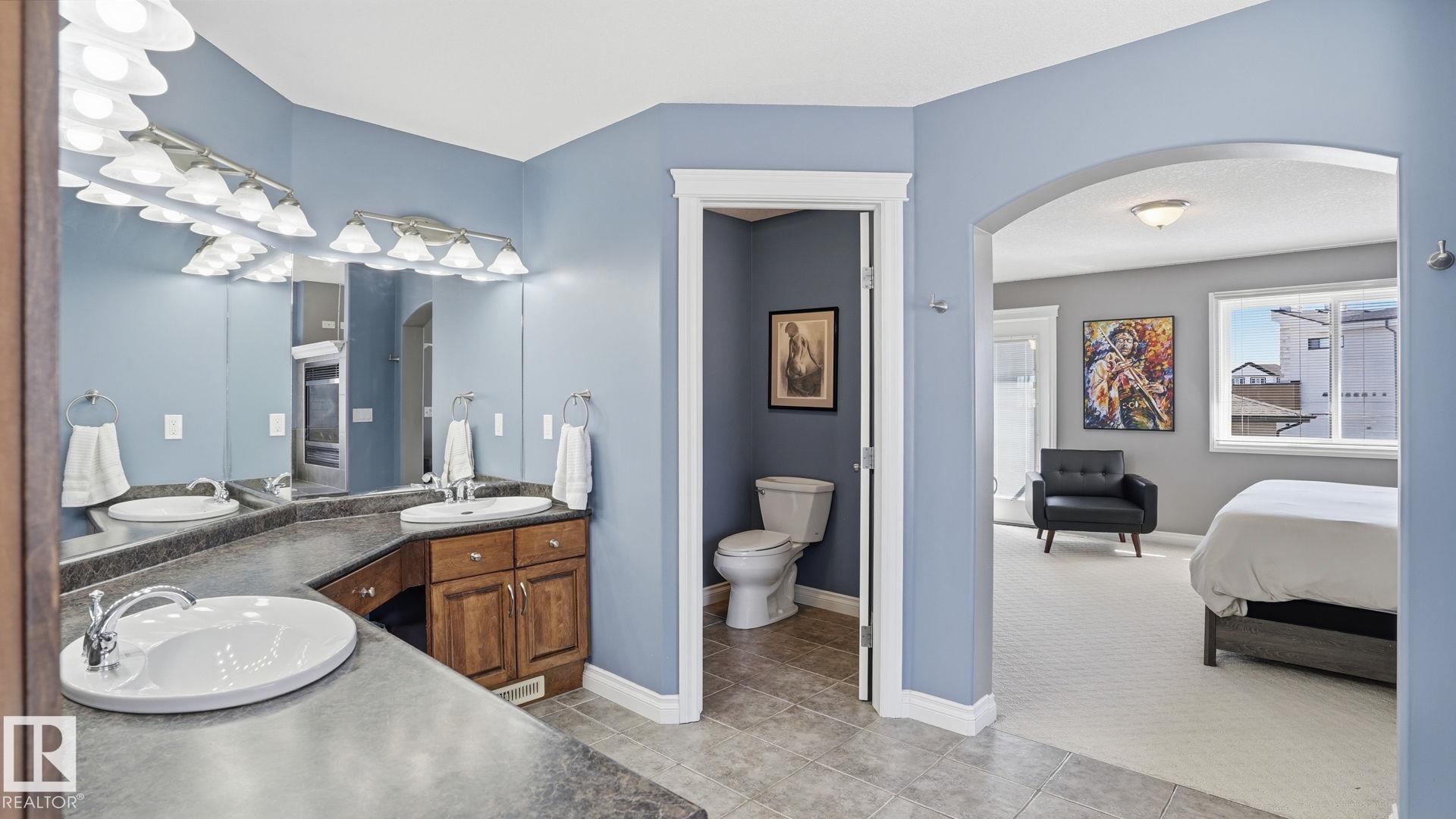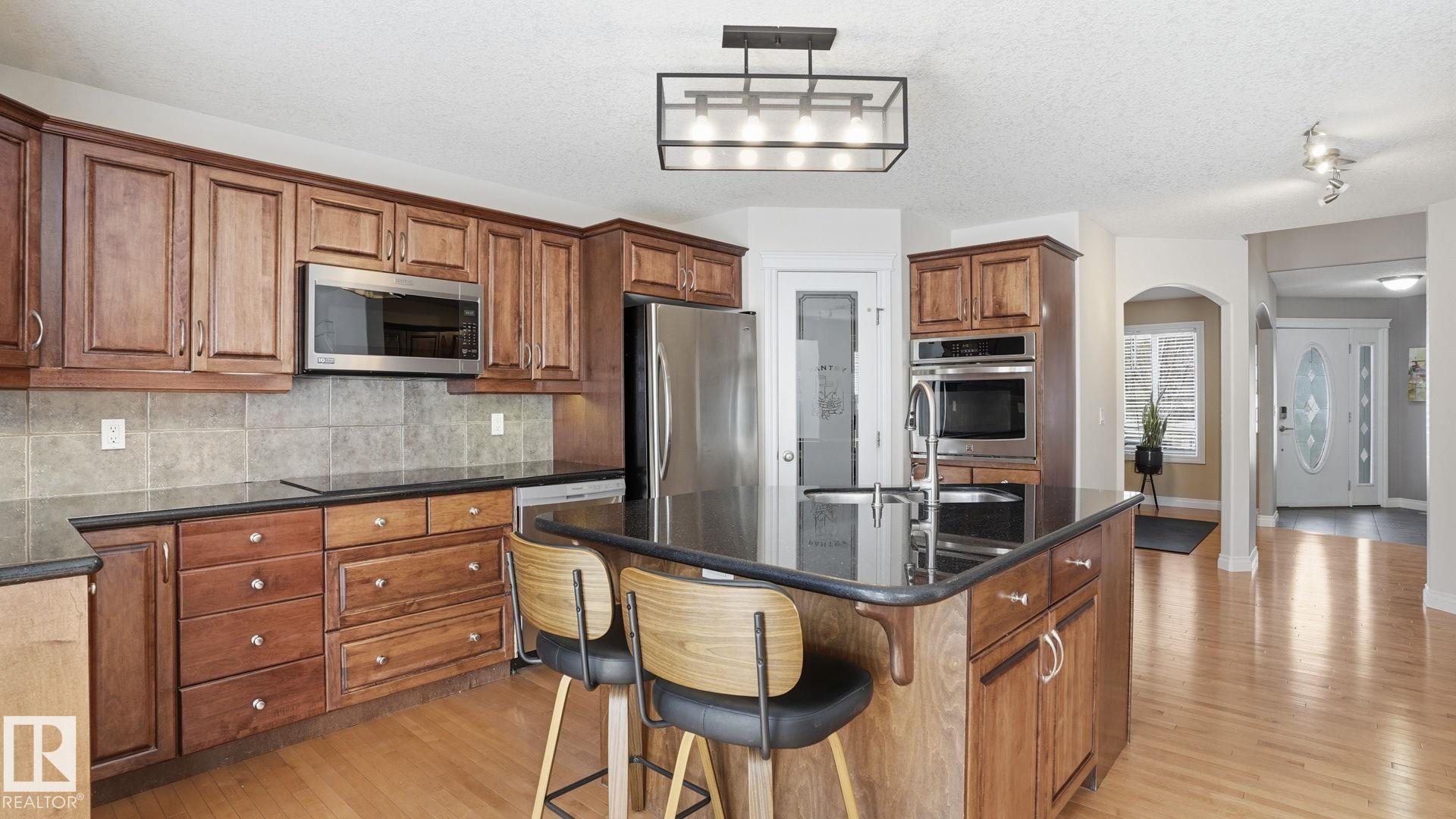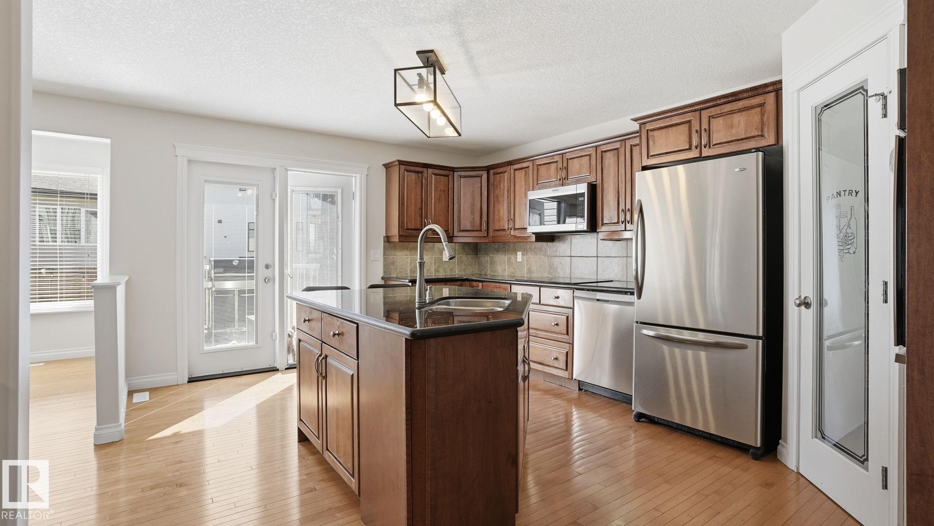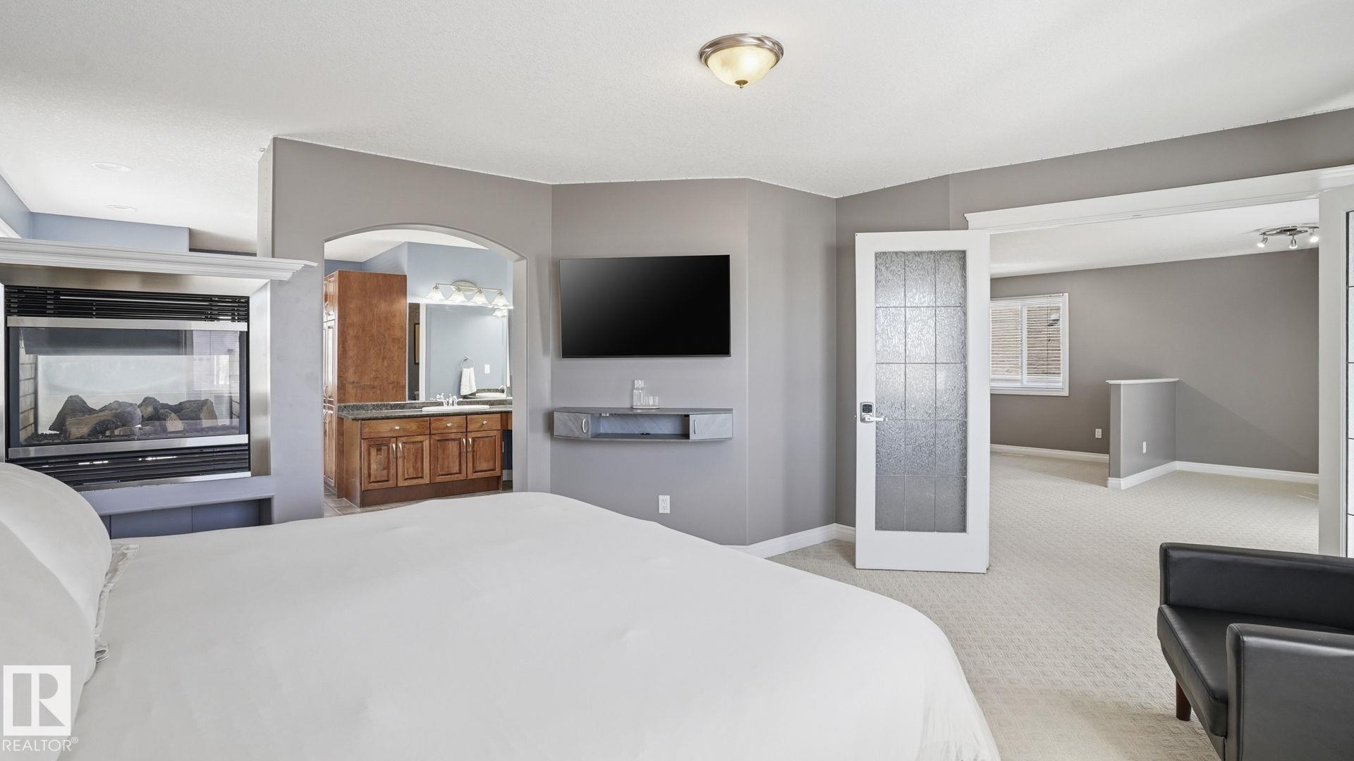 Located in Beaumont Lakes a 1st. class subdivision with-in walking distance to Schools, Parks and Shopping. 2727sq.ft of Great Family Space. Covered front Verandah greets you! Main floor Den Plus a separate Laundry room w/sink and Formal Dining room(or a second Den) with arched entrance. Chefs Kitchen is loaded with cabinets and Granite Counter tops + Pantry w/garden door to back deck. Gas fireplace in the Living room + Picture window overlooking the fenced back yard. Upper level w/3 Bedrooms, Primary Bedroom has access onto the upper deck. This Spacious Bedroom w/3 sided gas fireplace is a private Oasis with a lovely Ensuite complete with jacuzzi tub, oversized shower, double sinks, built in dresser, water closet and a walk-in closet. 2nd and 3rd Bedroom are also a good size. Roomy Bonus Room has access to the Upper deck with glorious Lake views! Basement is full and open. Back yard has tamped area for above ground pool. Garage is 22'W X 24'D Shingles new in 2025