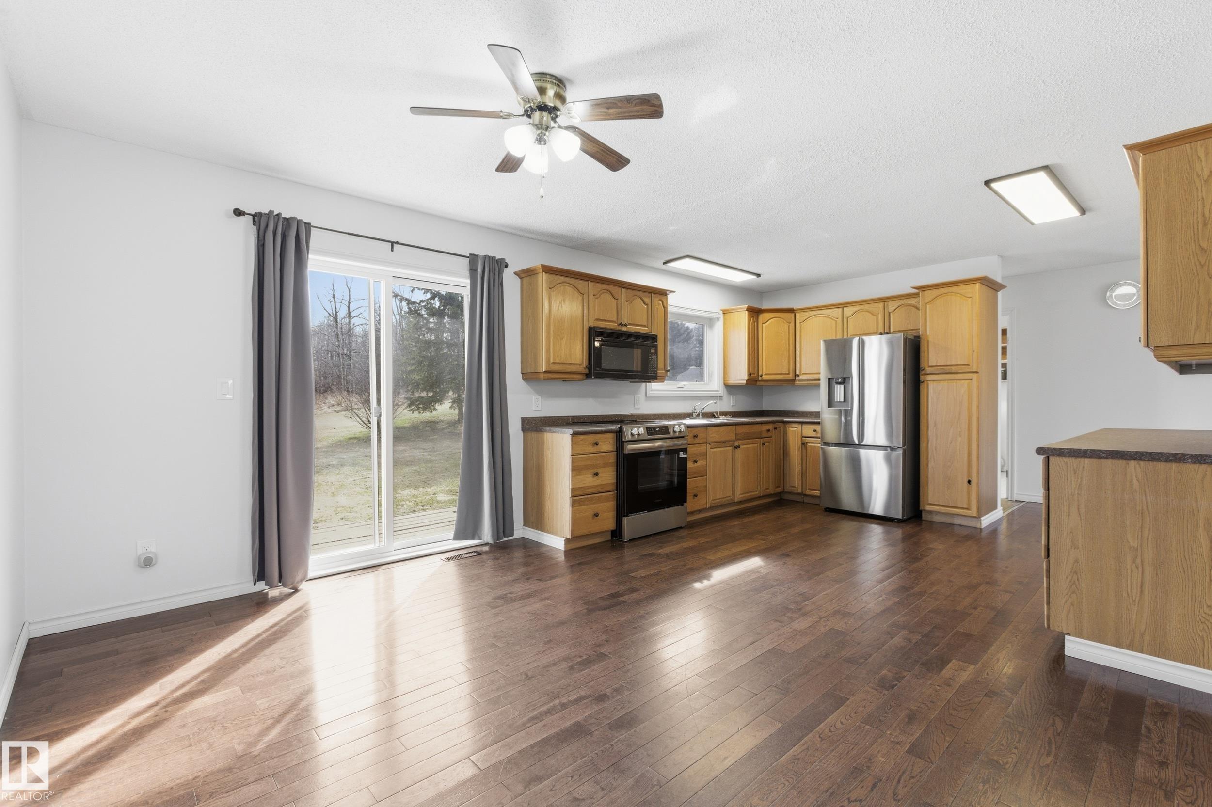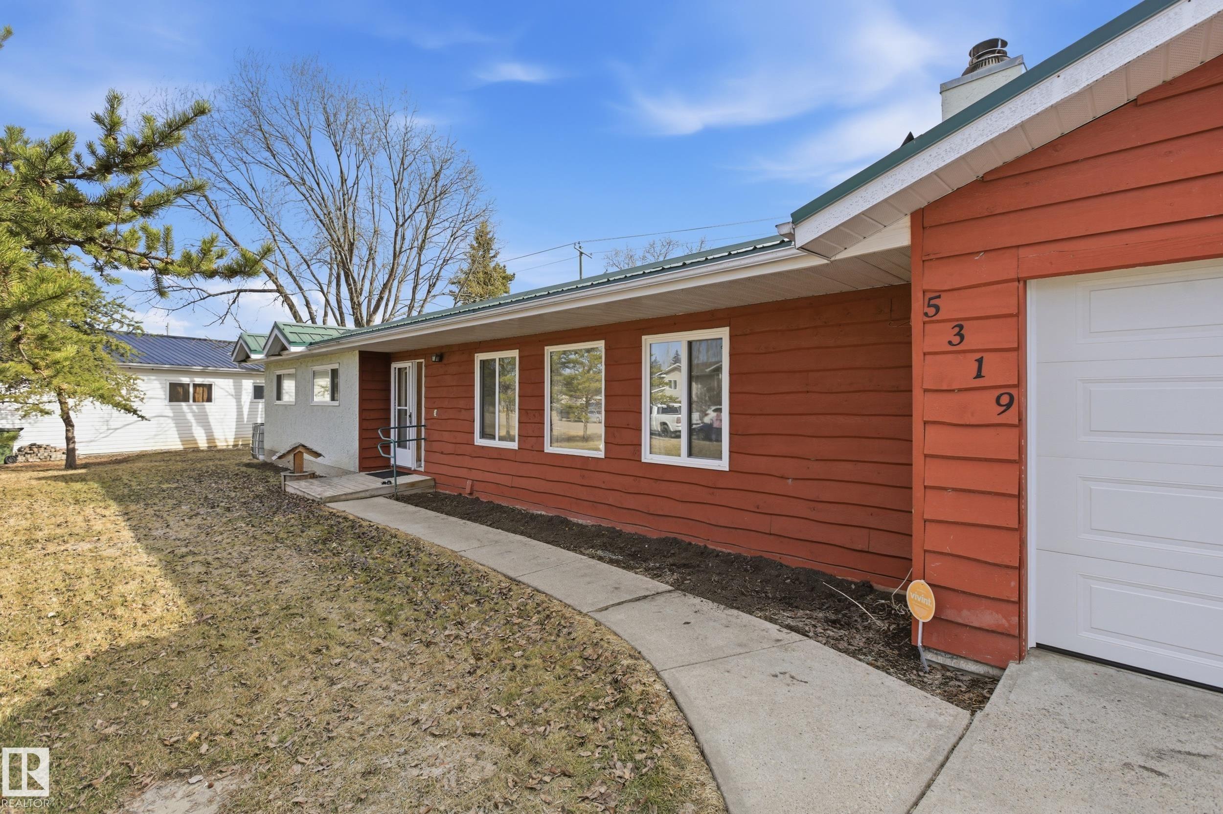 Located at the end of a quiet cul-de-sac in the peaceful community of Onoway, this well-maintained 1,500 sq. ft. bungalow offers plenty of space and comfort, along with an oversized double attached garage. Built in 1991, this 3-bedroom, 2-bathroom home has seen thoughtful updates over the years. Inside, you?re welcomed by a bright and open living room with large windows that bring in plenty of natural light, complemented by hardwood floors and a cozy woodstove. The oak kitchen includes new stainless steel appliances and connects to a bright dining area with access to the private, south-facing deck?perfect for relaxing or summer BBQs. The home has been well cared for and features triple-pane windows and a high-efficiency furnace. Set on two oversized lots, the property offers a spacious, landscaped yard with room for RV parking and lots of potential to make it your own.
