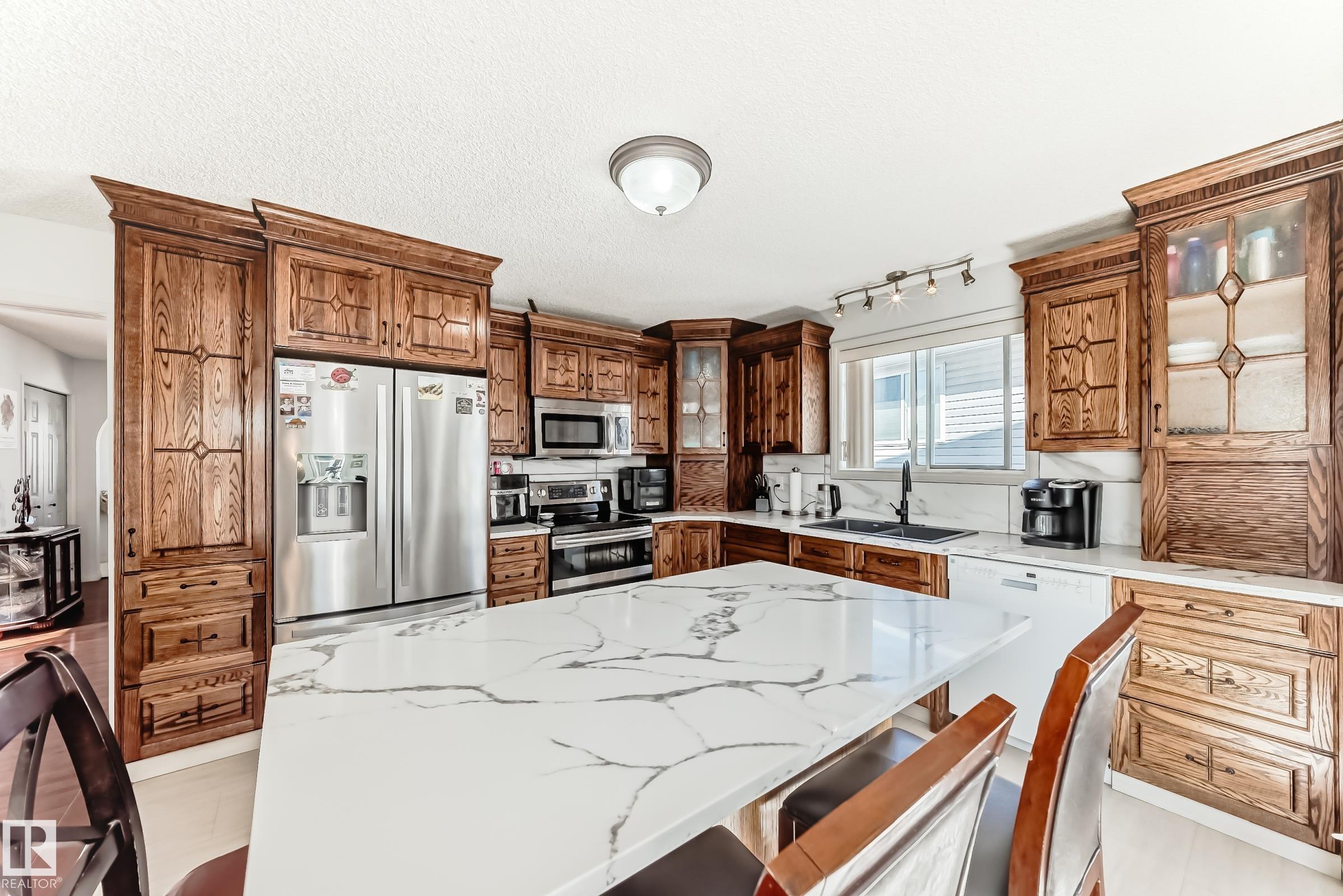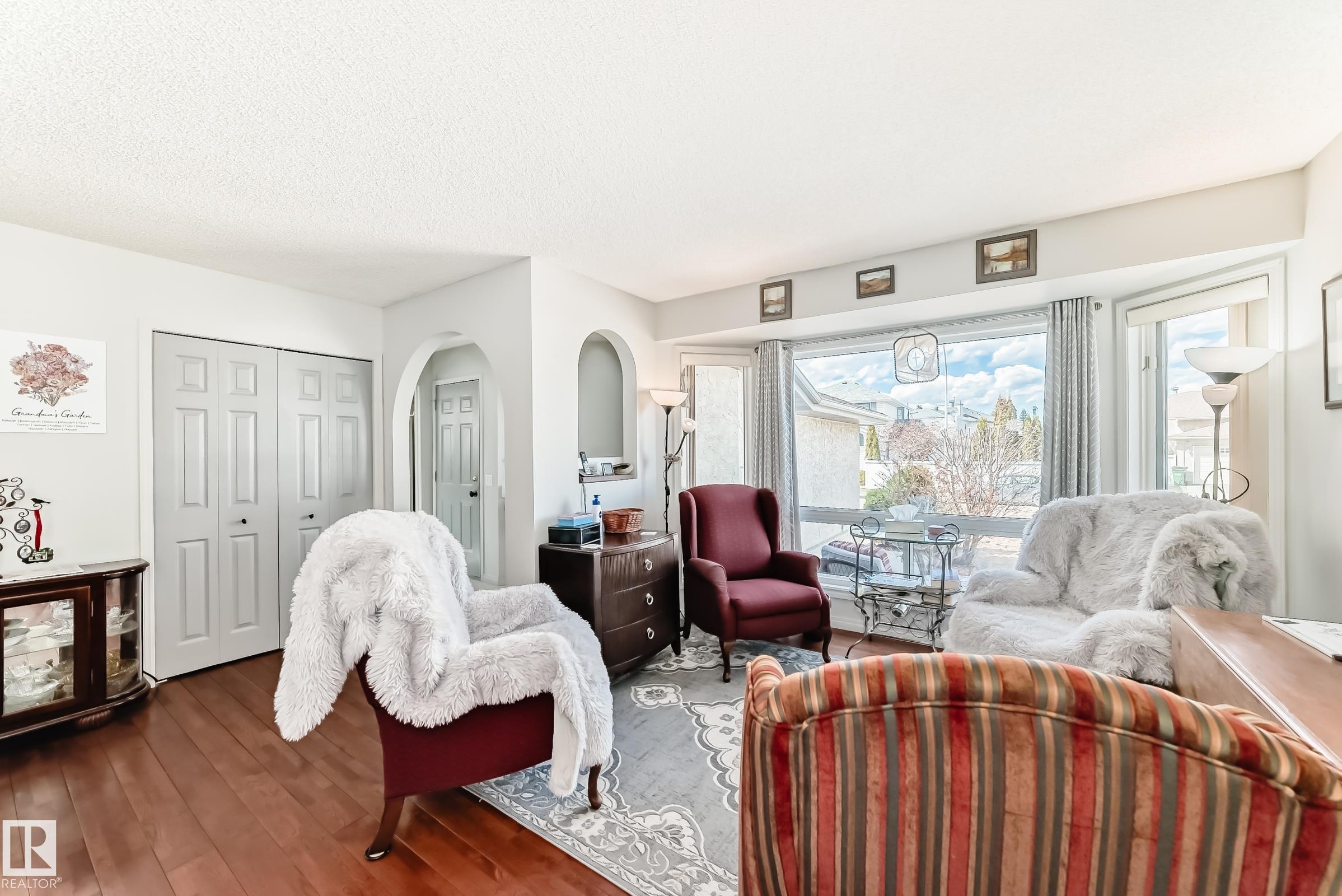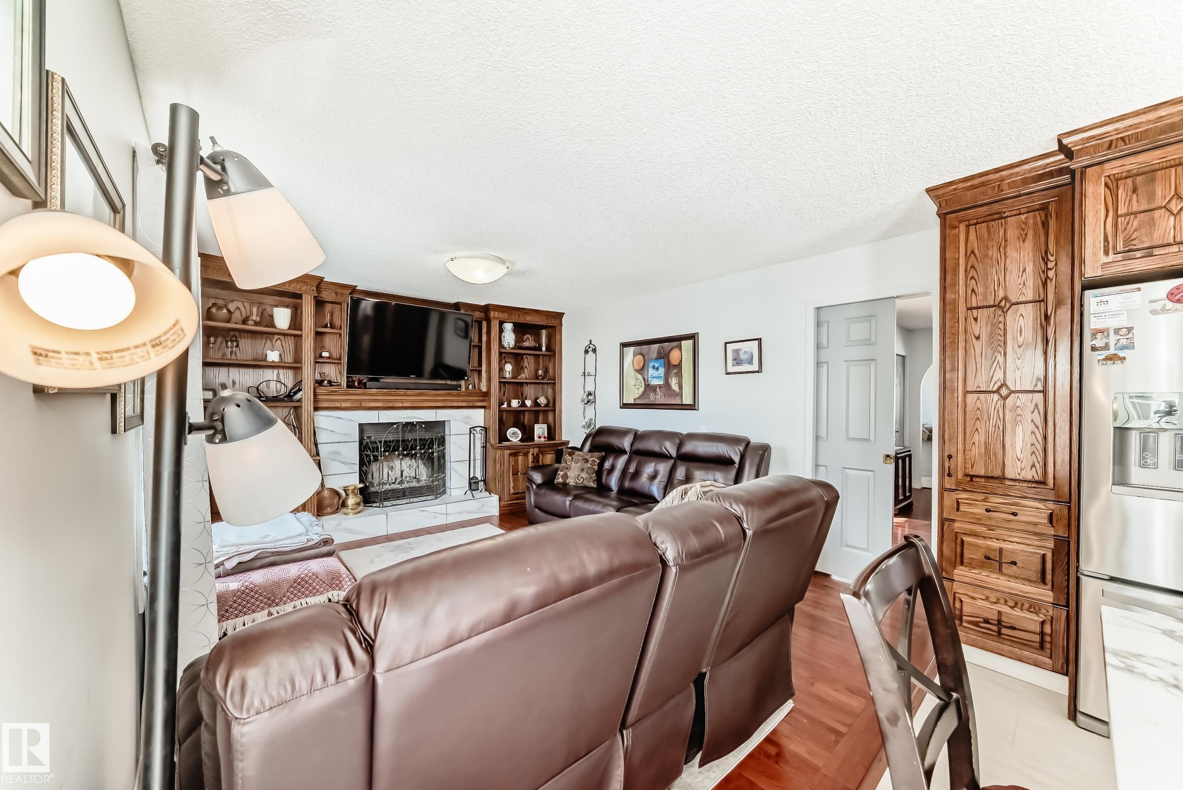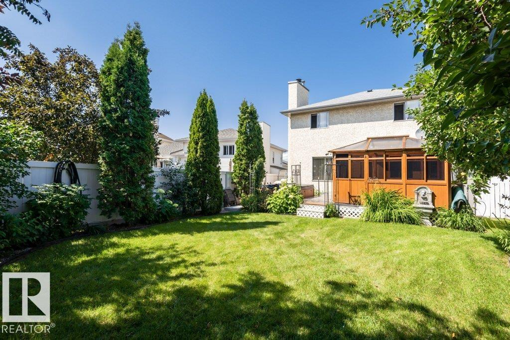 Charming 2-storey home with fully developed basement and a huge yard. This home has 3 bedrooms up and 2 in the basement. Many updates including new roof 2025, new windows in living rm, family rm, dining rm & master bdrm 2025, laundry rm cabinets 2022, New washer & Dryer 2024, Main floor & upstairs re-painted 2024, bsmt painted 2020, Quartz Counter tops & vinyl flooring in kitchen 2022, fireplace front refaced 2022, and new toilet in master bath. The kitchen cabinets have been updated in (2007) with good quality custom oak cabinets and a movable eat-up island if you choose to add a table instead. Great space for family living and entertaining with the open kitchen/family room concept. As you walk onto the deck there is a portable 3 season sun room shading you from the elements. There are also 2 sheds on the side of house (2018) for extra storage. This home is close to shopping, school, Whitemud, transit, golf and parks. A must see.