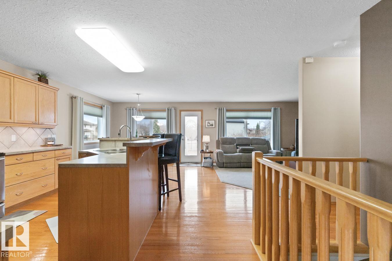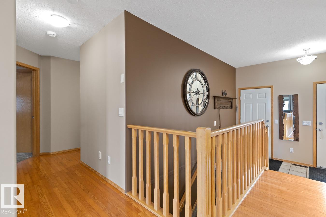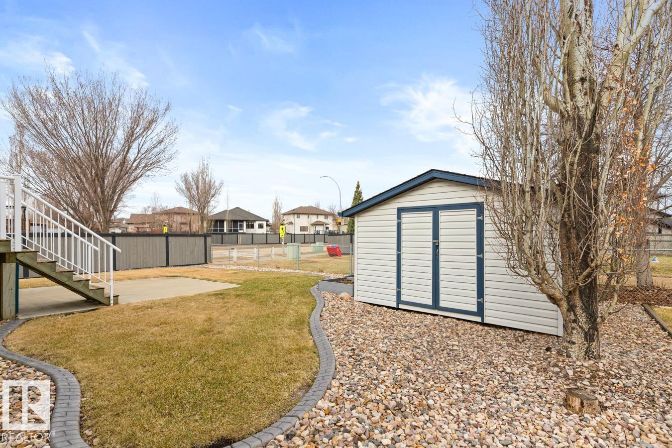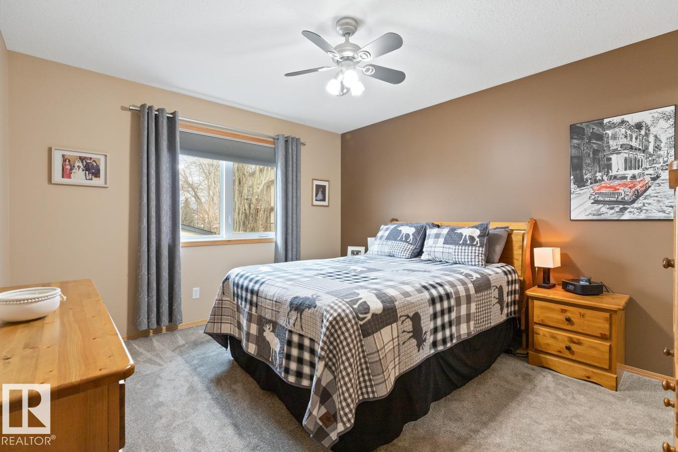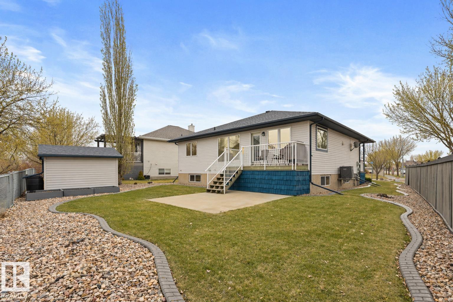 Welcome to this beautifully maintained 1220 sqft bungalow on a desirable corner lot backing a walking path just steps from a park. Offering 4 bedrooms (2 up, 2 down) and 3 bathrooms including an ensuite, this home features a bright layout with main floor laundry and numerous updates throughout. Recent upgrades include new roof (2021), hot water tank (2023), updated kitchen appliances, new carpet, fresh paint, blinds, and central A/C. The fully developed basement is perfect for entertaining with a gas fireplace and wet bar with fridge. Enjoy added comfort with deep soaker tubs, a sit-down shower, and window mirror tint for privacy. The heated 26x26 oversized garage includes radiant heat, floor drain, hot/cold water, and 220V power and even central vac. Outside features a large driveway, 12x10 shed, poured patio, and Kwik curb edging. Custom built by Jacobs Construction, this move-in ready property offers quality and location. In the desirable neighborhood in Bridgeport.