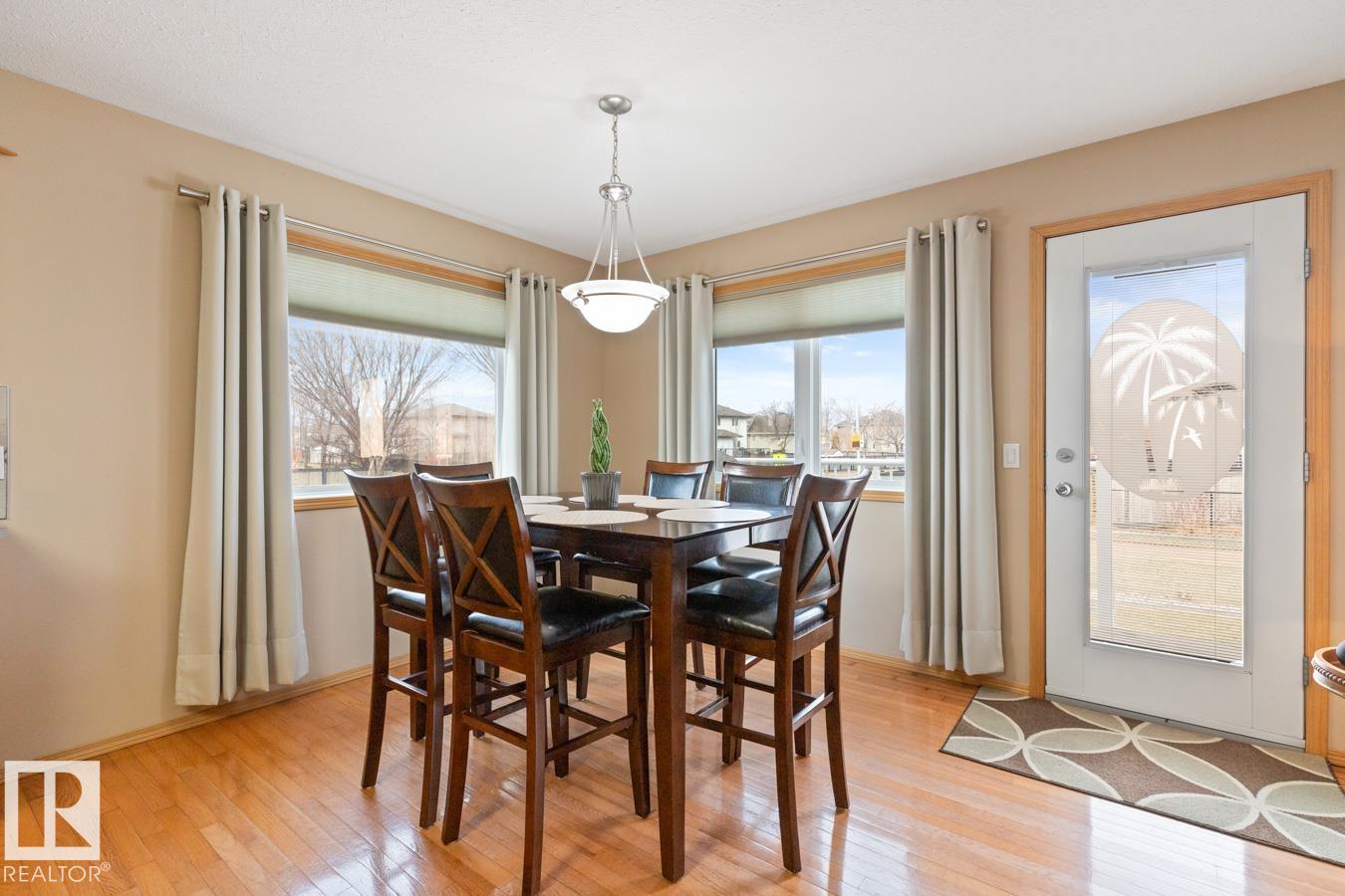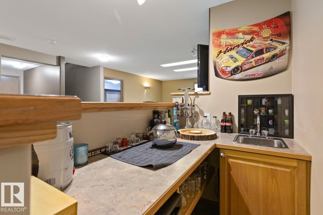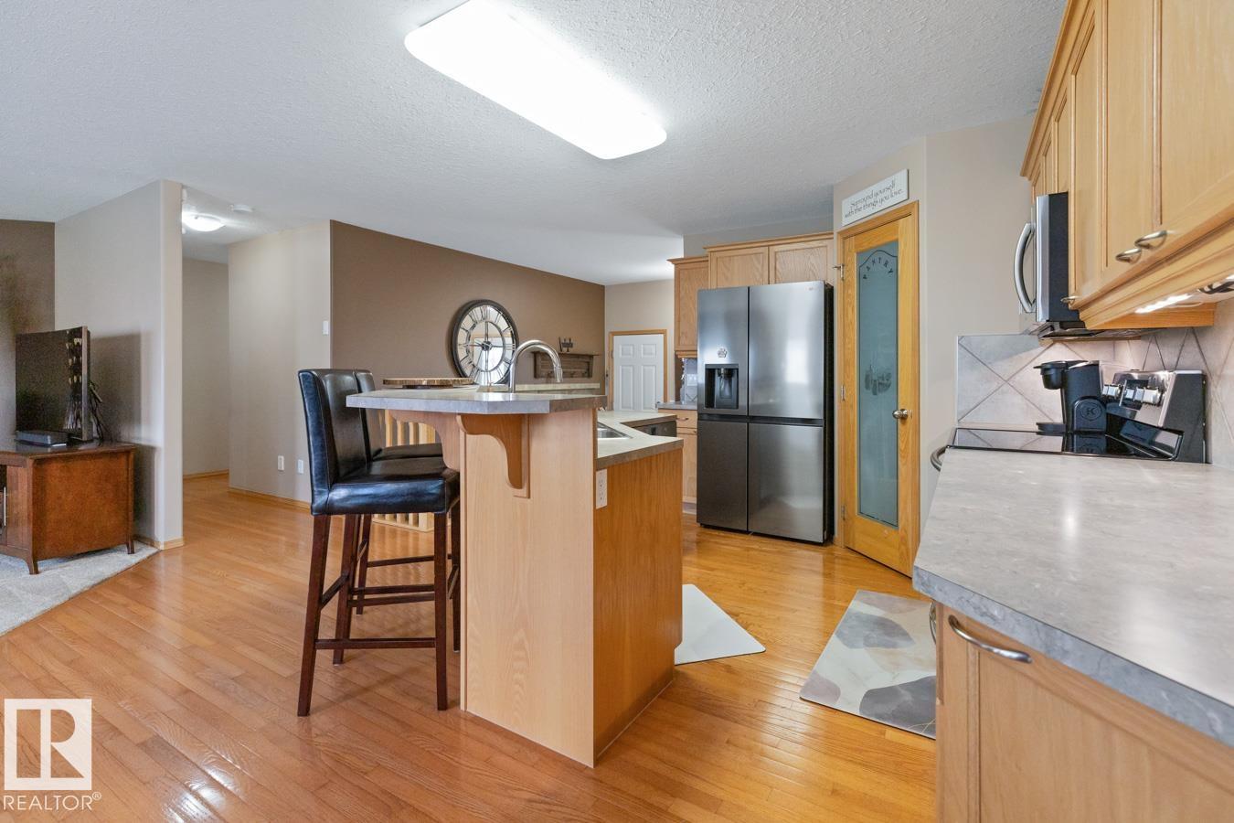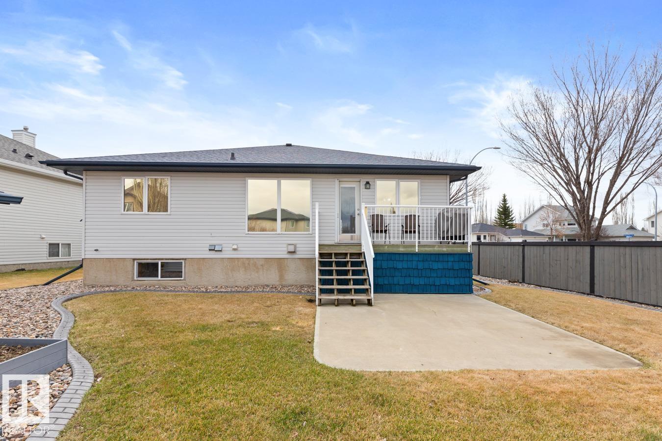 Welcome to this beautifully maintained 1220 sqft bungalow on a desirable corner lot backing a walking path just steps from a park. Offering 4 bedrooms (2 up, 2 down) and 3 bathrooms including an ensuite, this home features a bright layout with main floor laundry and numerous updates throughout. Recent upgrades include new roof (2021), hot water tank (2023), updated kitchen appliances, new carpet, fresh paint, blinds, and central A/C. The fully developed basement is perfect for entertaining with a gas fireplace and wet bar with fridge. Enjoy added comfort with deep soaker tubs, a sit-down shower, and window mirror tint for privacy. The heated 26x26 oversized garage includes radiant heat, floor drain, hot/cold water, and 220V power and even central vac. Outside features a large driveway, 12x10 shed, poured patio, and Kwik curb edging. Custom built by Jacobs Construction, this move-in ready property offers quality and location. In the desirable neighborhood in Bridgeport.