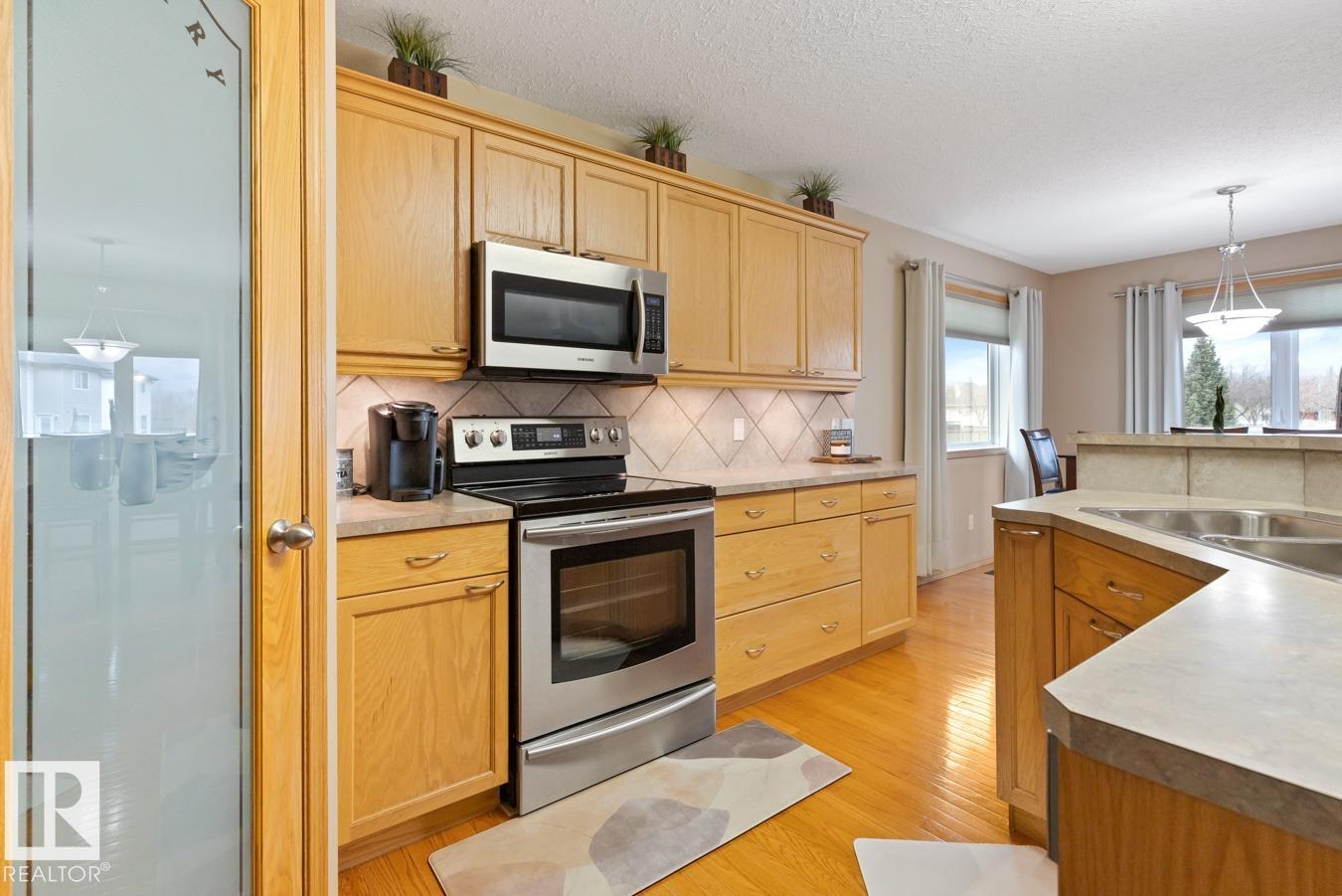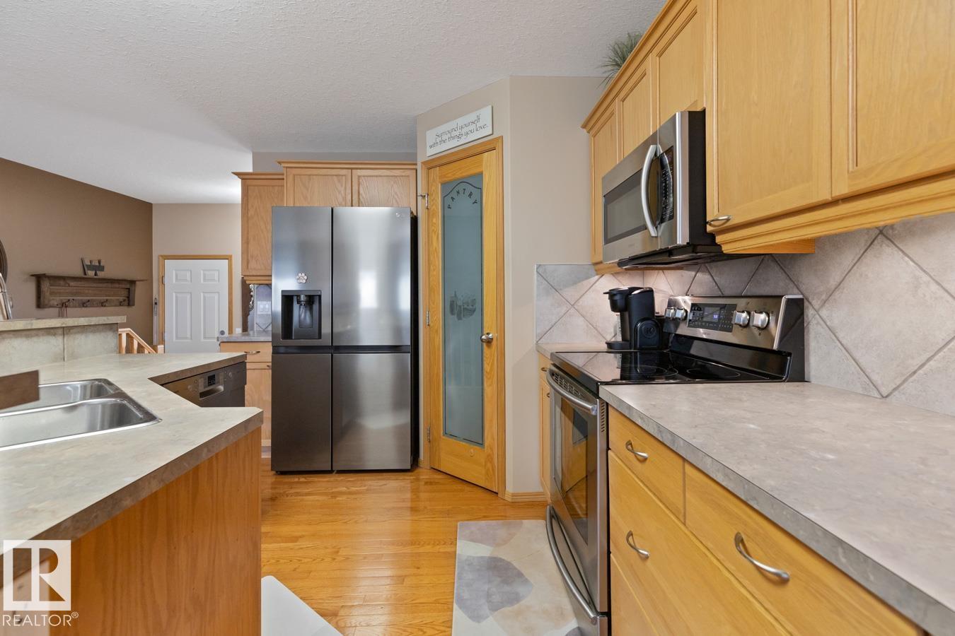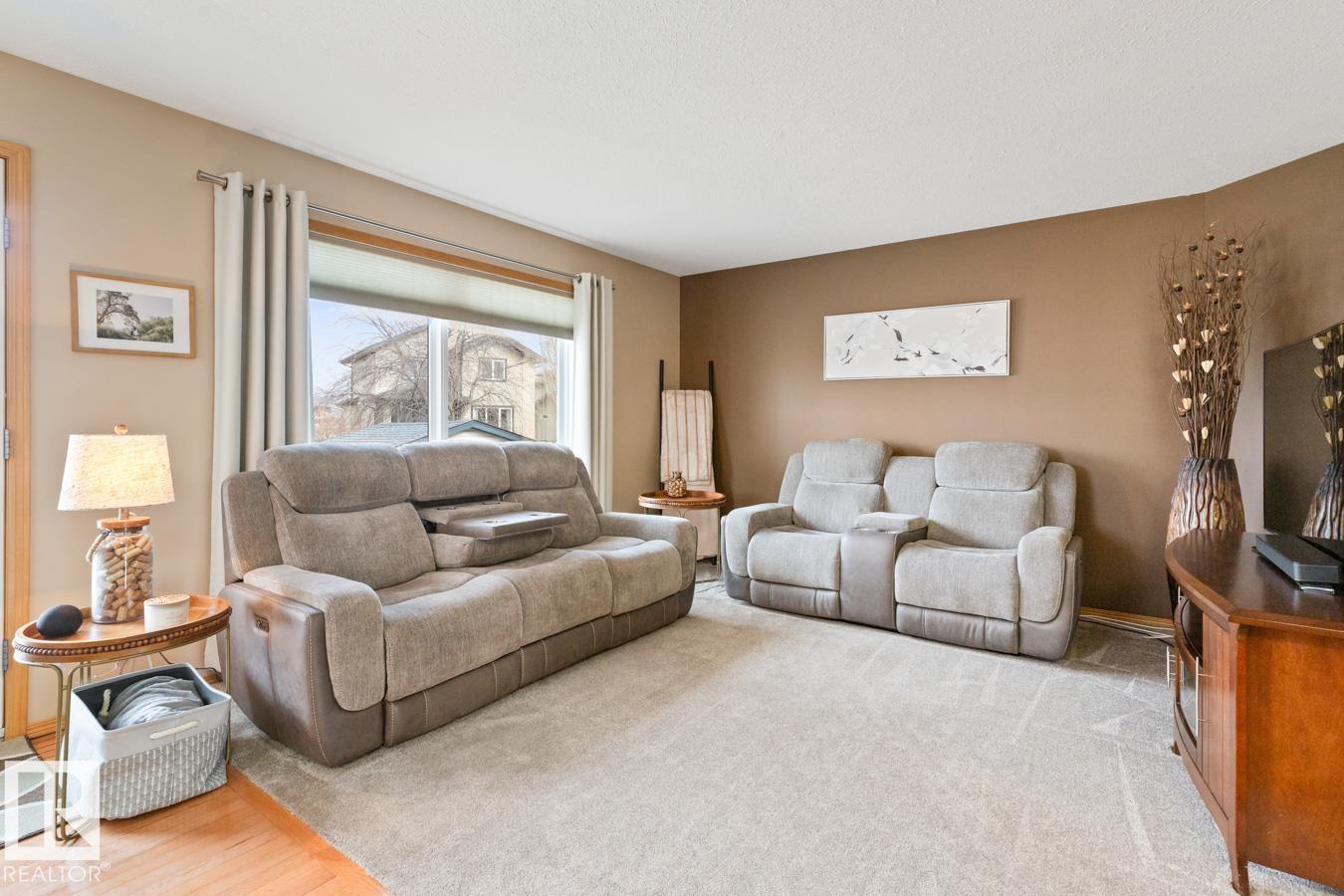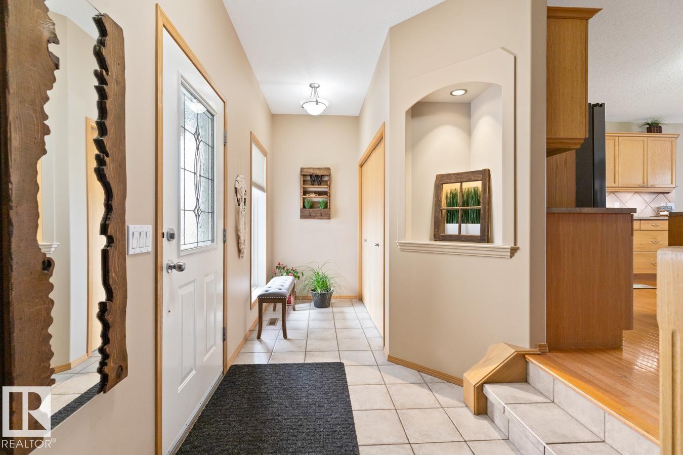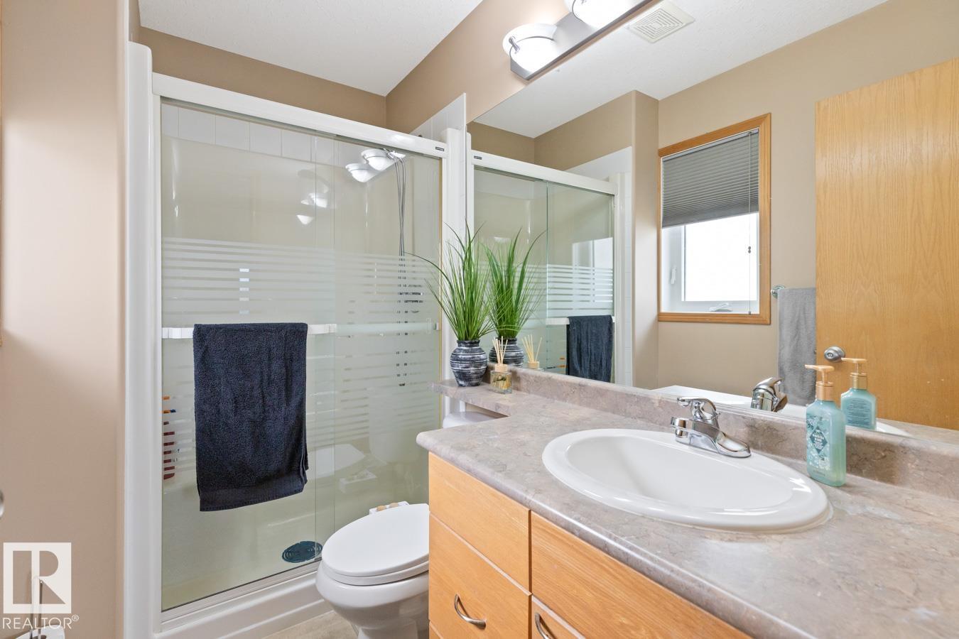 Welcome to this beautifully maintained 1220 sqft bungalow on a desirable corner lot backing a walking path just steps from a park. Offering 4 bedrooms (2 up, 2 down) and 3 bathrooms including an ensuite, this home features a bright layout with main floor laundry and numerous updates throughout. Recent upgrades include new roof (2021), hot water tank (2023), updated kitchen appliances, new carpet, fresh paint, blinds, and central A/C. The fully developed basement is perfect for entertaining with a gas fireplace and wet bar with fridge. Enjoy added comfort with deep soaker tubs, a sit-down shower, and window mirror tint for privacy. The heated 26x26 oversized garage includes radiant heat, floor drain, hot/cold water, and 220V power and even central vac. Outside features a large driveway, 12x10 shed, poured patio, and Kwik curb edging. Custom built by Jacobs Construction, this move-in ready property offers quality and location. In the desirable neighborhood in Bridgeport.