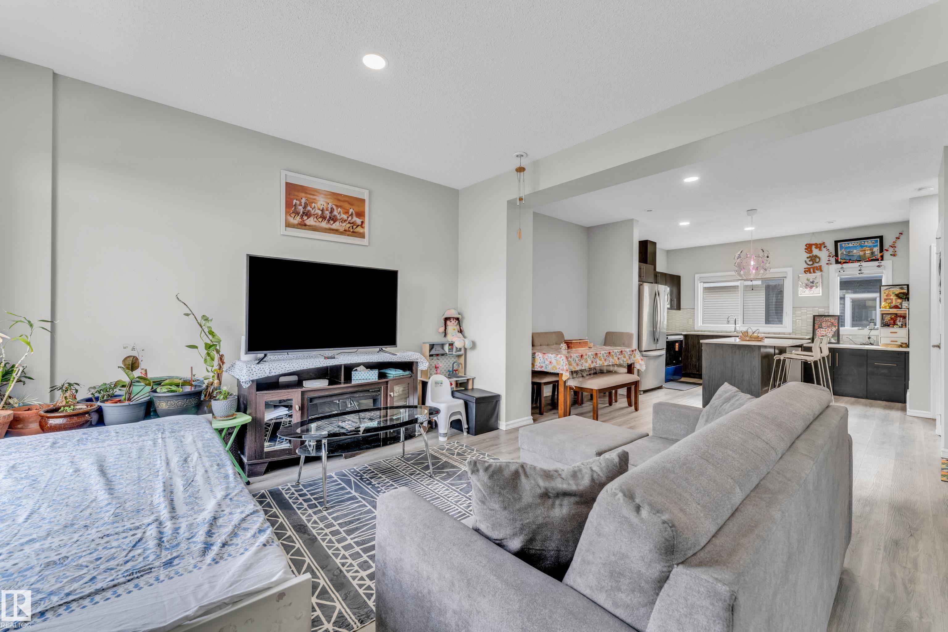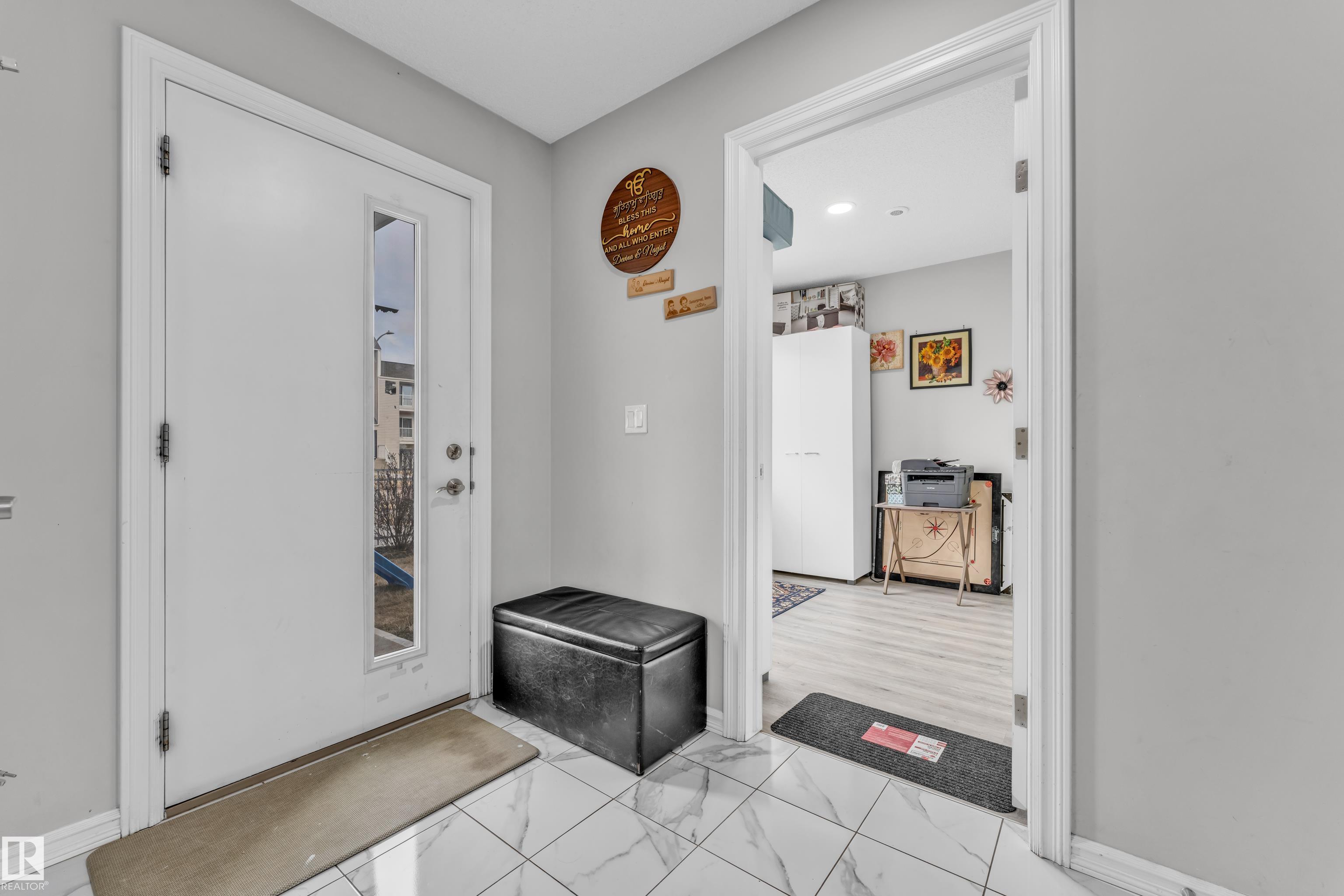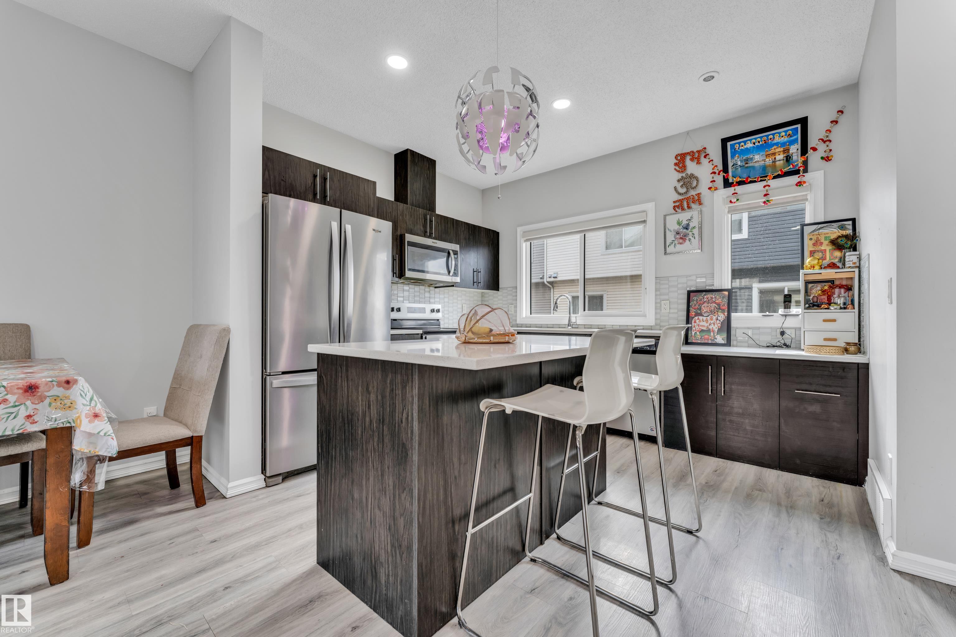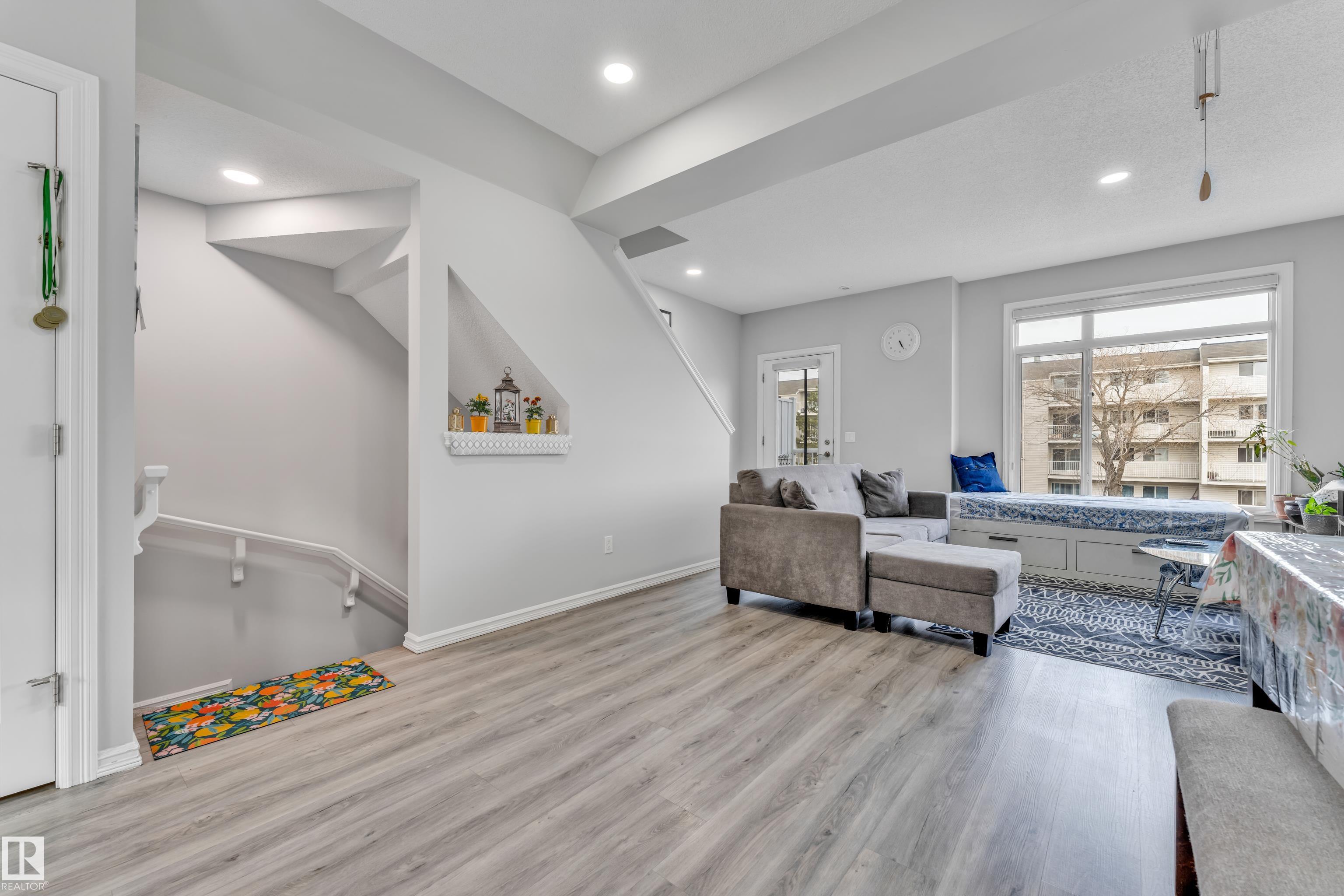 Welcome to this beautifully upgraded 3-storey townhouse built by Landmark Homes in desirable Blue Quill offering 1465 sq ft of living space. This move-in ready home features 3 Bedrooms, 2.5 Bathrooms with modern vinyl plank flooring throughout with no carpet, creating a clean and contemporary feel. The kitchen is fully upgraded with quartz countertops, stainless steel appliances, a brand new cooktop, garburator, and an L-shaped layout with built-in desk. Bathrooms include quartz countertops, undermount sinks, and an upgraded shower. Upstairs offers 3 spacious bedrooms plus a fully finished flex room, perfect for a home office, gym, or additional living space. Additional upgrades include a WIFI-enabled garage door opener for convenient smartphone control. Located just a 5?7 minute walk to Century Park LRT and transit center, with easy access to 112 Street, schools, Public Park, shopping, and major routes. Low condo fees add to the overall value. Must see property.