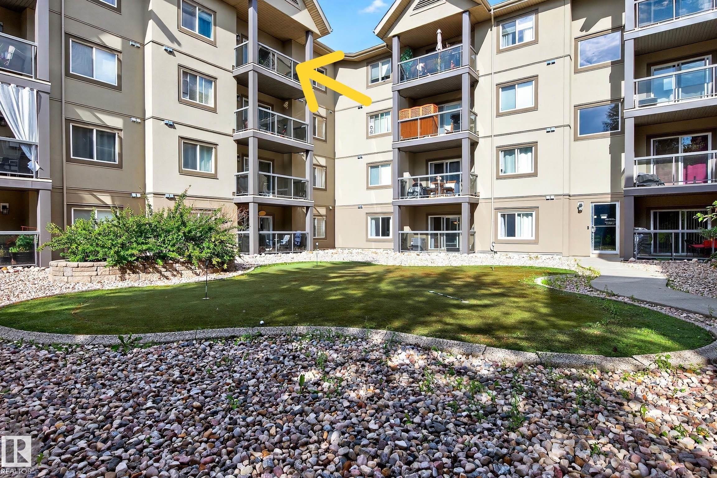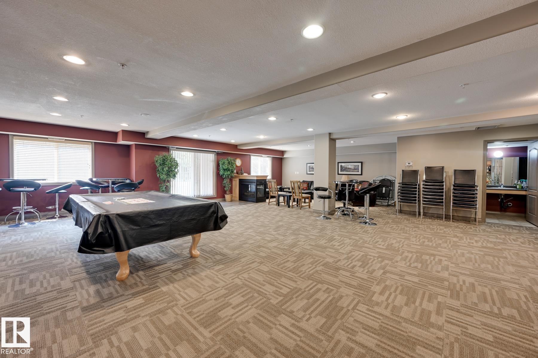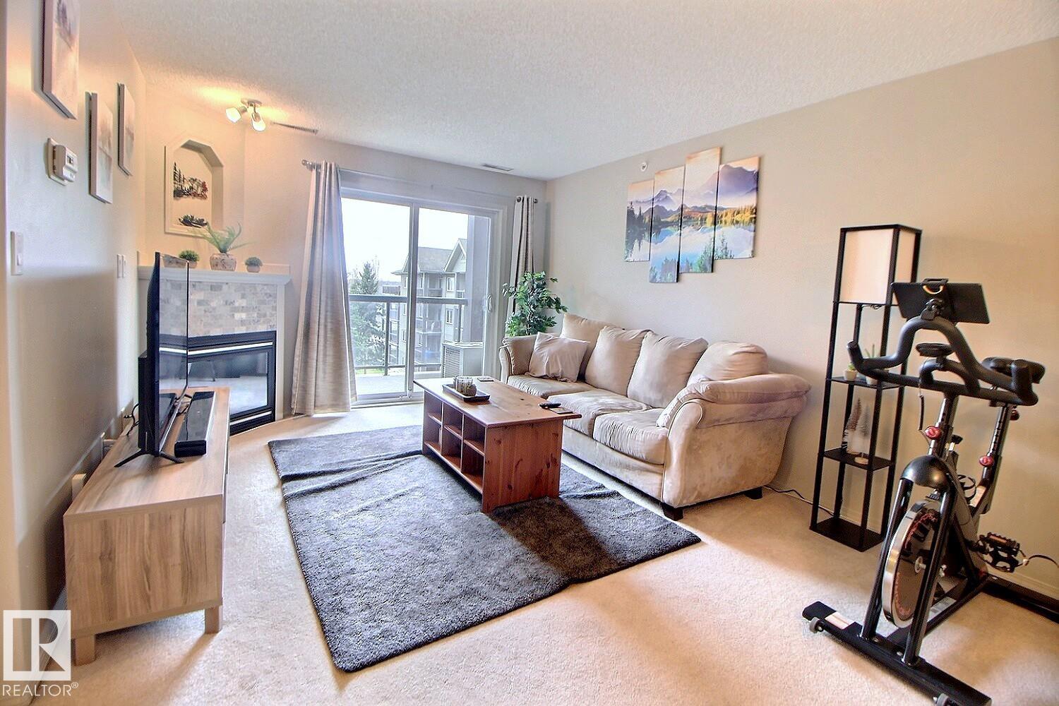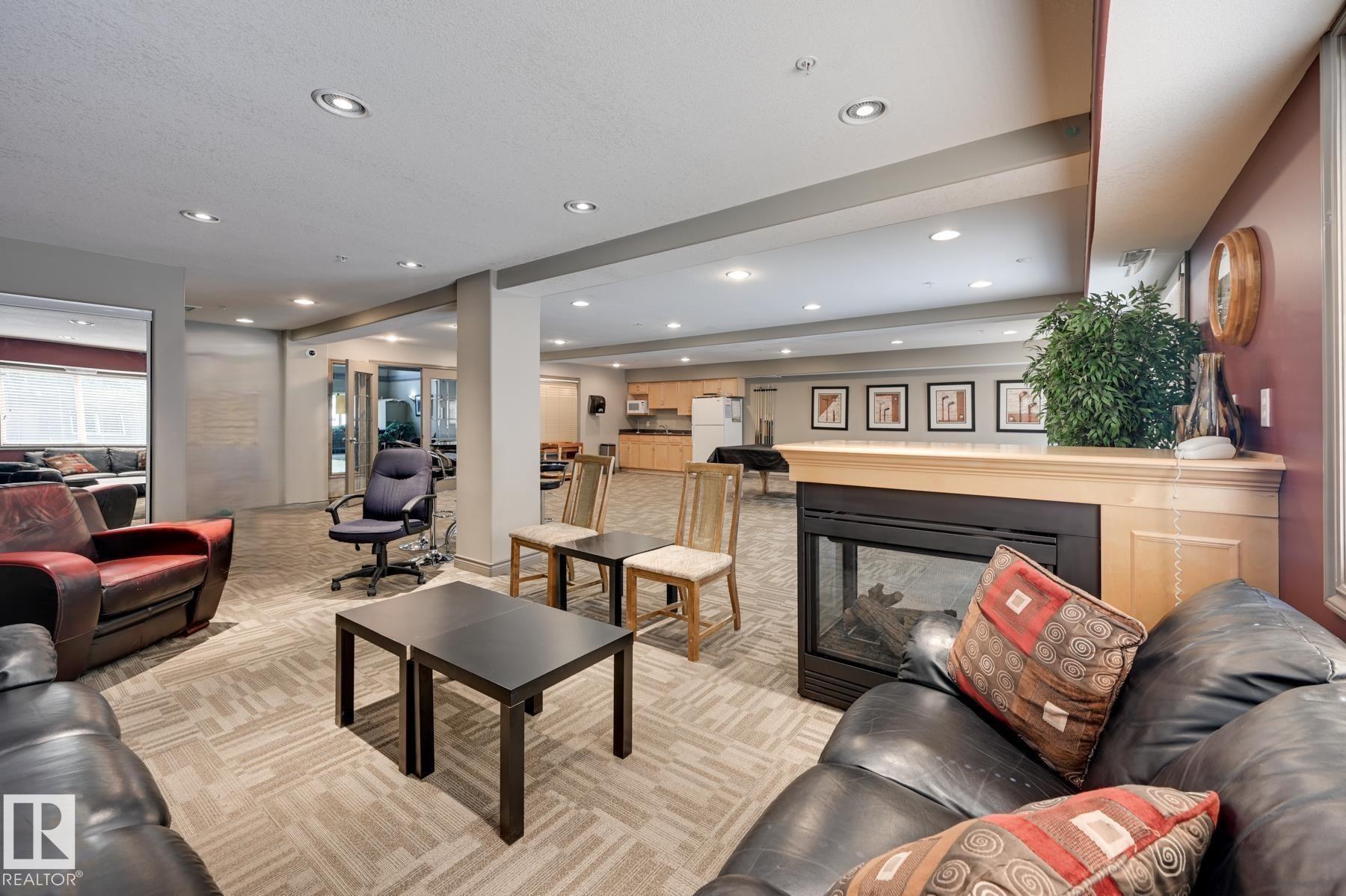 Welcome to Lewis Estates Grande! Beautiful top-floor condo with an excellent layout featuring a spacious living and dining area. Recent upgrades include a fully renovated bathroom with new tub, toilet, flooring and tile surround, plus fresh paint throughout. Enjoy central A/C, a cozy gas fireplace, in-suite laundry, and a generous private deck with BBQ gas line. This well-maintained complex offers great amenities including a gym, library, putting green, party room, guest suite, and underground parking with storage. The titled parking stall is included. Quietly located next to Lewis Estates Golf Course with easy access to walking trails, shopping, transit and Whitemud Freeway.