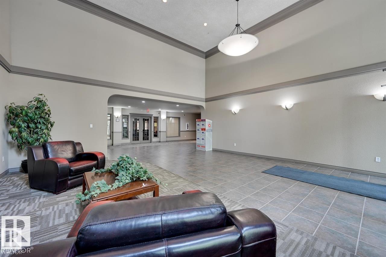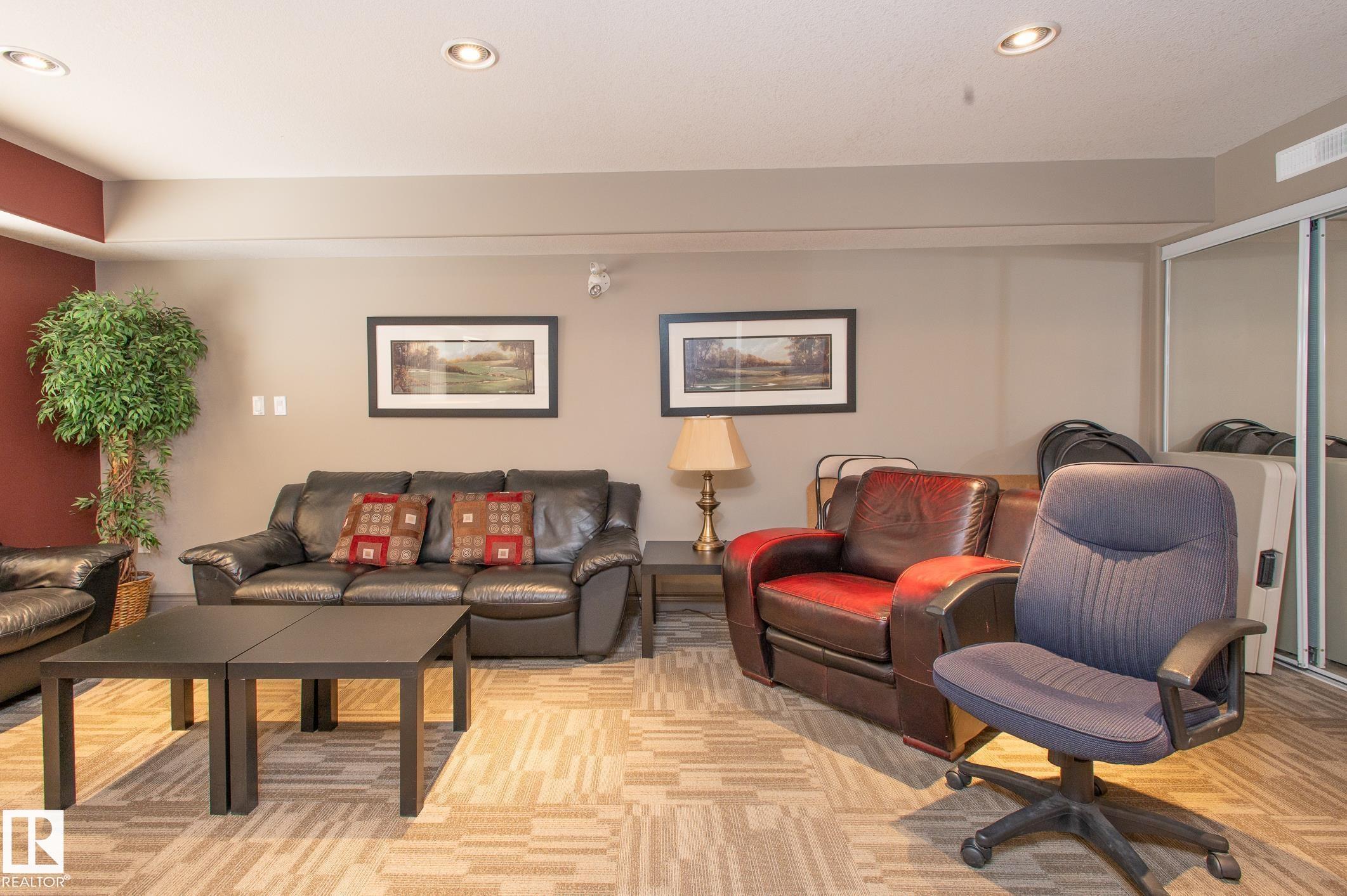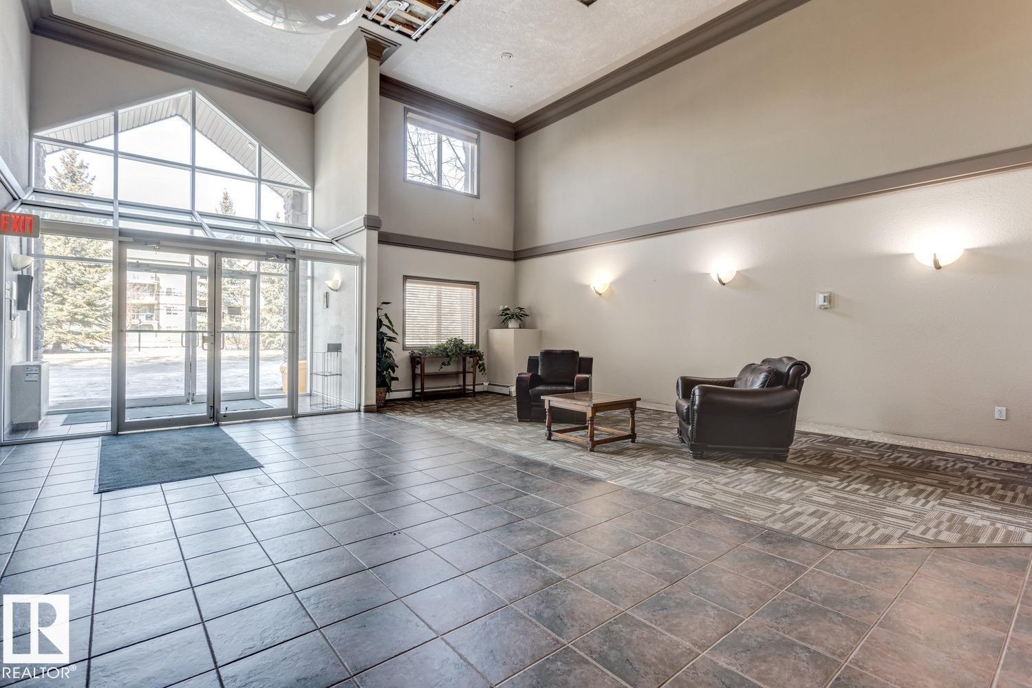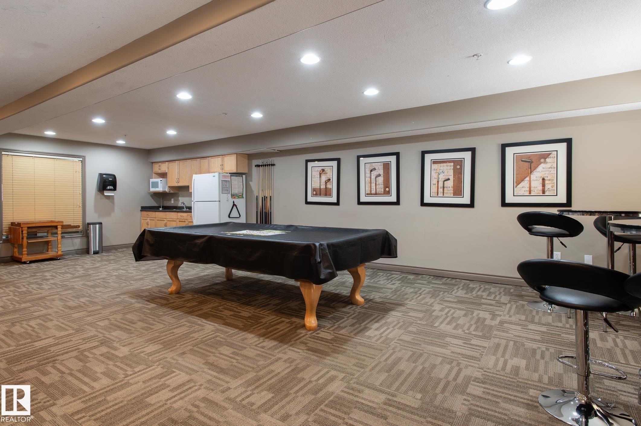 Welcome to Lewis Estates Grande! Beautiful top-floor condo with an excellent layout featuring a spacious living and dining area. Recent upgrades include a fully renovated bathroom with new tub, toilet, flooring and tile surround, plus fresh paint throughout. Enjoy central A/C, a cozy gas fireplace, in-suite laundry, and a generous private deck with BBQ gas line. This well-maintained complex offers great amenities including a gym, library, putting green, party room, guest suite, and underground parking with storage. The titled parking stall is included. Quietly located next to Lewis Estates Golf Course with easy access to walking trails, shopping, transit and Whitemud Freeway.