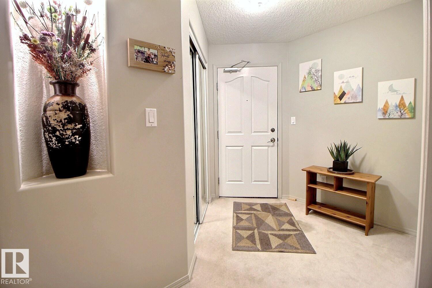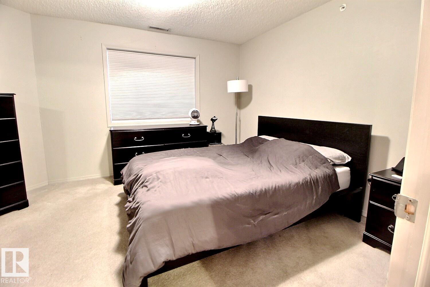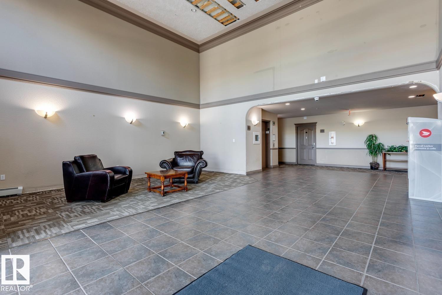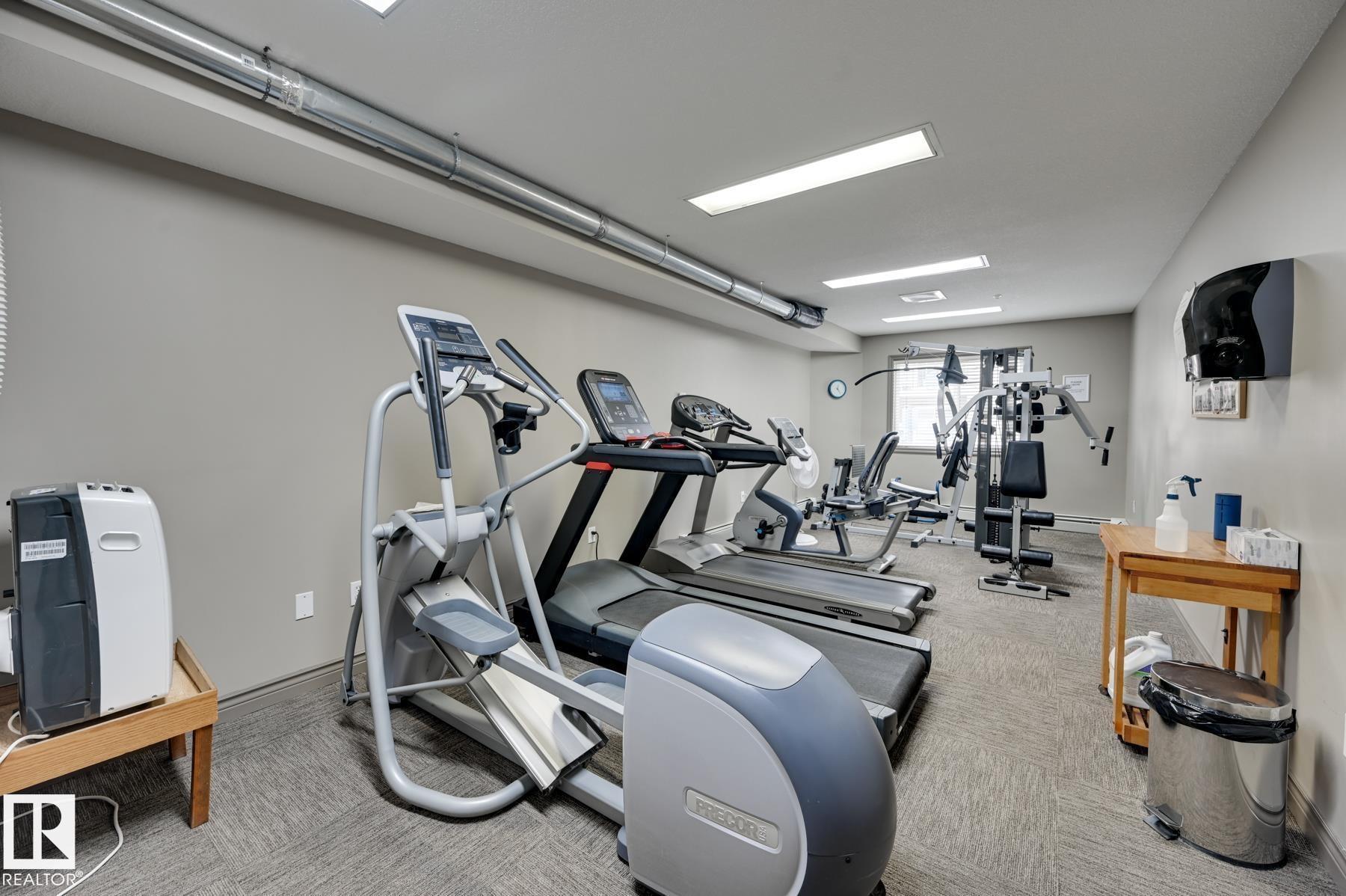 Welcome to Lewis Estates Grande! Beautiful top-floor condo with an excellent layout featuring a spacious living and dining area. Recent upgrades include a fully renovated bathroom with new tub, toilet, flooring and tile surround, plus fresh paint throughout. Enjoy central A/C, a cozy gas fireplace, in-suite laundry, and a generous private deck with BBQ gas line. This well-maintained complex offers great amenities including a gym, library, putting green, party room, guest suite, and underground parking with storage. The titled parking stall is included. Quietly located next to Lewis Estates Golf Course with easy access to walking trails, shopping, transit and Whitemud Freeway.