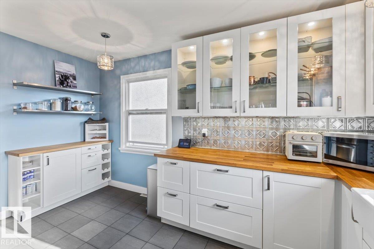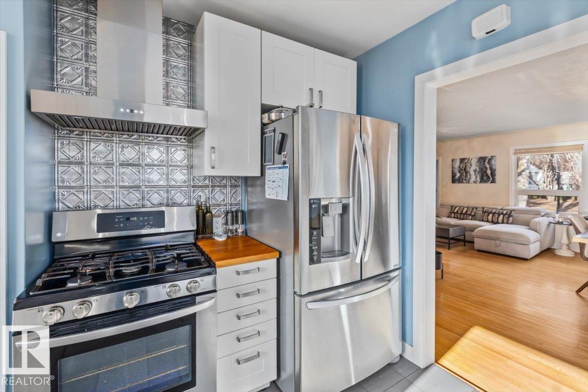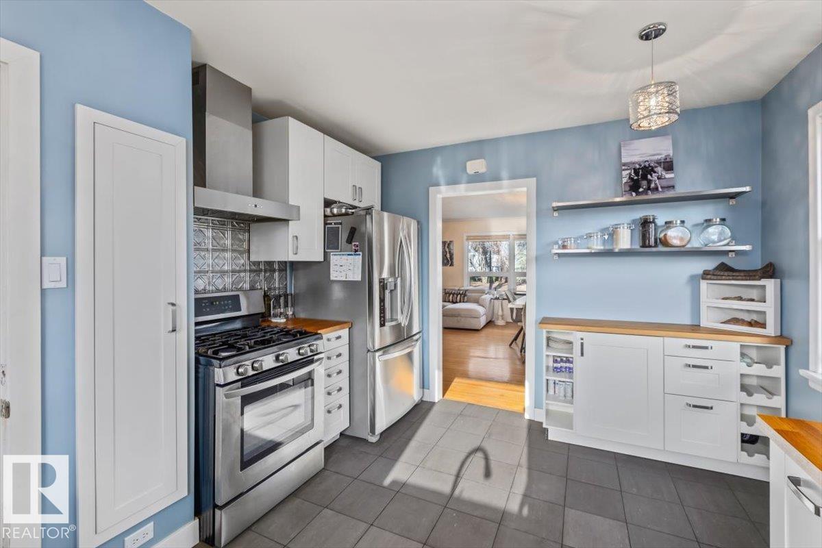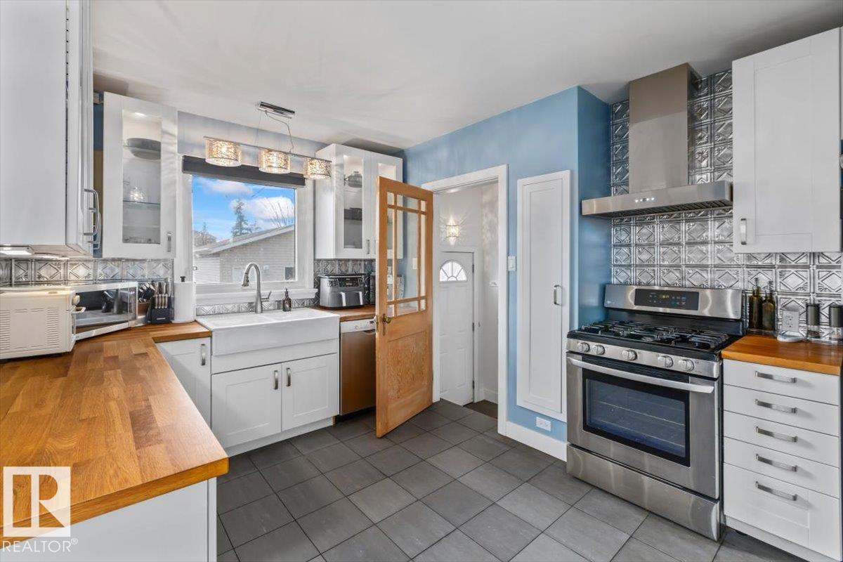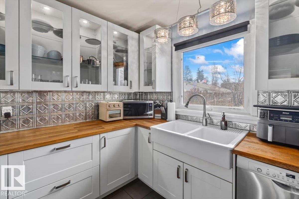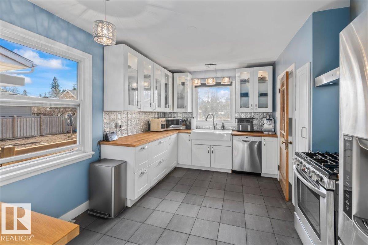 Stylish living and flexibility come together in this North Glenora bungalow, ideally located in one of west Edmonton?s most sought after neighbourhoods. This 5 bedroom 2 bathroom home features a bright main level with original hardwood floors and an open living space filled with natural light. The farmhouse inspired kitchen stands out with butcher block counters, a farmhouse sink and a premium gas range. Three bedrooms and an updated full bath complete the main floor. A separate entry leads to the fully finished lower level with its own kitchen, living area, 2 bedrooms, a modern bath and a custom wine display room, offering excellent flexibility for extended family or future potential. Enjoy central A/C, a large backyard deck, raised garden beds and newer fencing. The NEWLY BUILT OVERSIZED DOUBLE GARAGE measures 25ft by 22.5 ft, providing exceptional space for parking and storage. Close to downtown Edmonton, schools, parks and the river valley, this is a rare opportunity in North Glenora.
