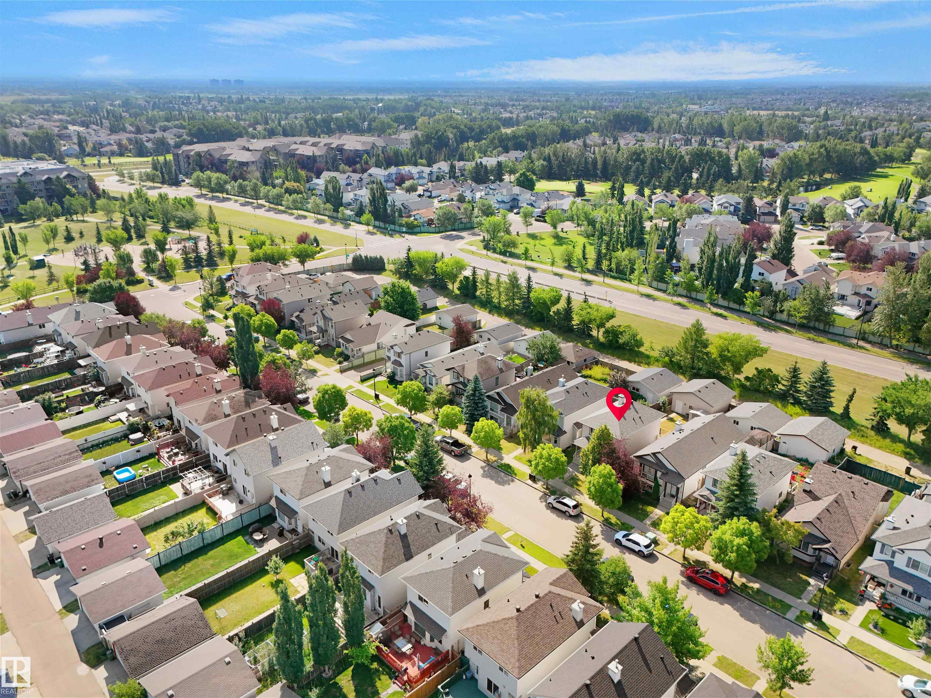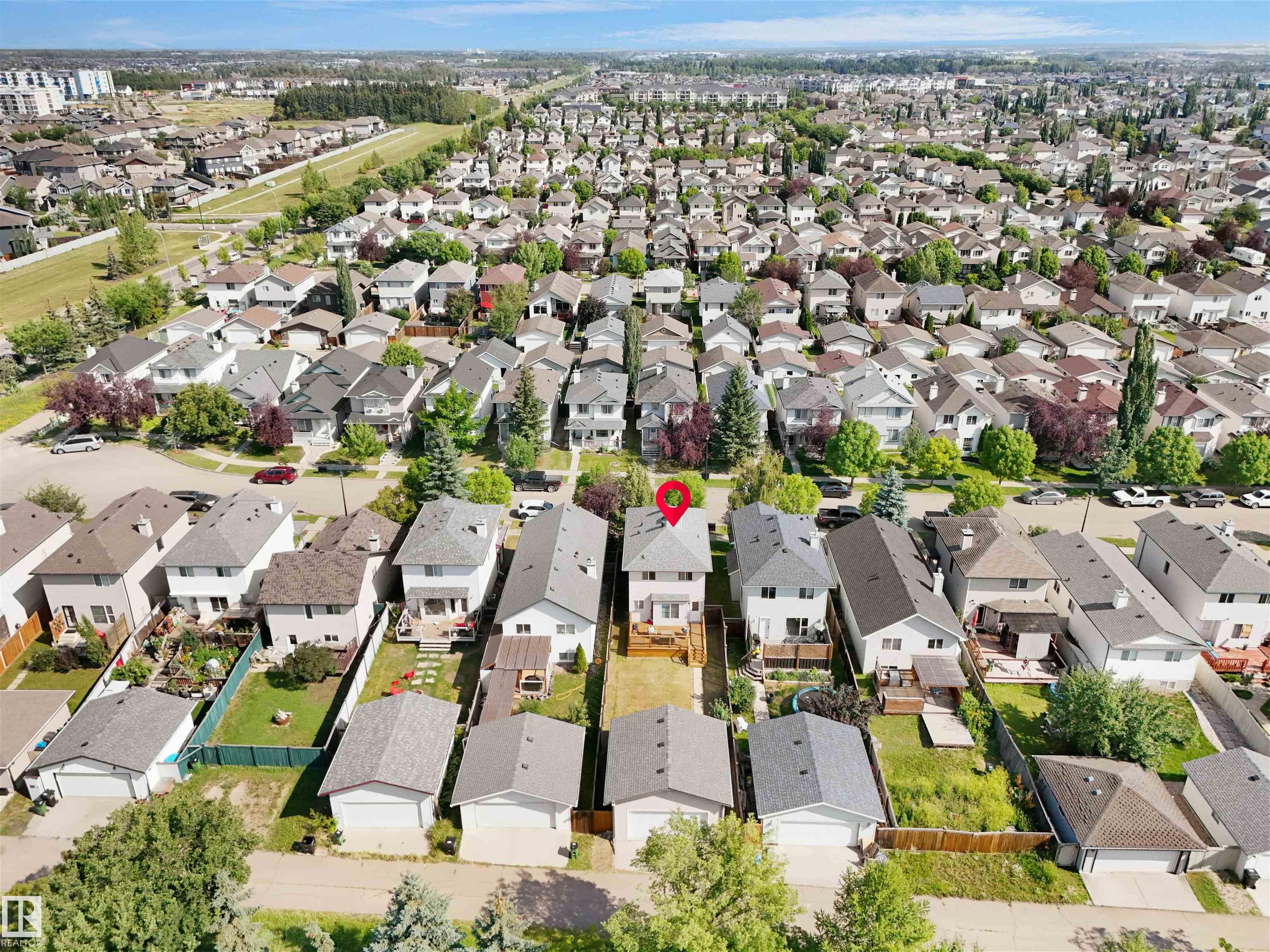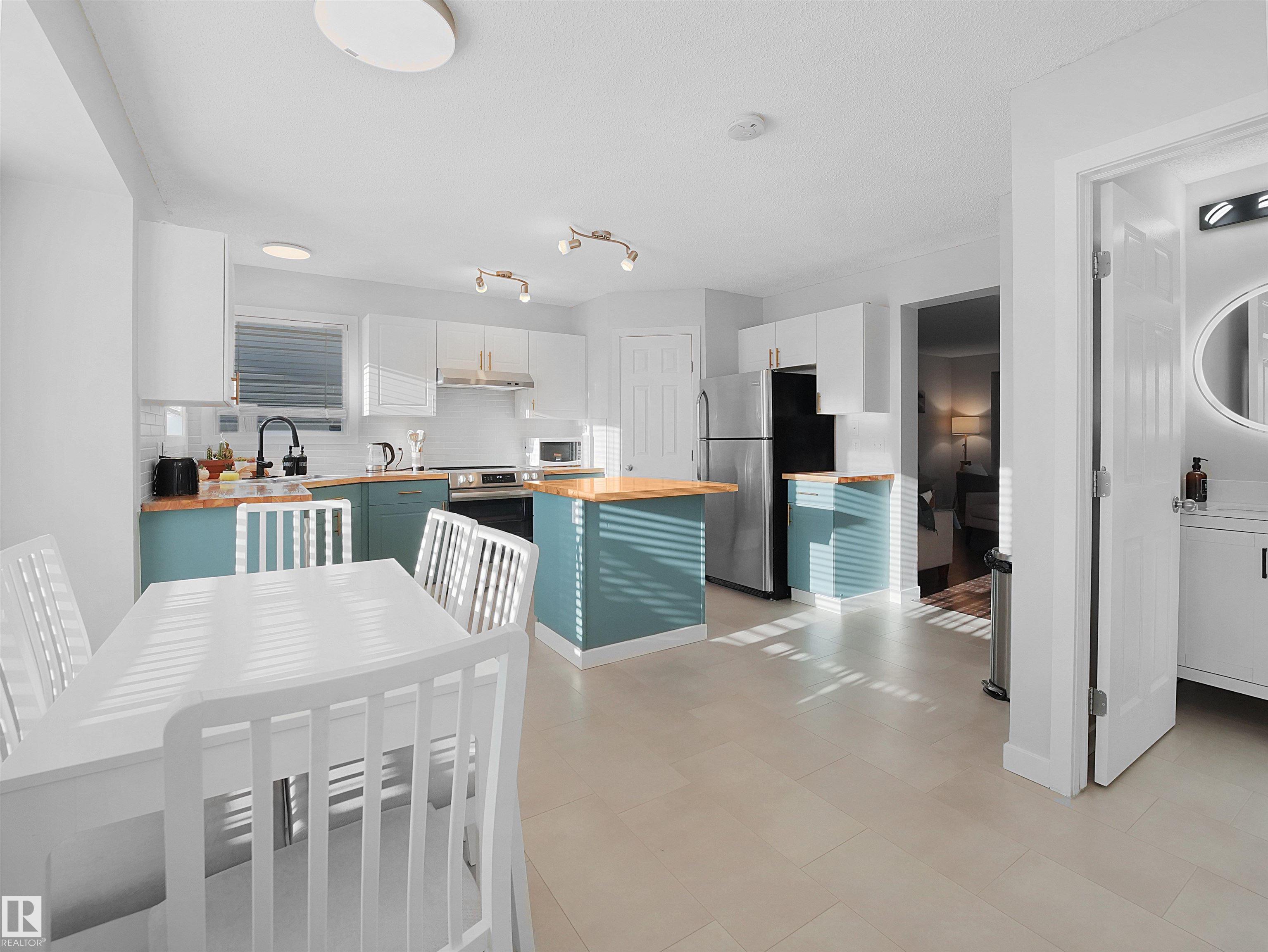 Welcome to Suder Greens?perfect for buyers seeking a quiet, established location with everyday convenience. Tucked into a cul-de-sac, this updated 2-storey offers 1,351 sq ft of move-in ready living.Freshly painted throughout (Fall 2023), including the kitchen, with new baseboards and a newer roof (2021), key updates are already done. The refreshed kitchen features a new stove, hood fan, and updated finishes, opening into a bright dining area with oversized windows that fill the space with natural light. New flooring in the kitchen, bathrooms, and front entry adds a clean, modern, low-maintenance feel.Upstairs offers 3 well-sized bedrooms and a full 4-piece bath.Enjoy a south-facing backyard backing onto a greenbelt?rare privacy in this price range?with a large patio for summer use. Oversized, extra-height garage.Walk to parks, golf, and schools. Quick access to West Edmonton Mall and Anthony Henday Drive.