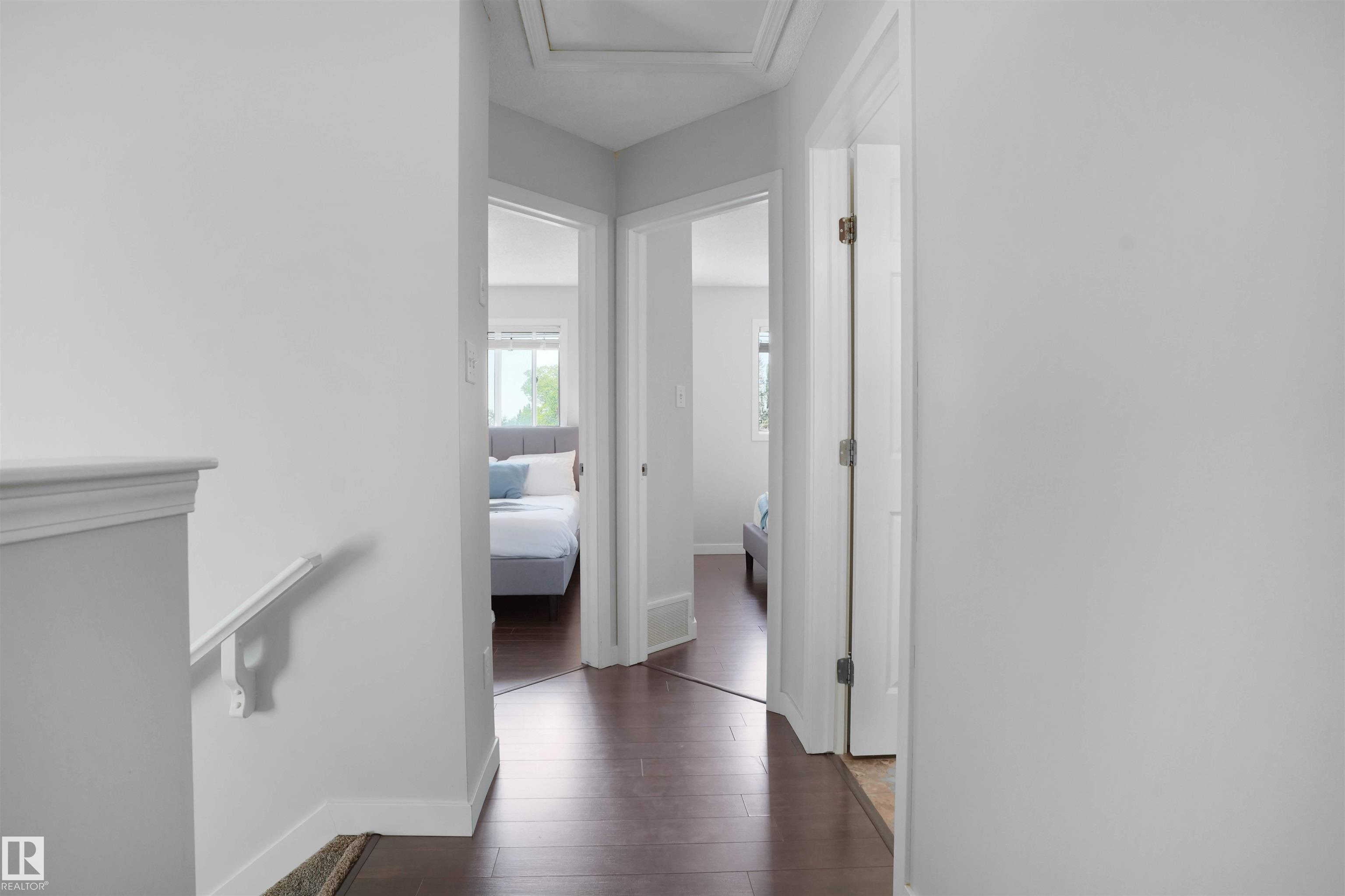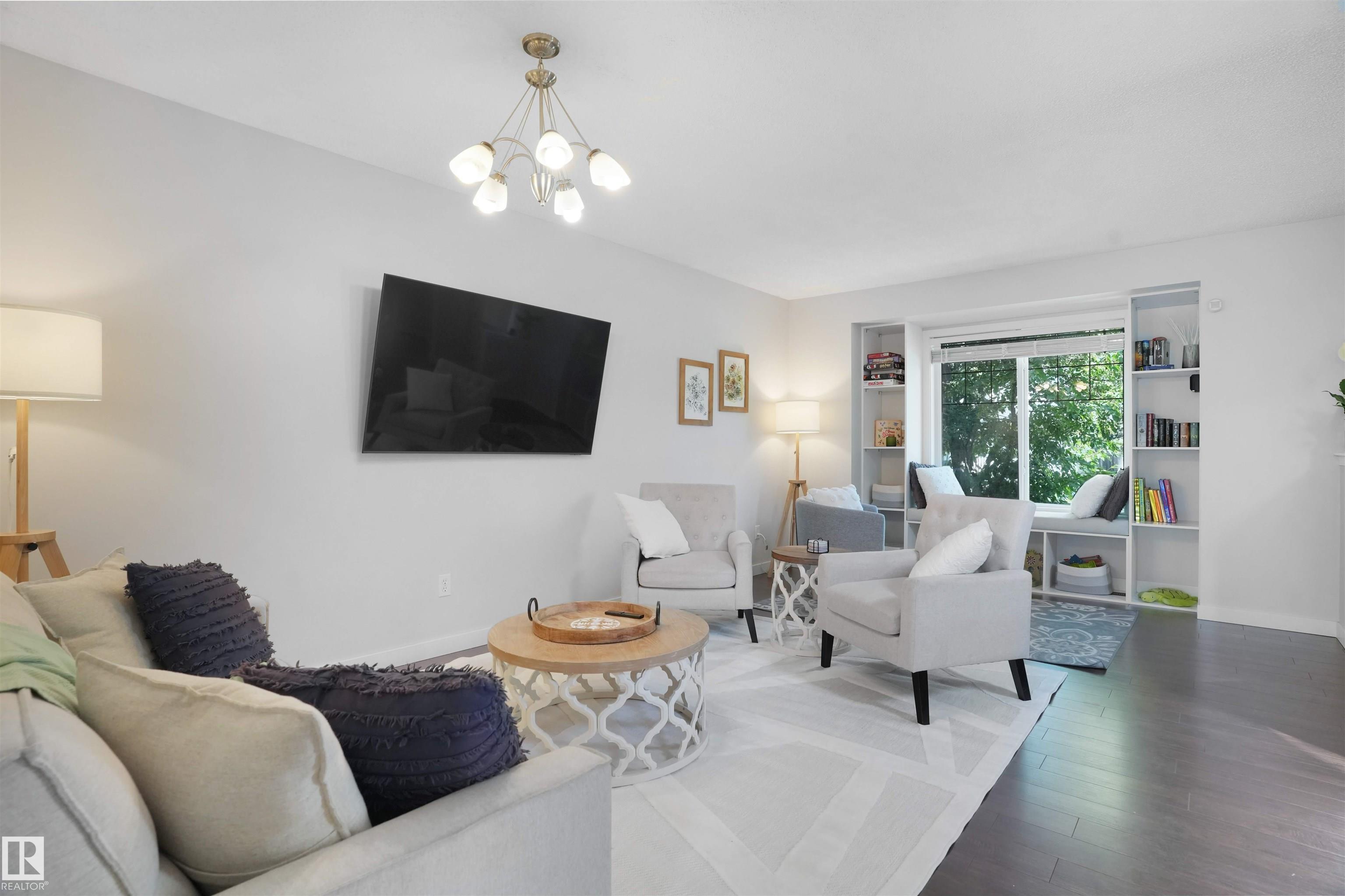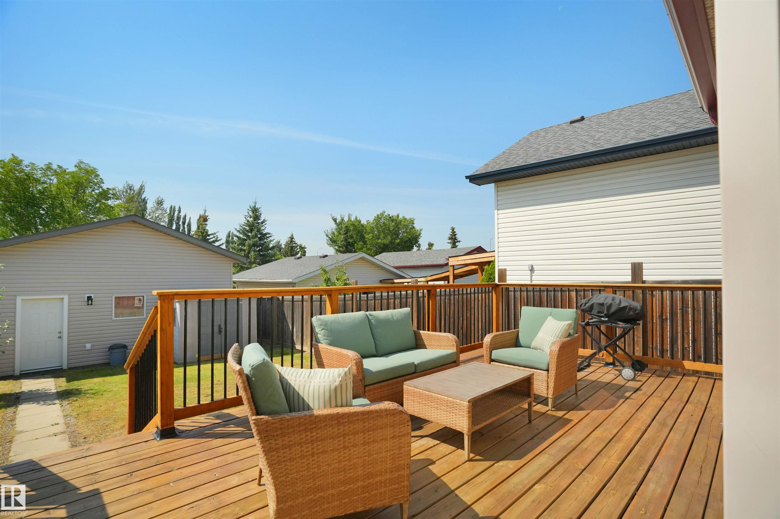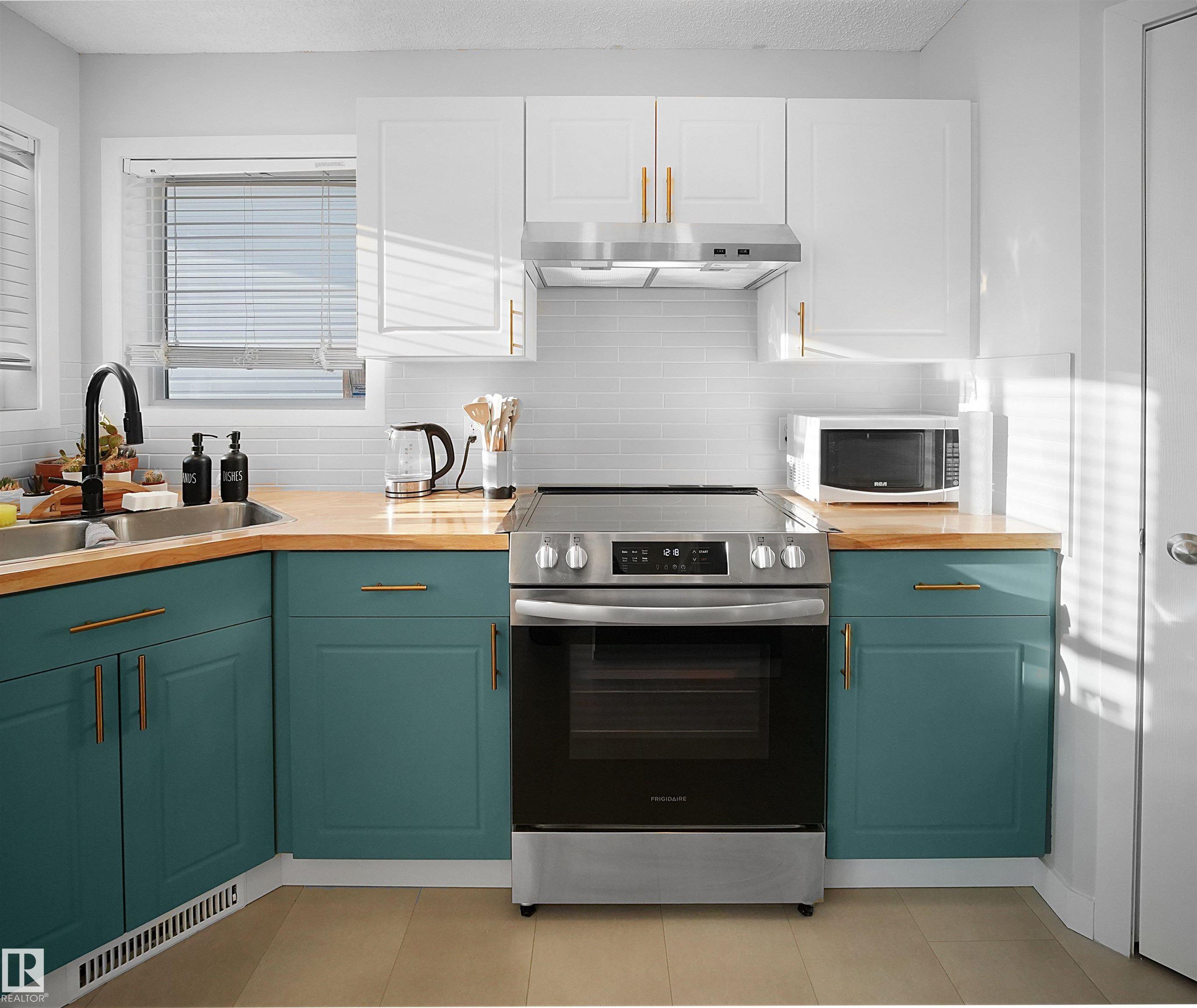 Welcome to Suder Greens?perfect for buyers seeking a quiet, established location with everyday convenience. Tucked into a cul-de-sac, this updated 2-storey offers 1,351 sq ft of move-in ready living.Freshly painted throughout (Fall 2023), including the kitchen, with new baseboards and a newer roof (2021), key updates are already done. The refreshed kitchen features a new stove, hood fan, and updated finishes, opening into a bright dining area with oversized windows that fill the space with natural light. New flooring in the kitchen, bathrooms, and front entry adds a clean, modern, low-maintenance feel.Upstairs offers 3 well-sized bedrooms and a full 4-piece bath.Enjoy a south-facing backyard backing onto a greenbelt?rare privacy in this price range?with a large patio for summer use. Oversized, extra-height garage.Walk to parks, golf, and schools. Quick access to West Edmonton Mall and Anthony Henday Drive.