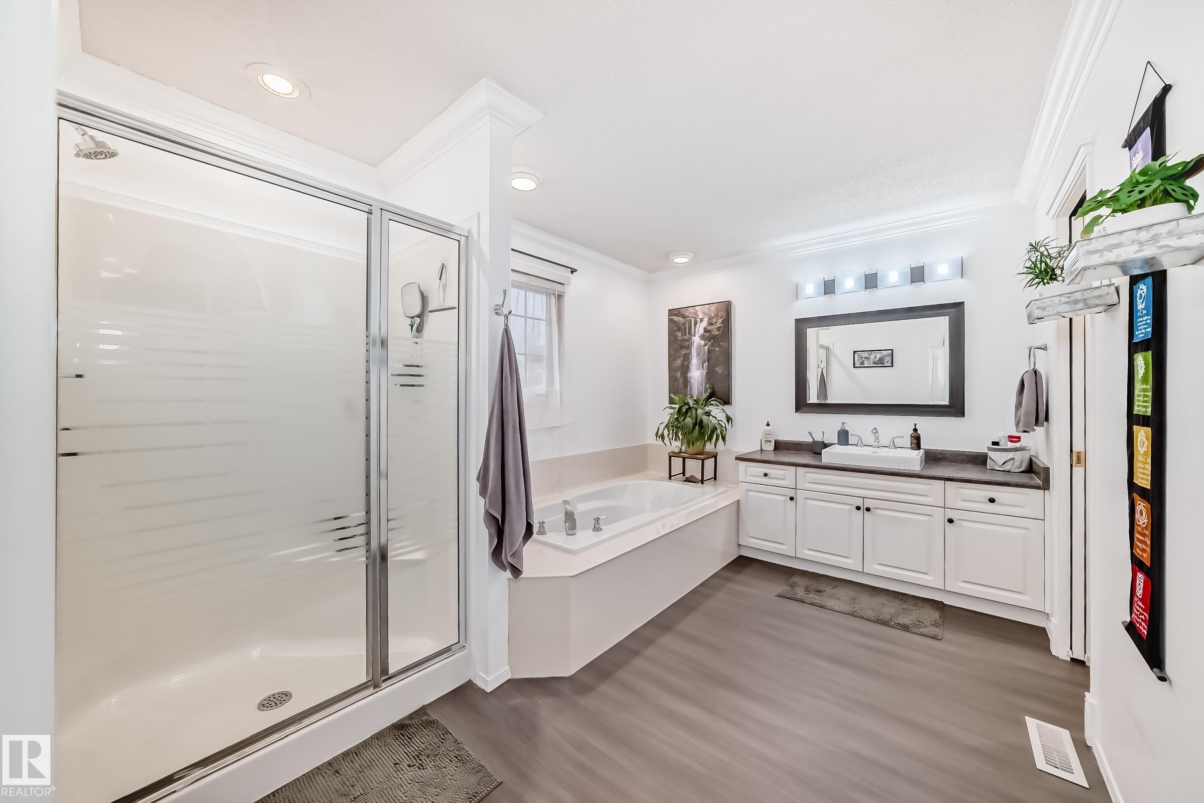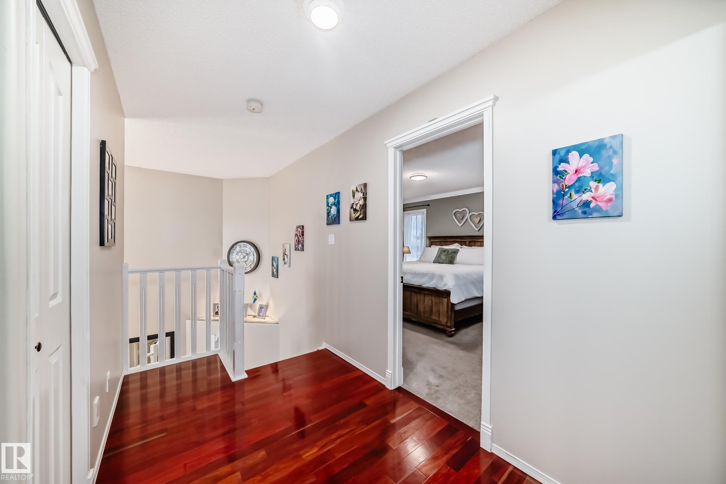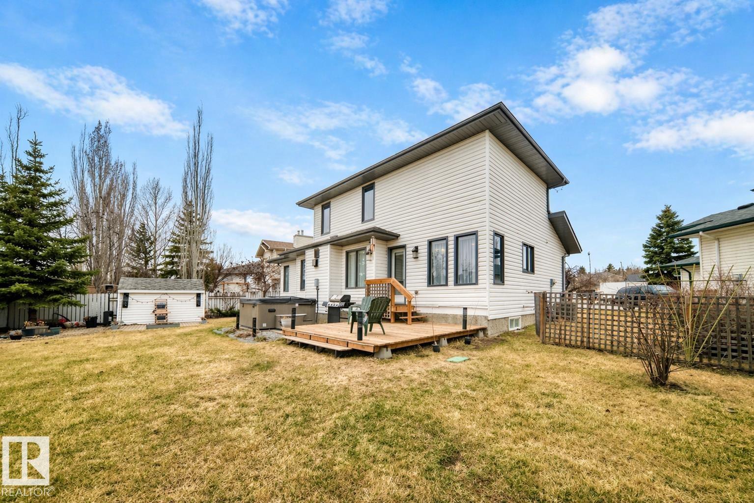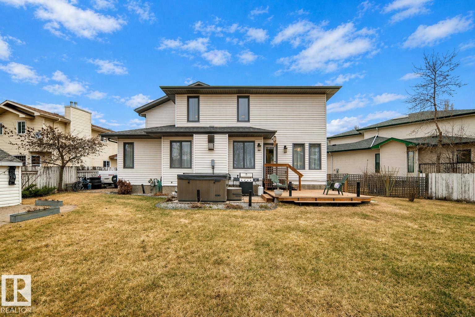 Beautiful in Grove Meadows! This exceptional family home features 3+2 bedroom, 2 full, 2 half bath with a versatile den (ideal as a 6th bedroom) nestled nicely on one of the largest lots in the neighbourhood, backing onto serene greenspace with a pond and scenic walking trails. The thoughtfully designed layout offers the perfect blend of open-concept living and functional privacy. The kitchen, dining, and living areas feature rich Brazilian Tigerwood hardwood, a cozy gas fireplace, and central A/C for year-round comfort. The spacious primary retreat includes a walk-in closet, 4-piece ensuite, and room for a sitting area. Step outside to your private, professionally landscaped oasis with cobblestone accents, fire pit, large deck, hot tub, and lush gardens?perfect for relaxing or entertaining. The fully finished basement offers a theatre area, two bedrooms, and ample storage. Complete with an oversized double attached heated garage?this home truly has it all!