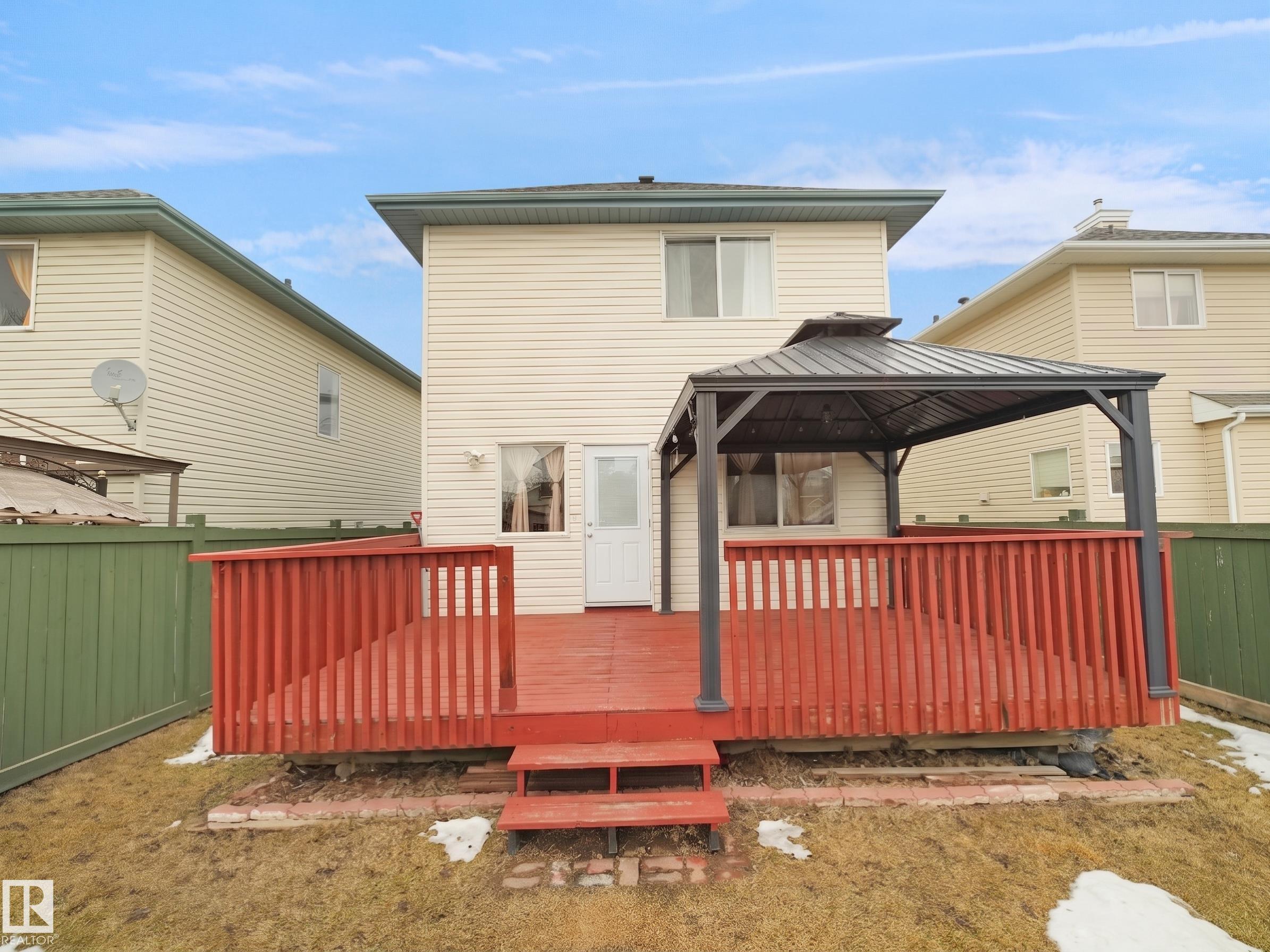 A refined 3+1 bedroom two-storey in Suder Greens, positioned in a quiet cul-de-sac just moments from Lewis Estates Golf Course and everyday amenities. The home offers a clean, functional layout with generously sized rooms and an abundance of natural light throughout. The main floor is anchored by a well-appointed kitchen featuring an island and spacious dining area, complemented by convenient main floor laundry. Upstairs, three bedrooms include a primary retreat with its own ensuite. The basement is developed, adding versatility with an additional living space. Outdoors, the south-facing backyard is fully fenced and landscaped, with a private deck designed for relaxed entertaining with gazebo and furniture included.